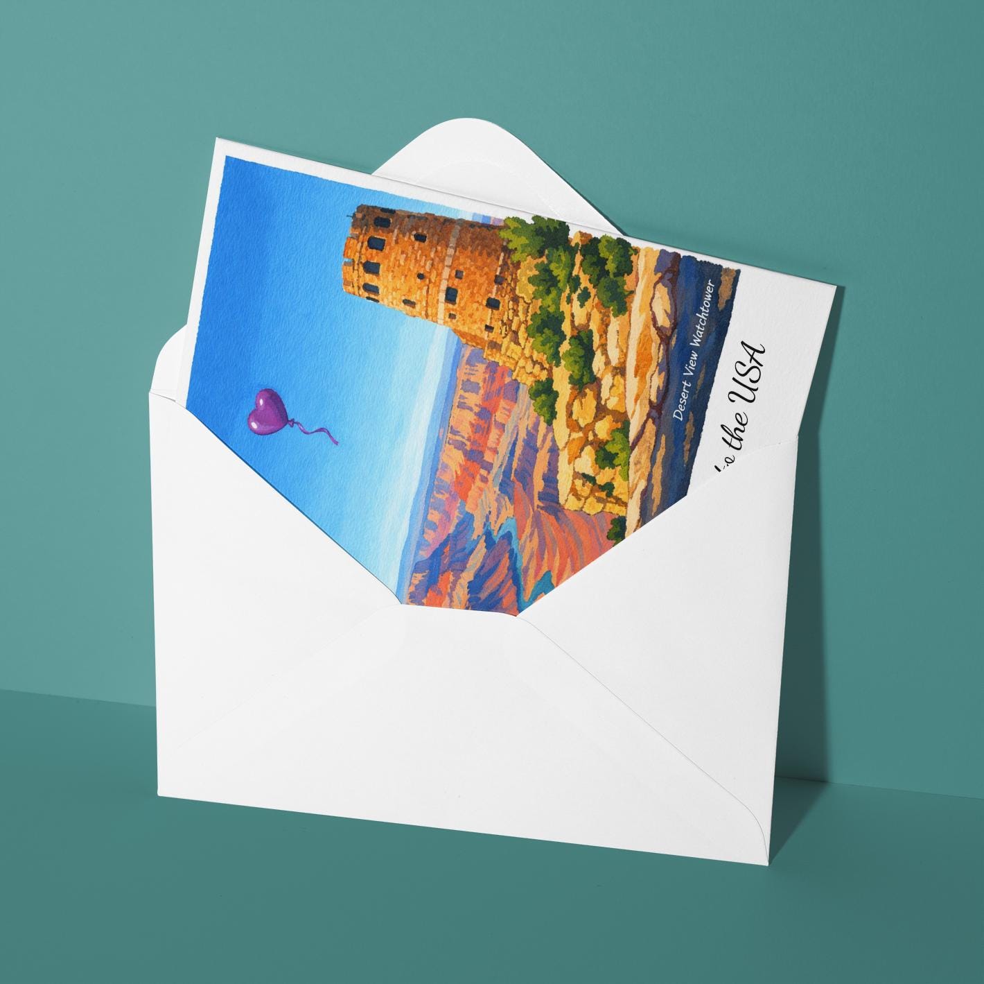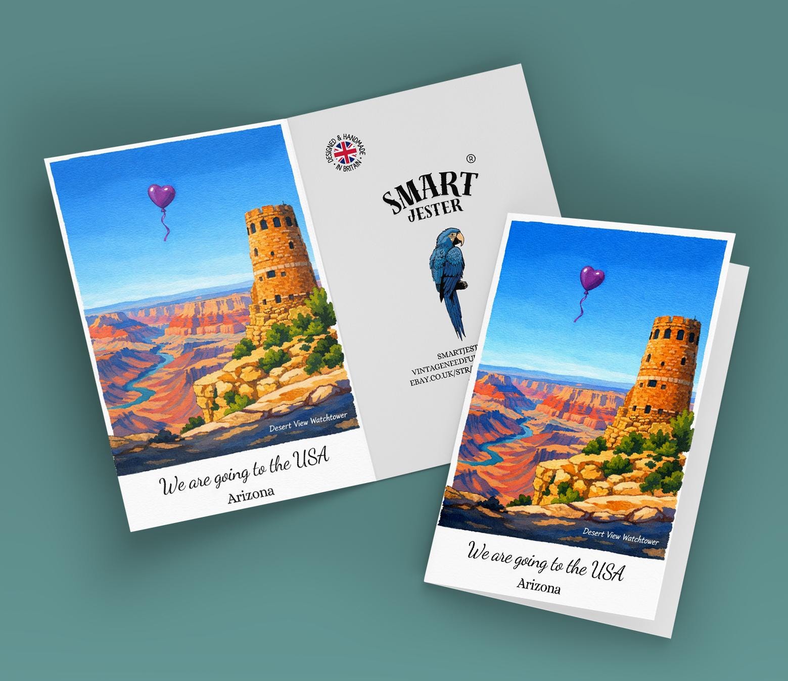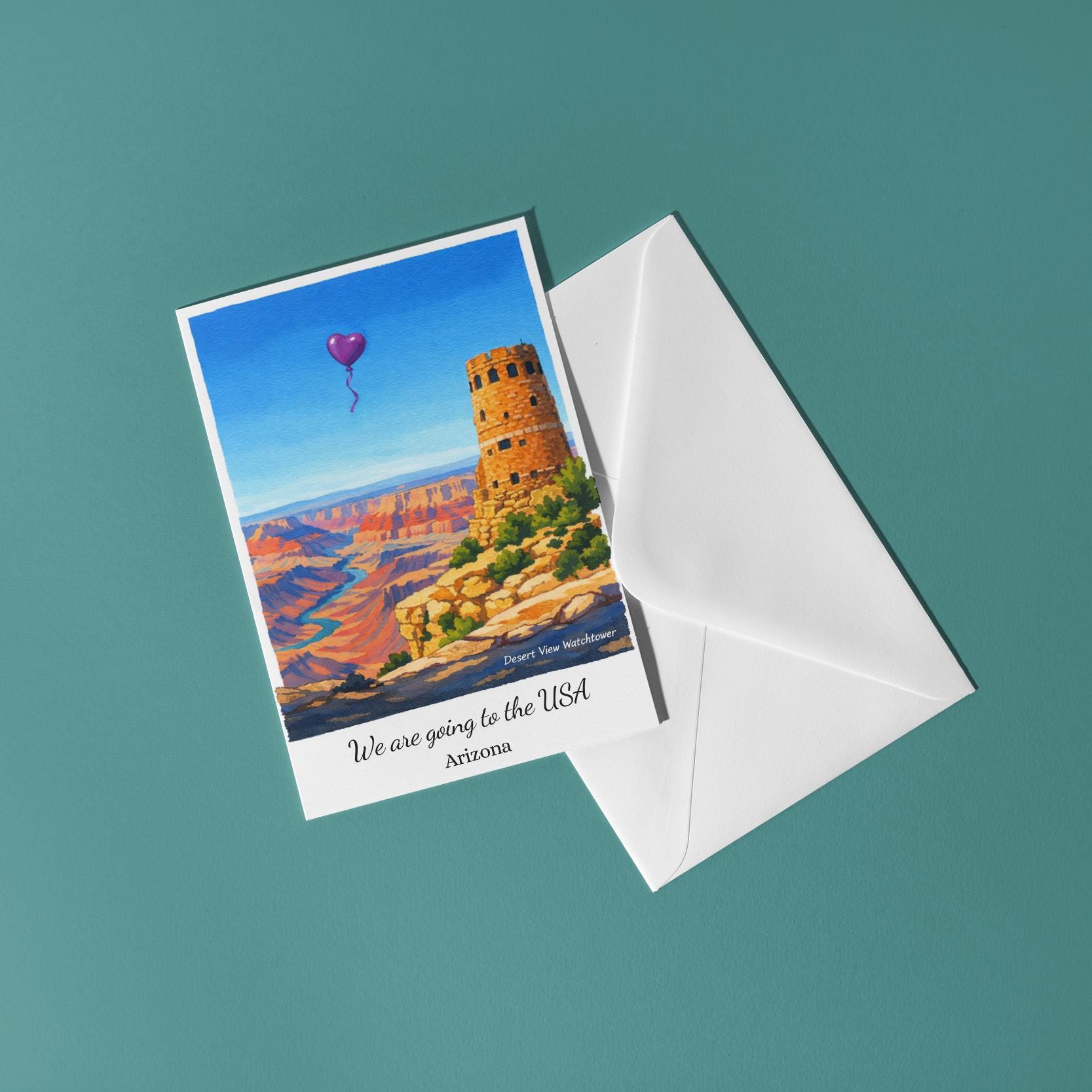 BLANK INTERIOR FOR A PERSONAL TOUCH: Our Cities Collection - We are going to the USA - Arizona - Desert View Watchtower card and other whimsical designs feature a blank interior, giving you ample space to write a personal message from the heart. Perfect for any occasion, each card comes with a matching white envelope, making it easy to send your unique sentiments to loved ones.