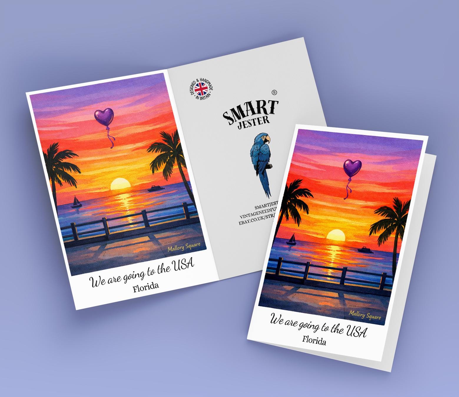 BLANK INTERIOR FOR A PERSONAL TOUCH: Our Cities Collection - We are going to the USA - Florida - Mallory Square card and other whimsical designs feature a blank interior, giving you ample space to write a personal message from the heart. Perfect for any occasion, each card comes with a matching white envelope, making it easy to send your unique sentiments to loved ones.