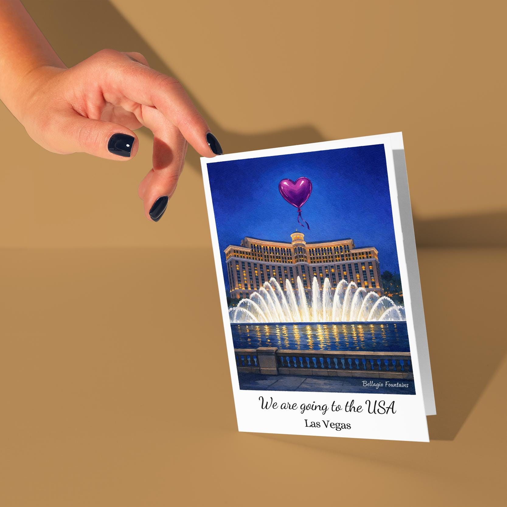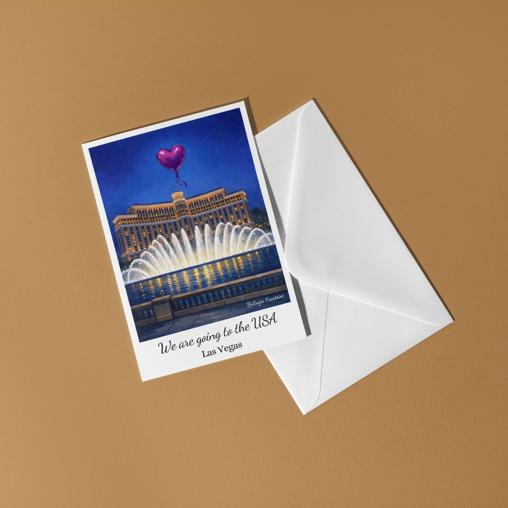 BLANK INTERIOR FOR A PERSONAL TOUCH: Our Cities Collection - We are going to the USA - Las Vegas - Bellagio Fountains card and other whimsical designs feature a blank interior, giving you ample space to write a personal message from the heart. Perfect for any occasion, each card comes with a matching white envelope, making it easy to send your unique sentiments to loved ones.