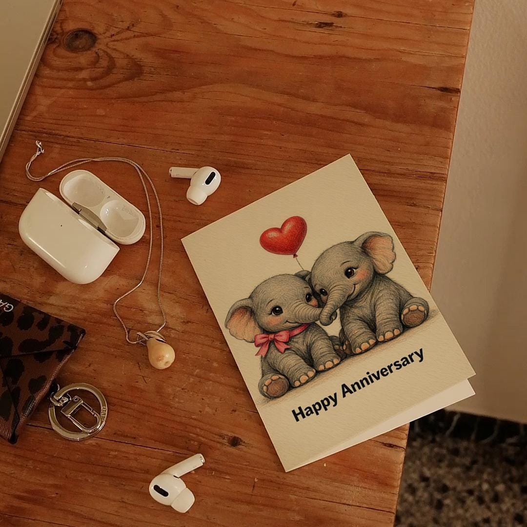 BLANK INTERIOR FOR A PERSONAL TOUCH: Our Animal Hugs Collection - Elephant Trunk Kiss - Happy Anniversary card and other whimsical designs feature a blank interior, giving you ample space to write a personal message from the heart. Perfect for any occasion, each card comes with a matching white envelope, making it easy to send your unique sentiments to loved ones.