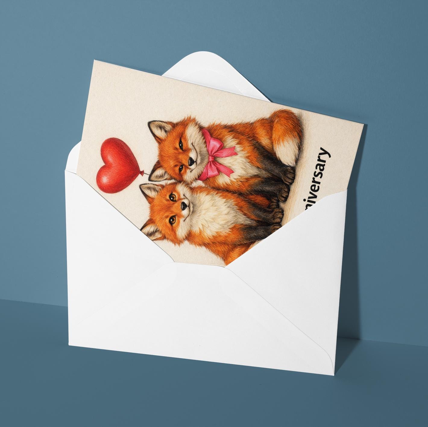 BLANK INTERIOR FOR A PERSONAL TOUCH: Our Animal Hugs Collection - Fox Heart Snuggle - Happy Anniversary card and other whimsical designs feature a blank interior, giving you ample space to write a personal message from the heart. Perfect for any occasion, each card comes with a matching white envelope, making it easy to send your unique sentiments to loved ones.