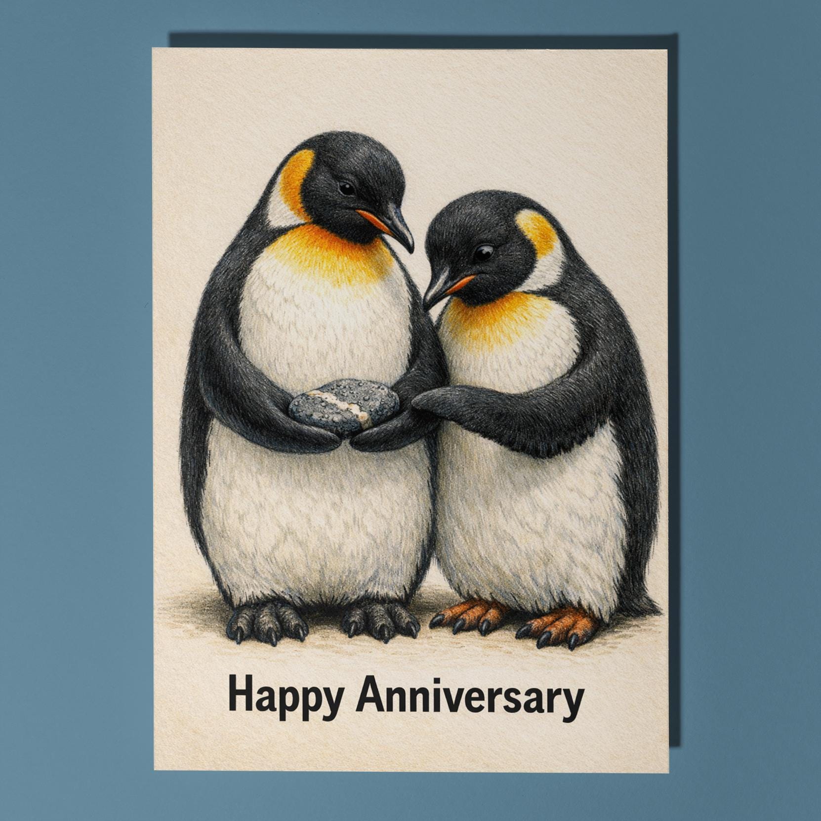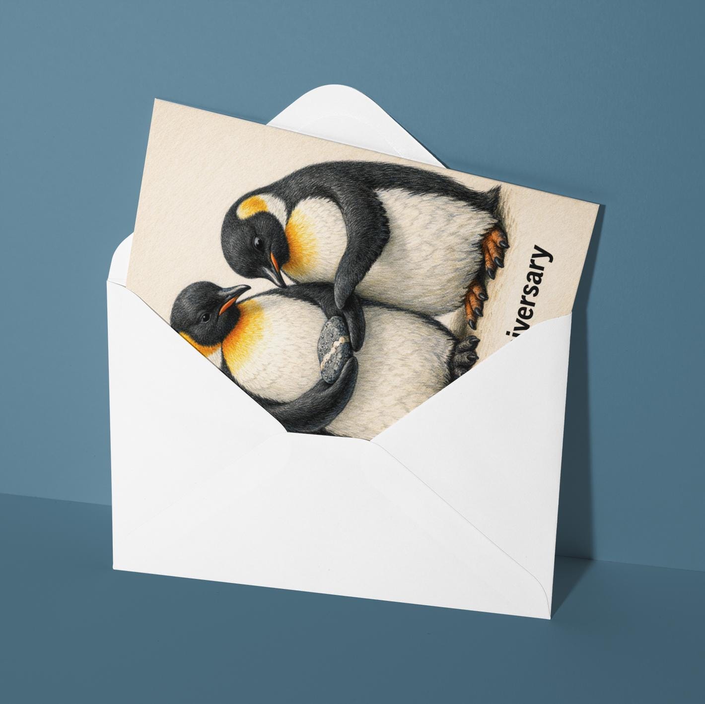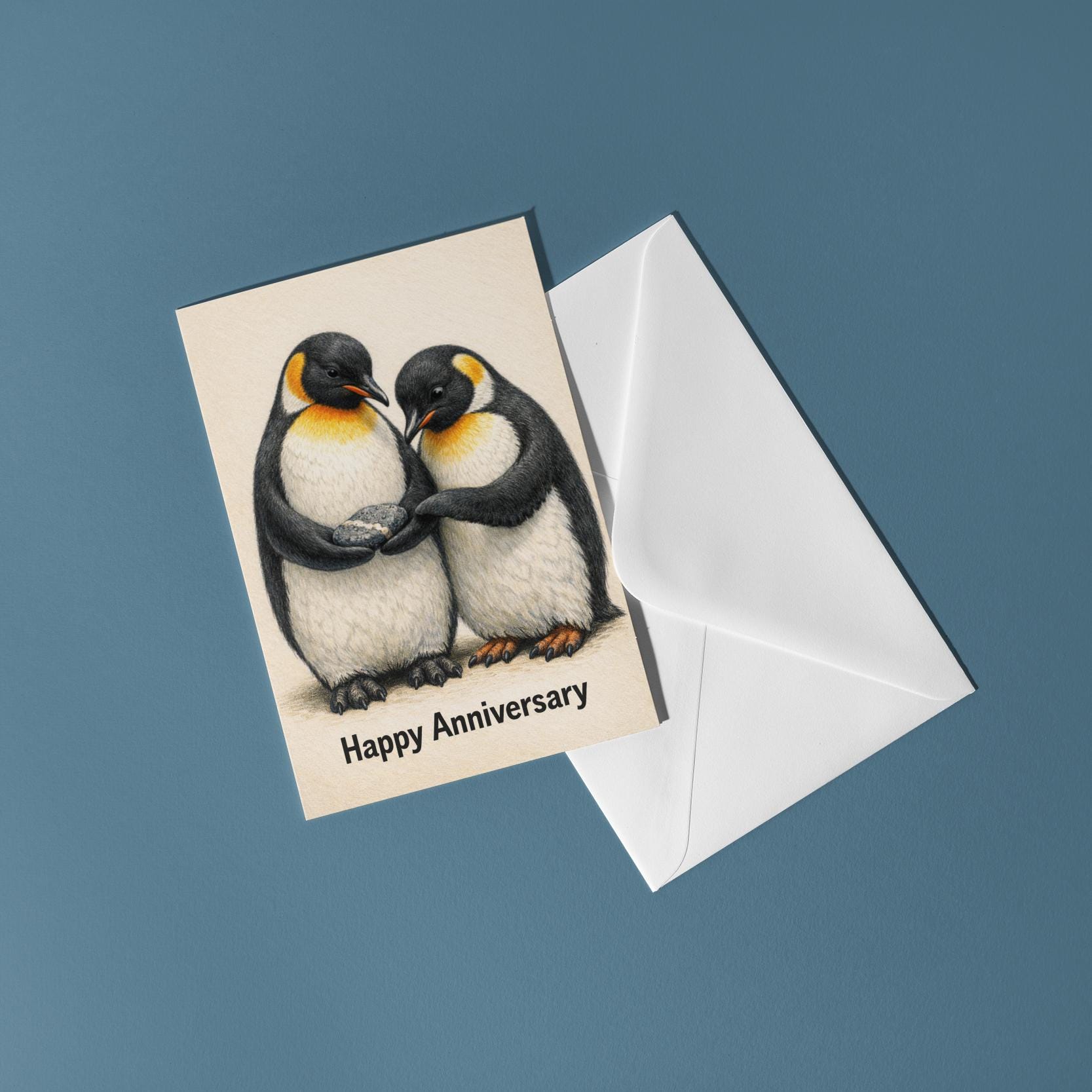 BLANK INTERIOR FOR A PERSONAL TOUCH: Our Animal Hugs Collection - Penguin Shared Stone - Happy Anniversary card and other whimsical designs feature a blank interior, giving you ample space to write a personal message from the heart. Perfect for any occasion, each card comes with a matching white envelope, making it easy to send your unique sentiments to loved ones.
