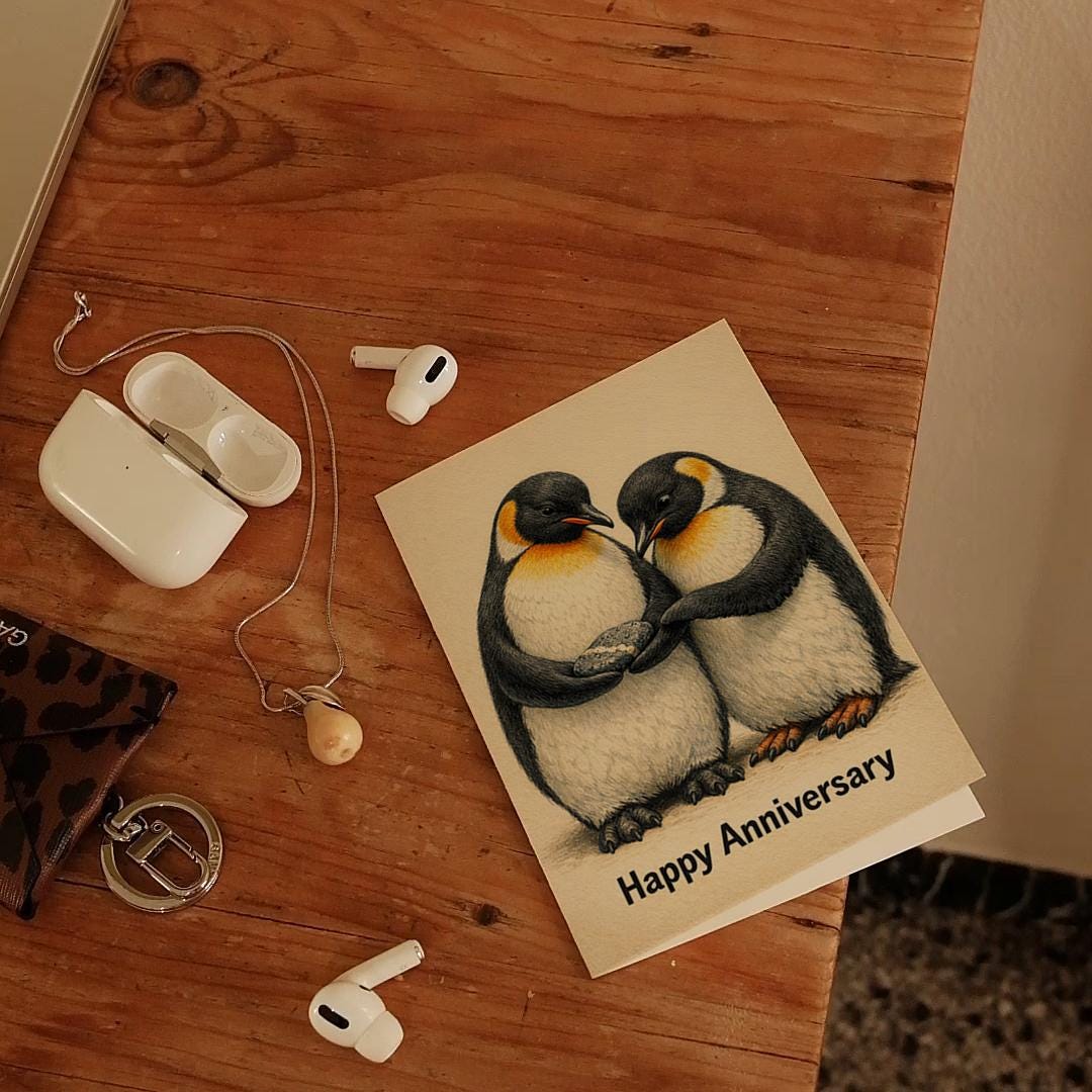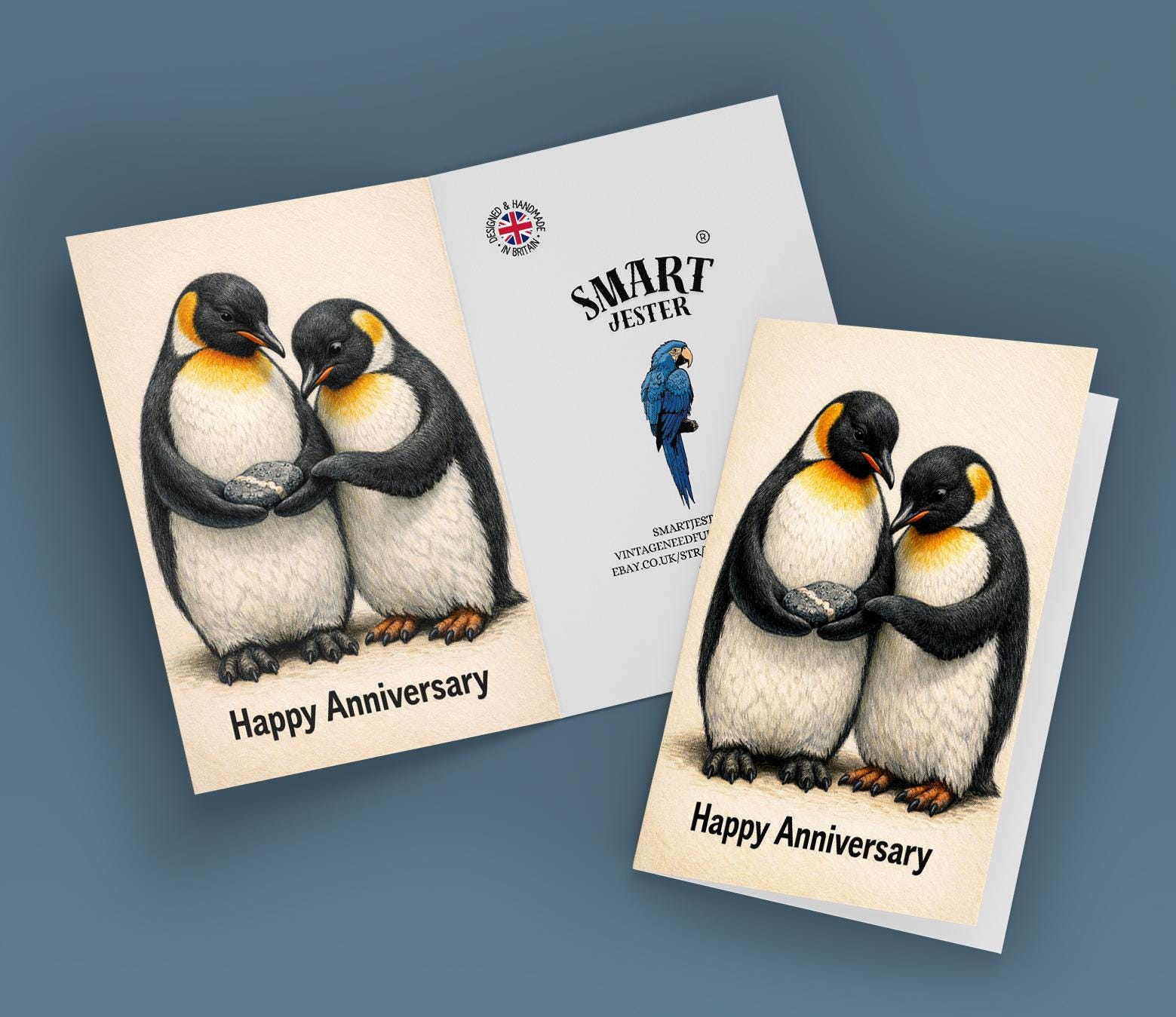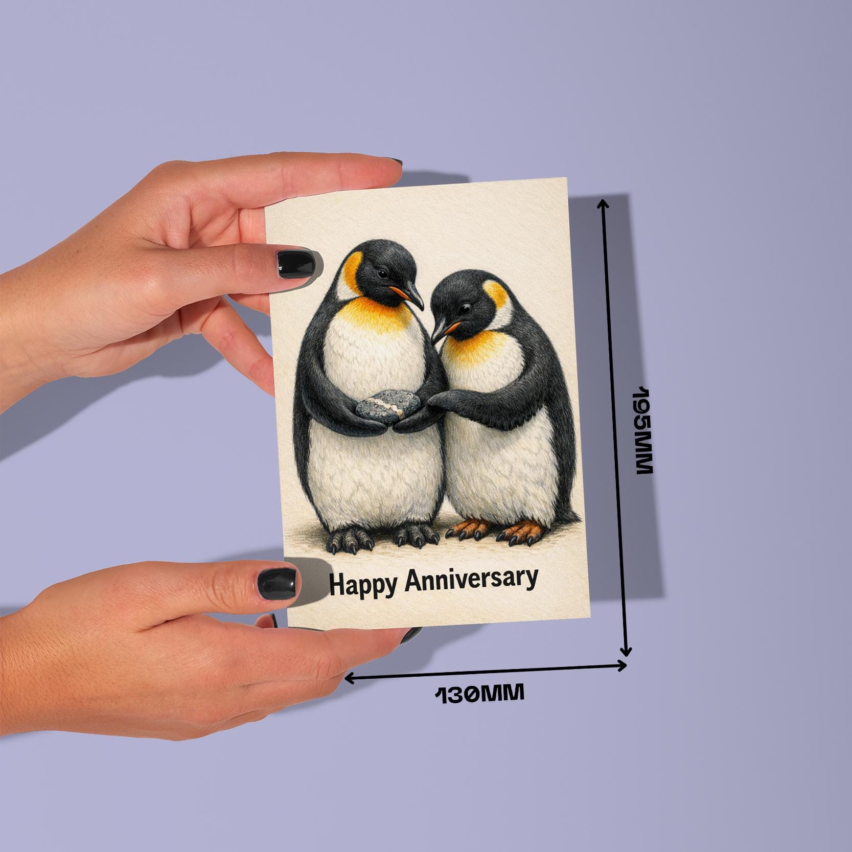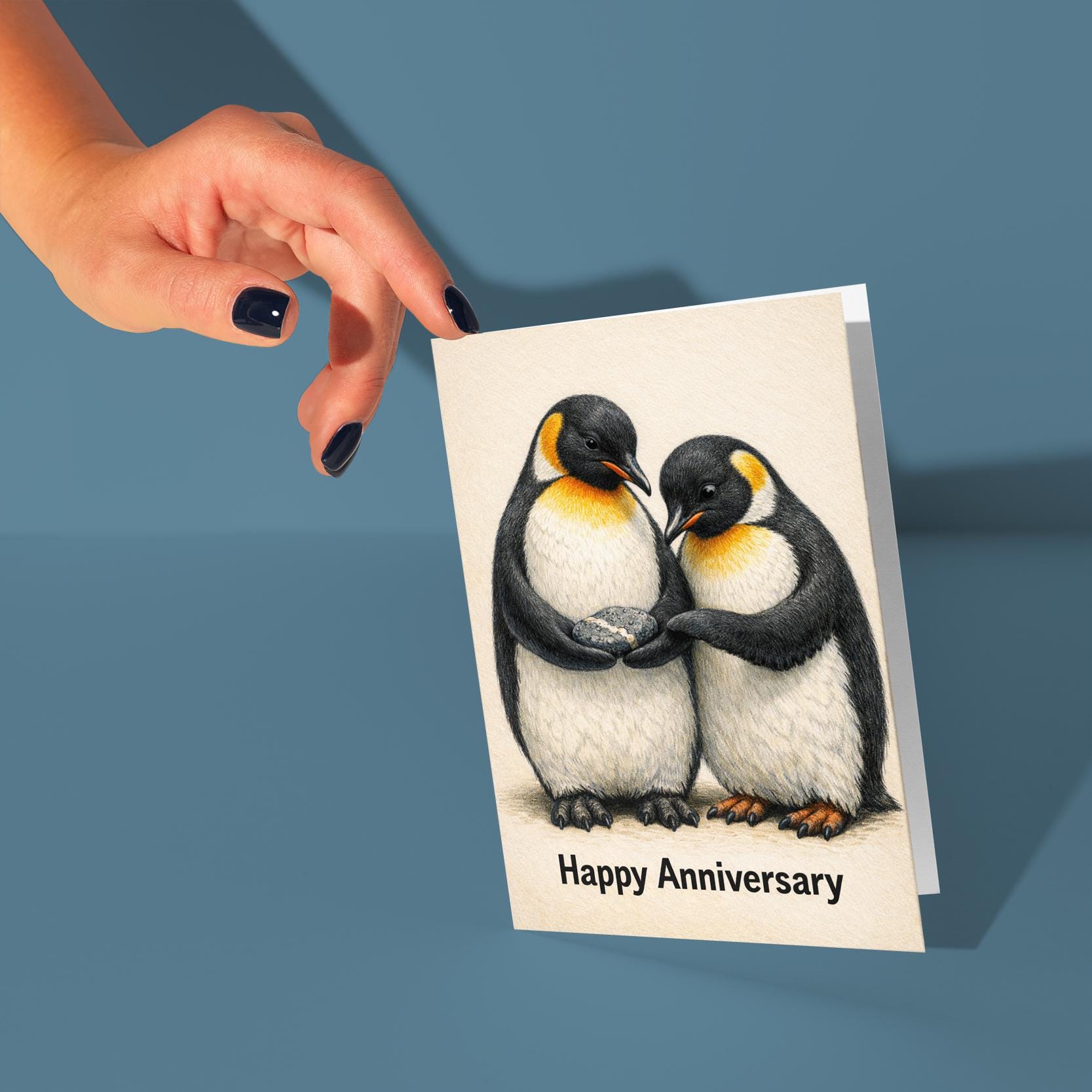 BLANK INTERIOR FOR A PERSONAL TOUCH: Our Animal Hugs Collection - Penguin Shared Stone - Happy Anniversary card and other whimsical designs feature a blank interior, giving you ample space to write a personal message from the heart. Perfect for any occasion, each card comes with a matching white envelope, making it easy to send your unique sentiments to loved ones.