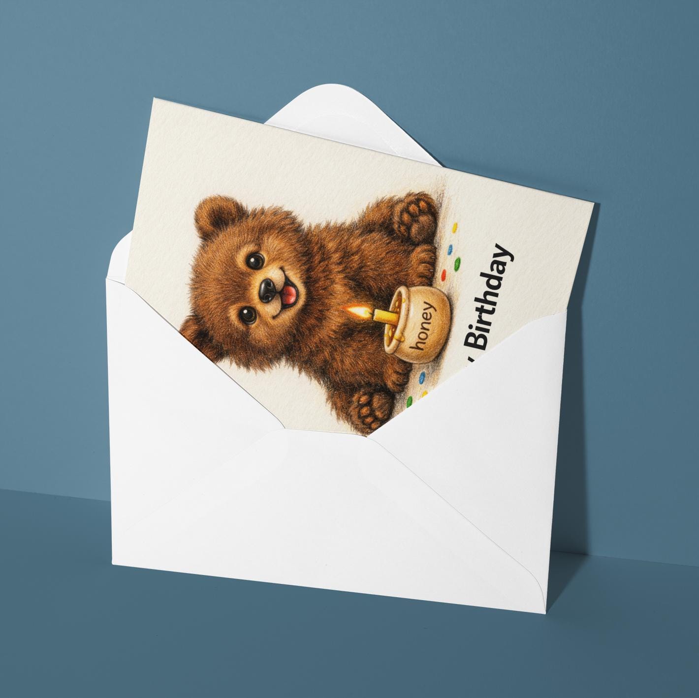 BLANK INTERIOR FOR A PERSONAL TOUCH: Our Animal Hugs Collection - Honey Bear Cake Emergency – Happy Birthday! card - and other whimsical designs feature a blank interior, giving you ample space to write a personal message from the heart. Perfect for any occasion, each card comes with a matching white envelope, making it easy to send your unique sentiments to loved ones.