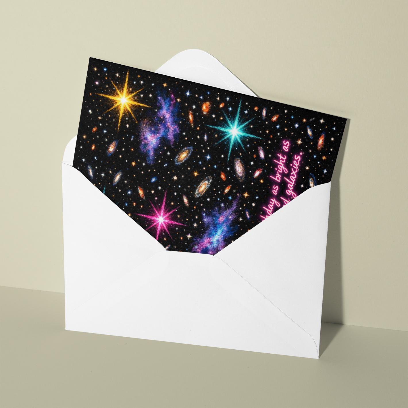 BLANK INTERIOR FOR A PERSONAL TOUCH: Our Galactic Journey Collection - A birthday as bright as a thousand galaxies. Birthday card - and other whimsical designs feature a blank interior, giving you ample space to write a personal message from the heart. Perfect for any occasion, each card comes with a matching white envelope, making it easy to send your unique sentiments to loved ones.
