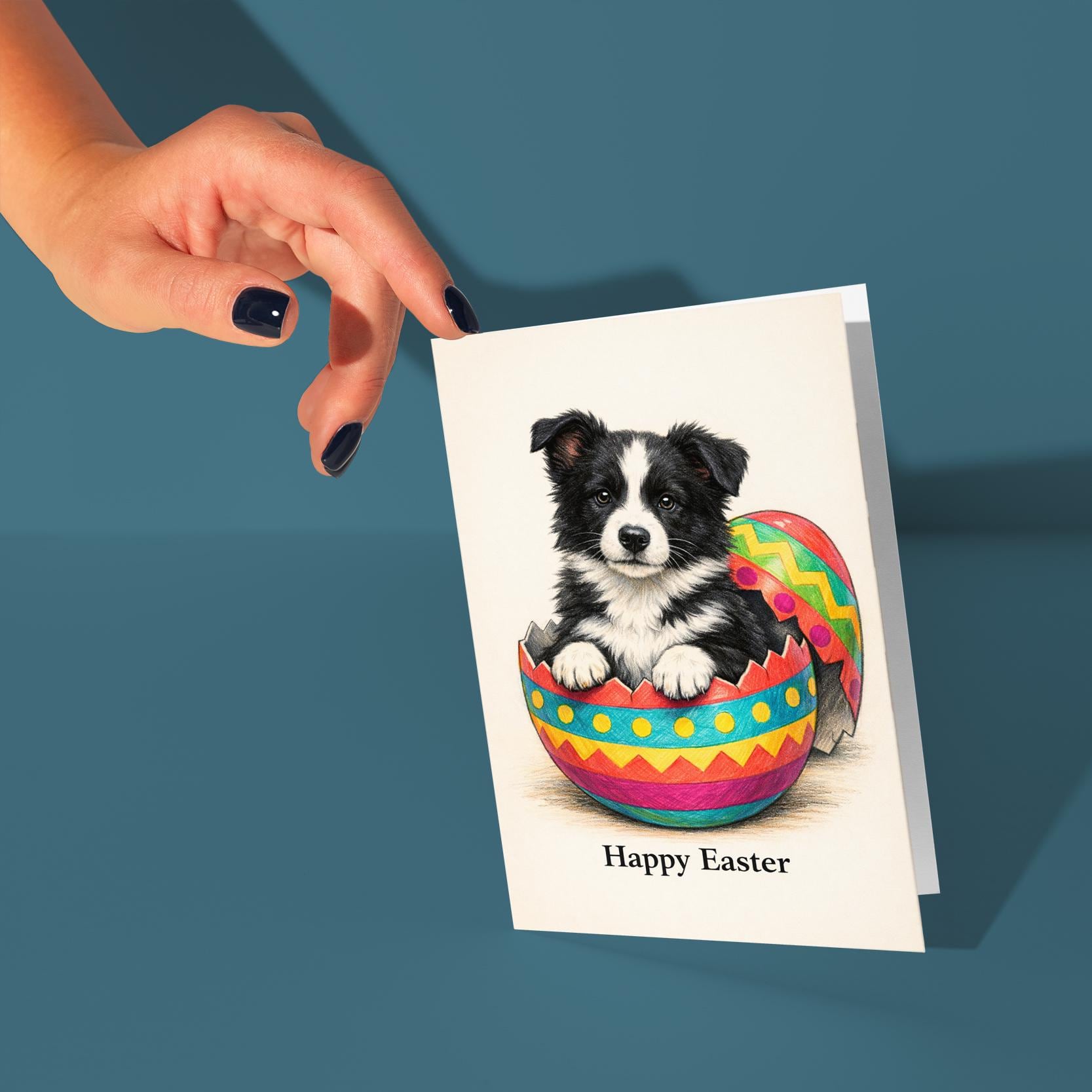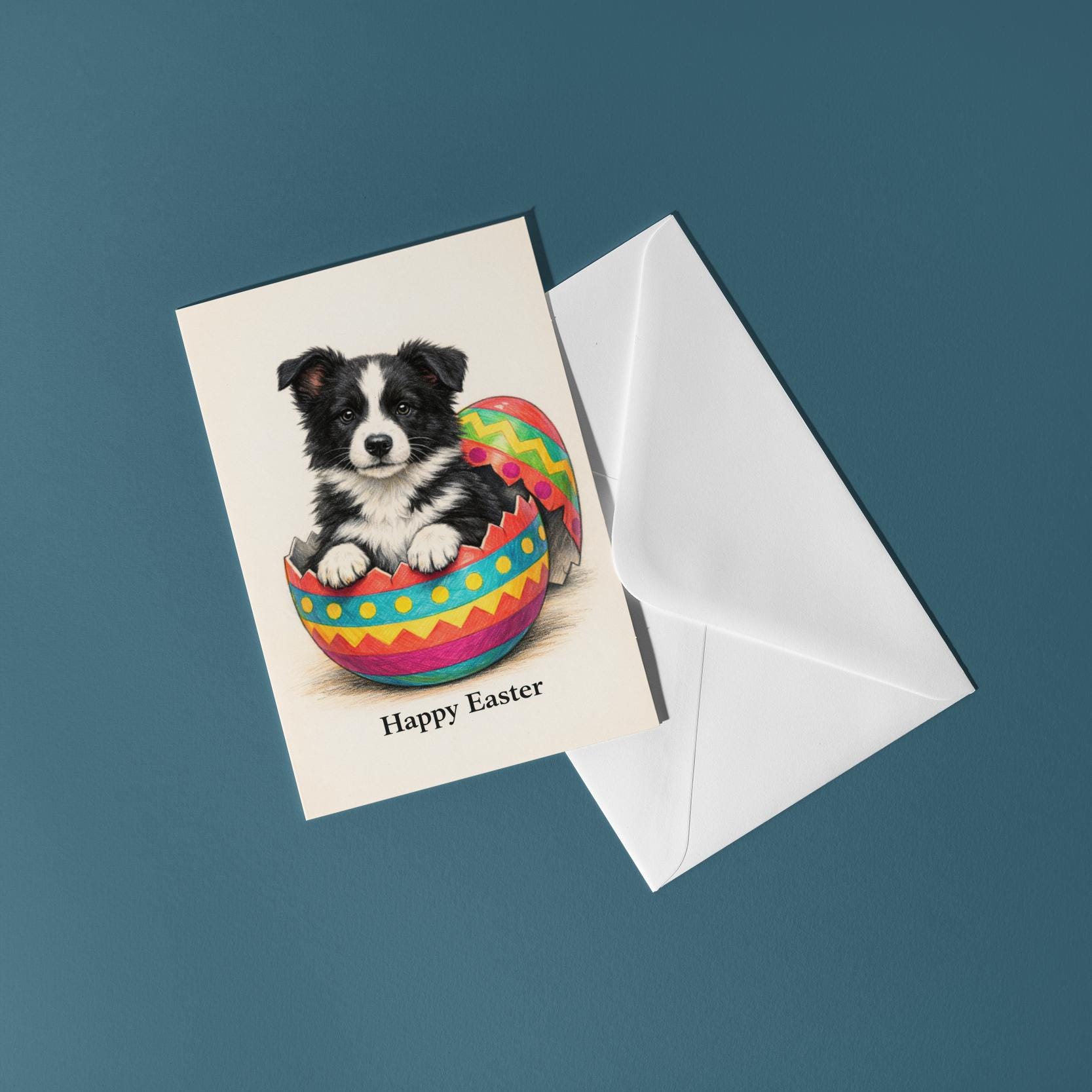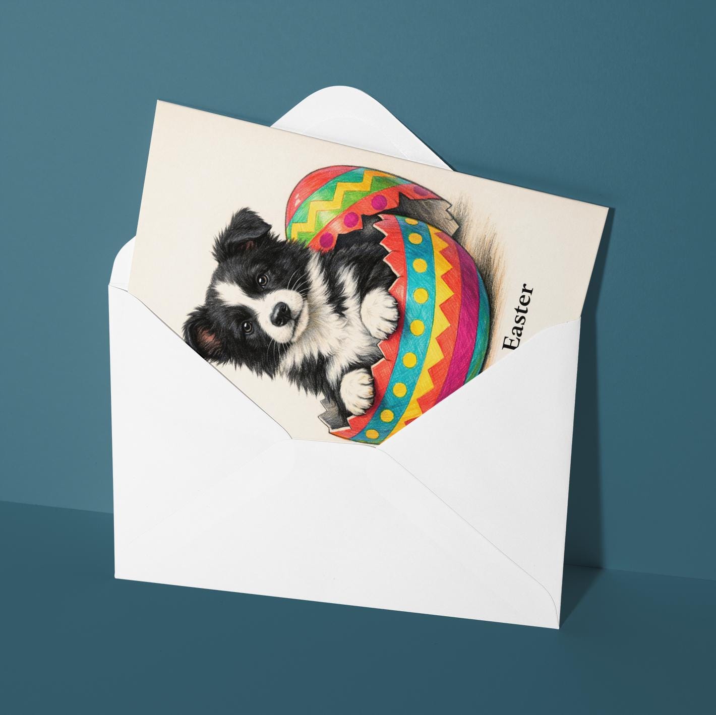 BLANK INTERIOR FOR A PERSONAL TOUCH: Part of the - Dog Breeds Collection - Border Collie - Cracking open a day full of joy! Happy Easter card and other whimsical designs feature a blank interior, giving you ample space to write a personal message from the heart. Perfect for any occasion, each card comes with a matching white envelope, making it easy to send your unique sentiments to loved ones.