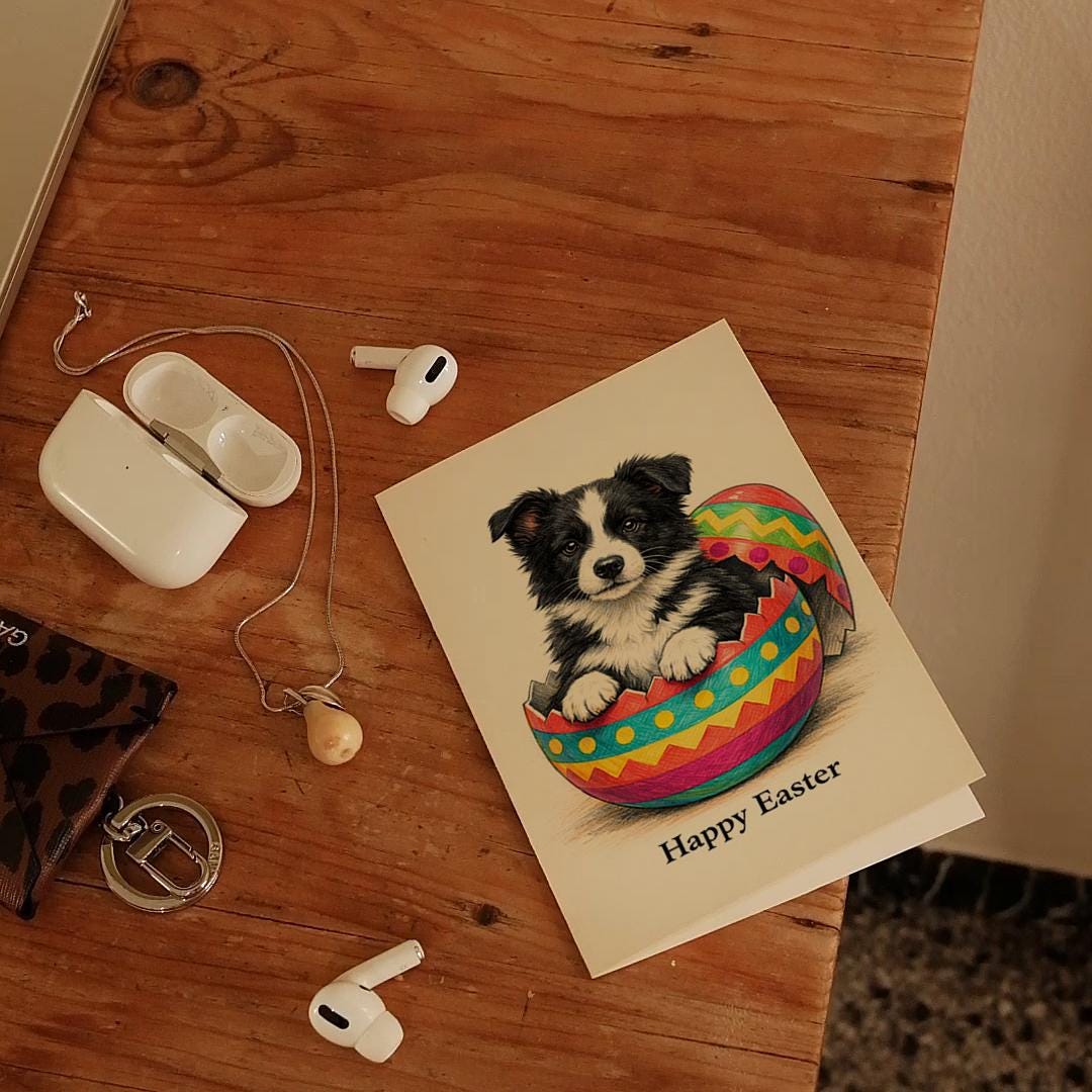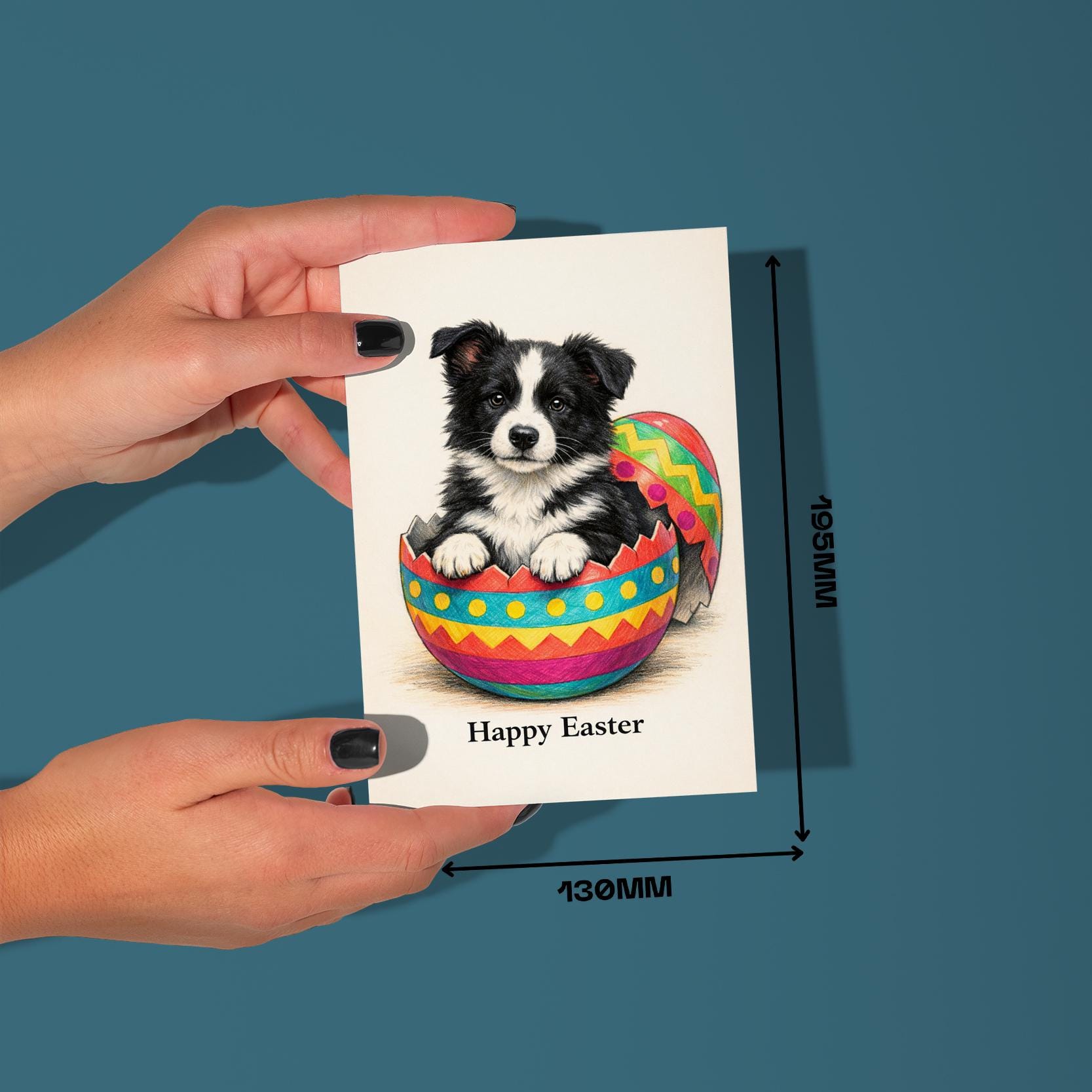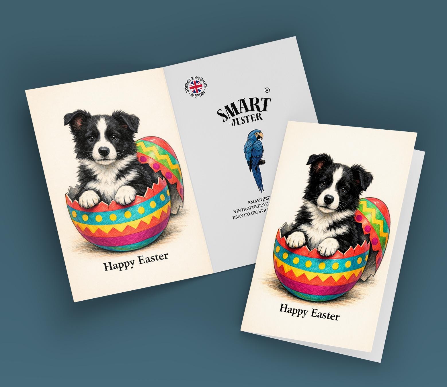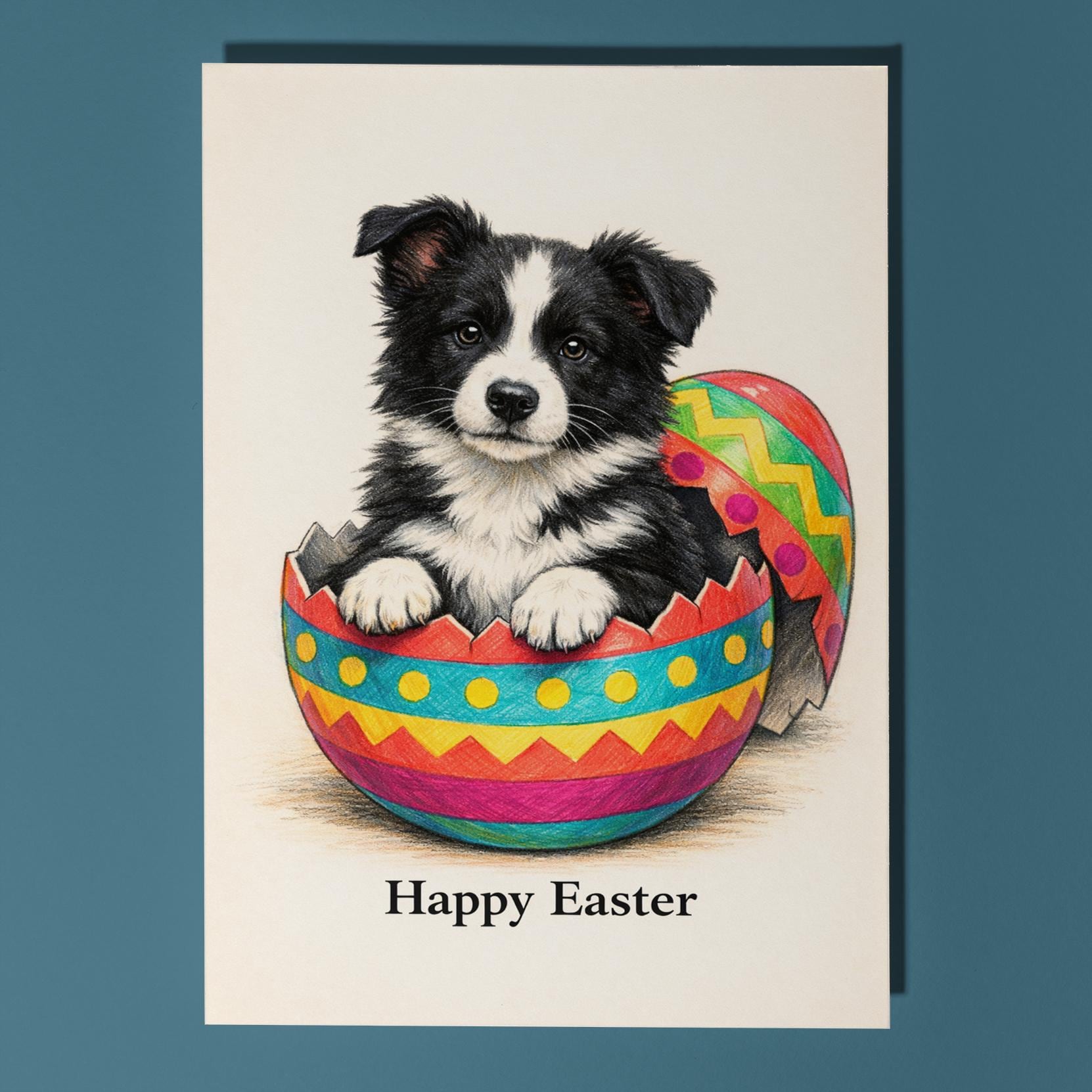 BLANK INTERIOR FOR A PERSONAL TOUCH: Part of the - Dog Breeds Collection - Border Collie - Cracking open a day full of joy! Happy Easter card and other whimsical designs feature a blank interior, giving you ample space to write a personal message from the heart. Perfect for any occasion, each card comes with a matching white envelope, making it easy to send your unique sentiments to loved ones.
