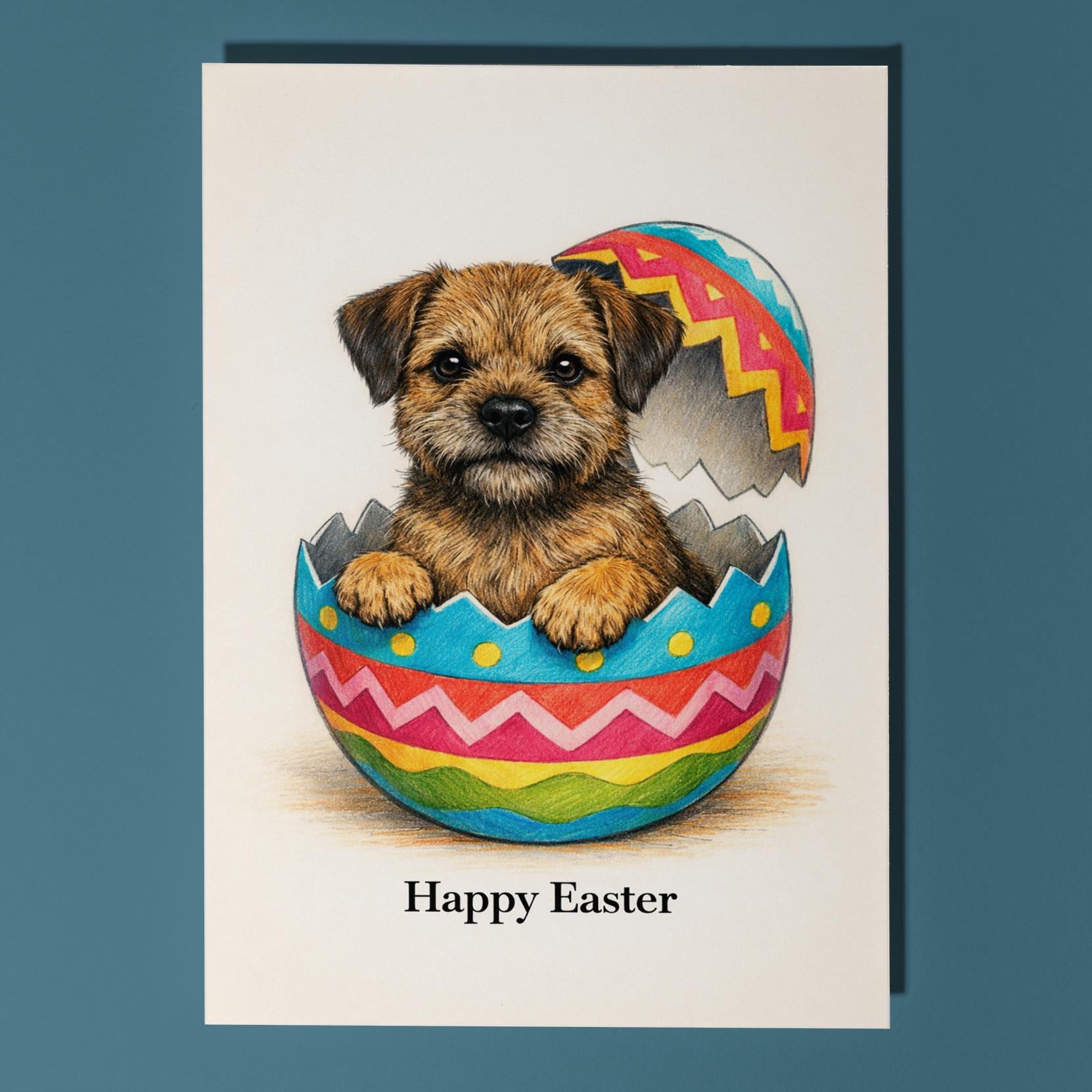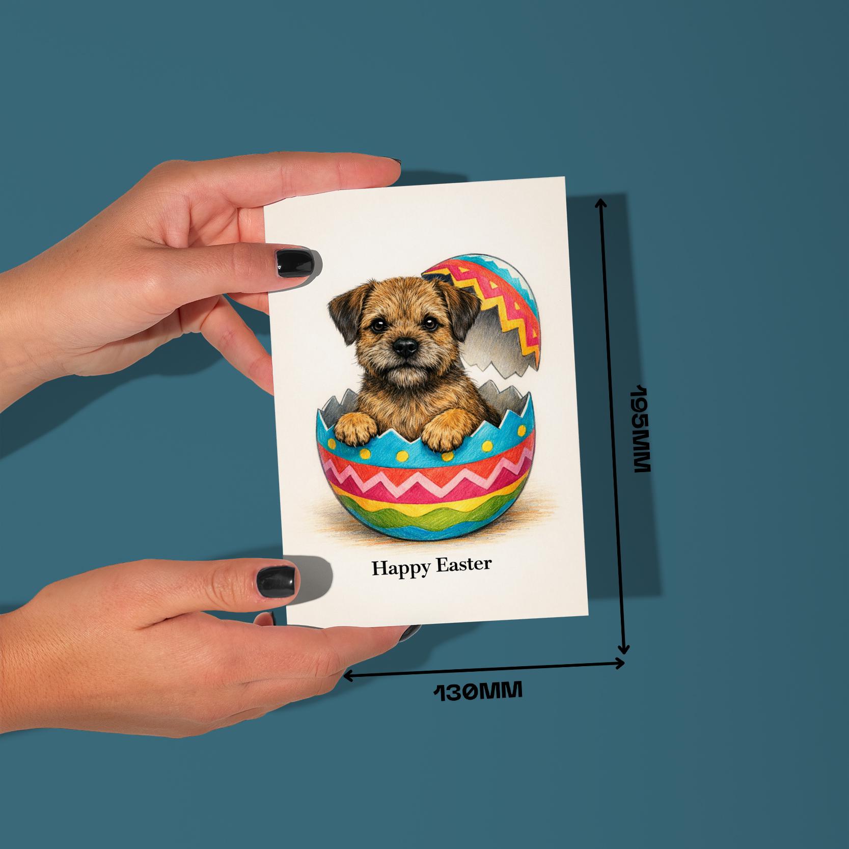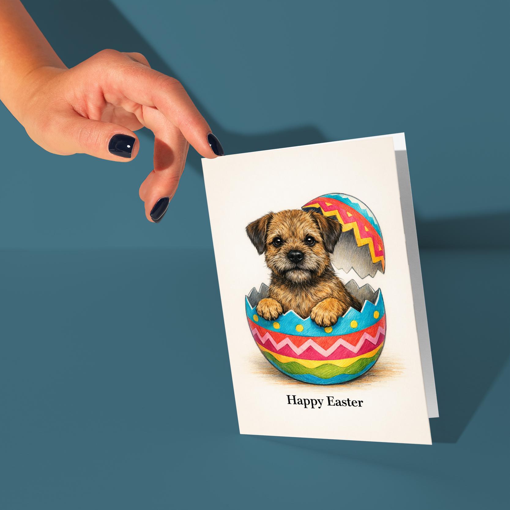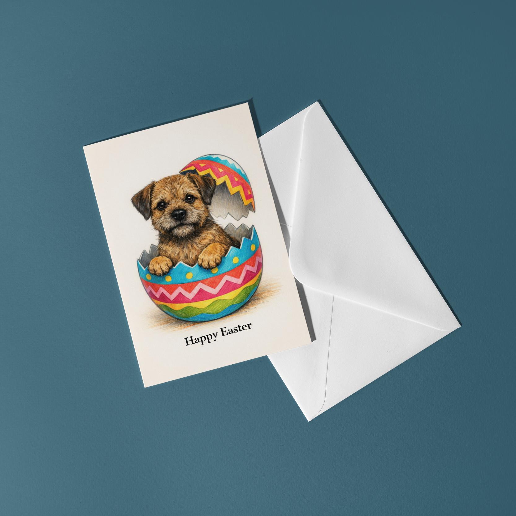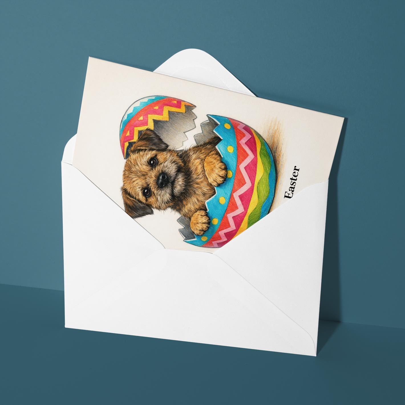 BLANK INTERIOR FOR A PERSONAL TOUCH: Part of the - Dog Breeds Collection - Border Terrier dog - Cracking open a day full of joy! Happy Easter card and other whimsical designs feature a blank interior, giving you ample space to write a personal message from the heart. Perfect for any occasion, each card comes with a matching white envelope, making it easy to send your unique sentiments to loved ones.