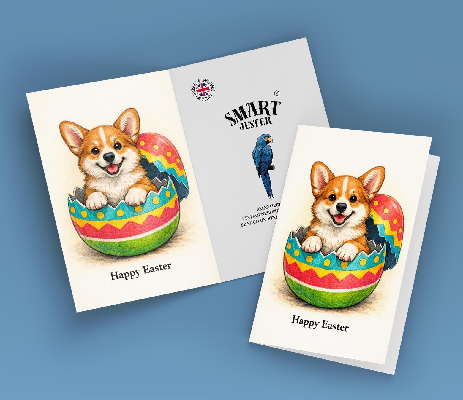 BLANK INTERIOR FOR A PERSONAL TOUCH: Part of the - Dog Breeds Collection - Corgi dog - Cracking open a day full of joy! Happy Easter card and other whimsical designs feature a blank interior, giving you ample space to write a personal message from the heart. Perfect for any occasion, each card comes with a matching white envelope, making it easy to send your unique sentiments to loved ones.