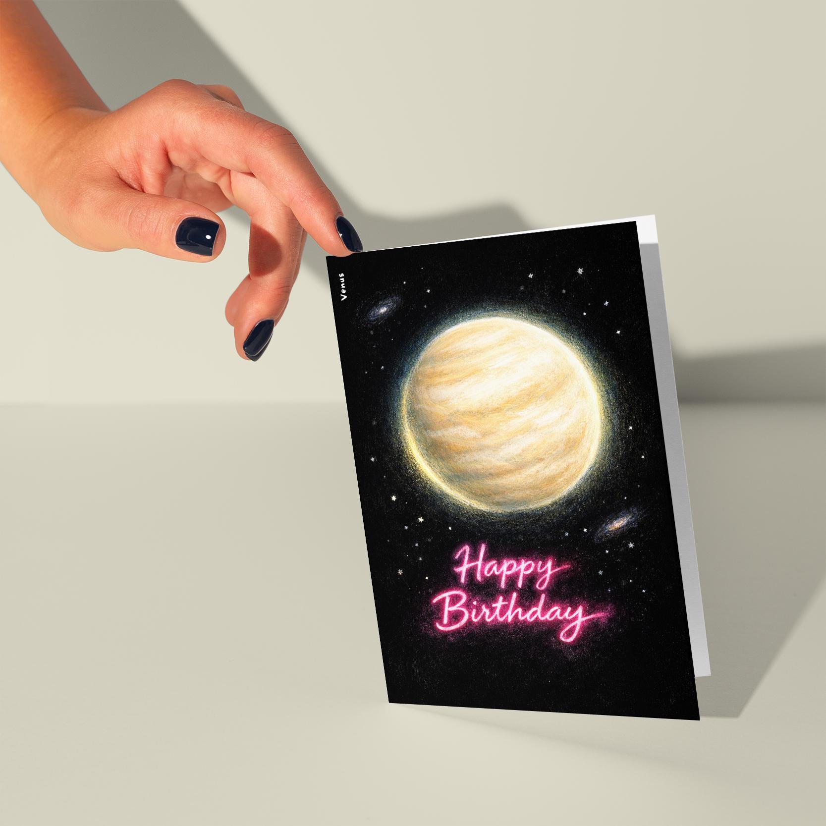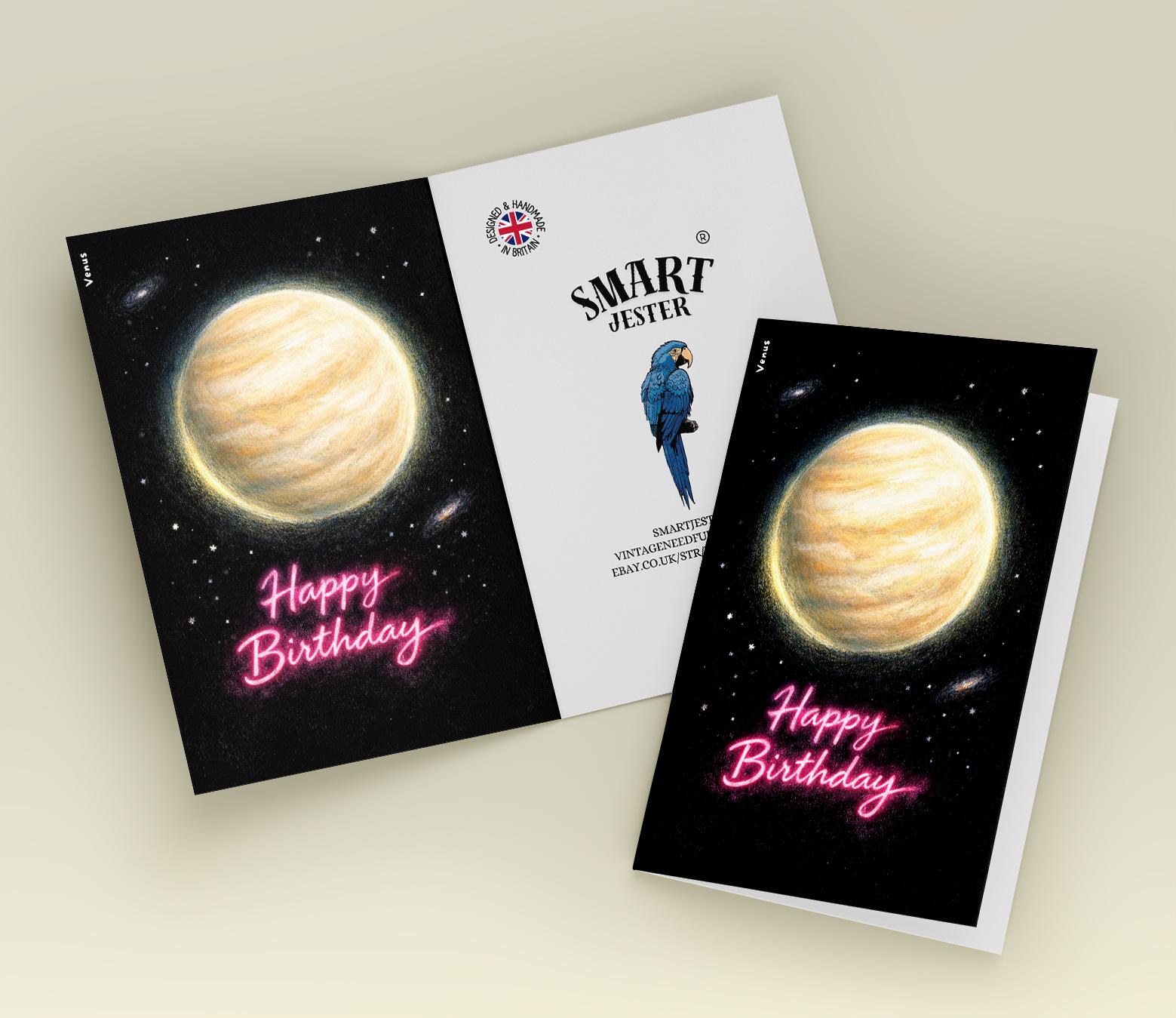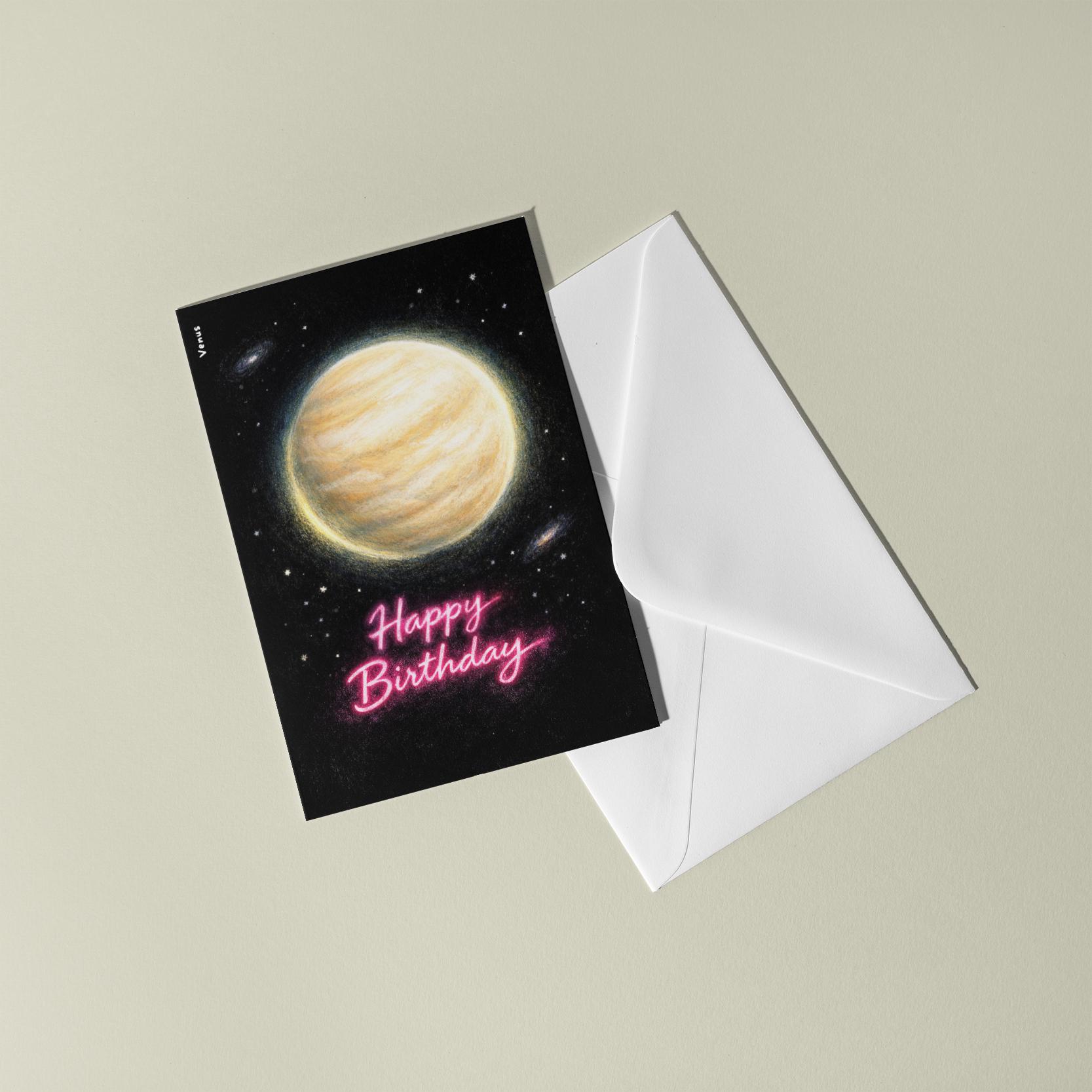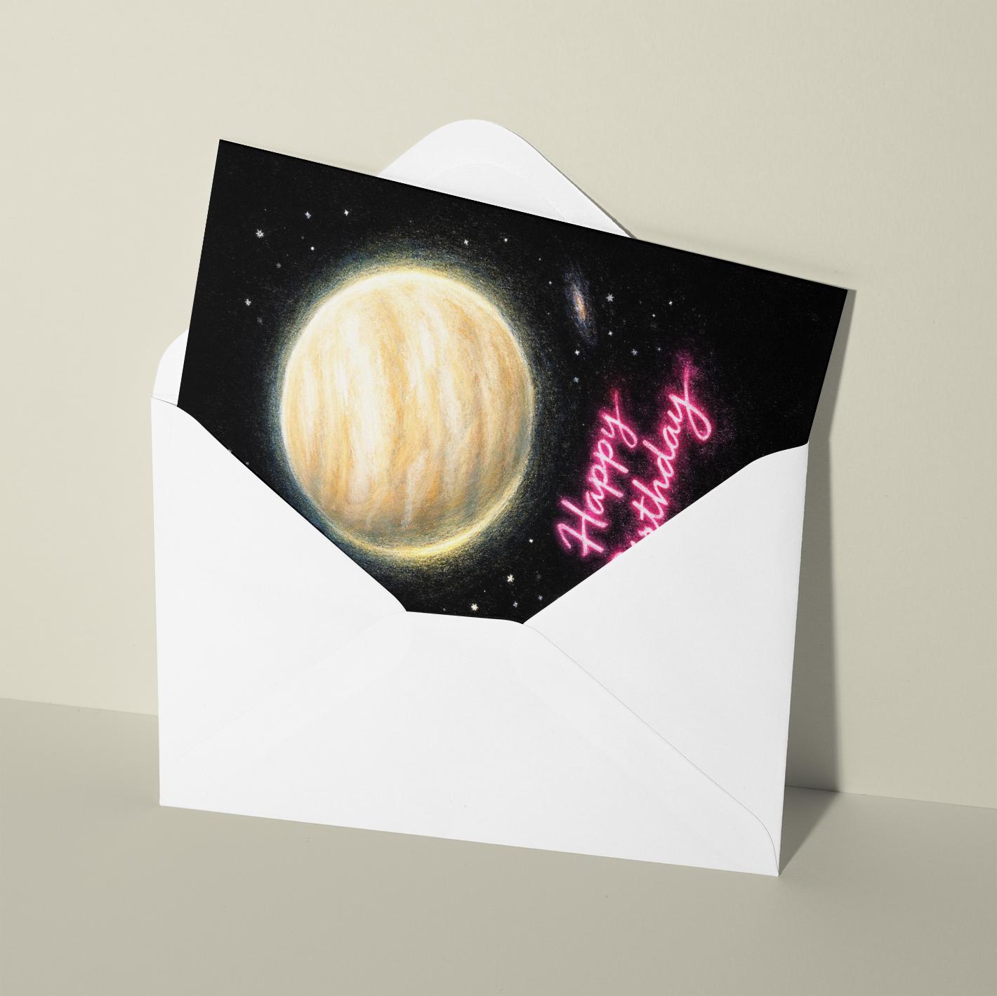 BLANK INTERIOR FOR A PERSONAL TOUCH: Our Galactic Journey Collection - Planet Venus Happy Birthday card - and other whimsical designs feature a blank interior, giving you ample space to write a personal message from the heart. Perfect for any occasion, each card comes with a matching white envelope, making it easy to send your unique sentiments to loved ones.