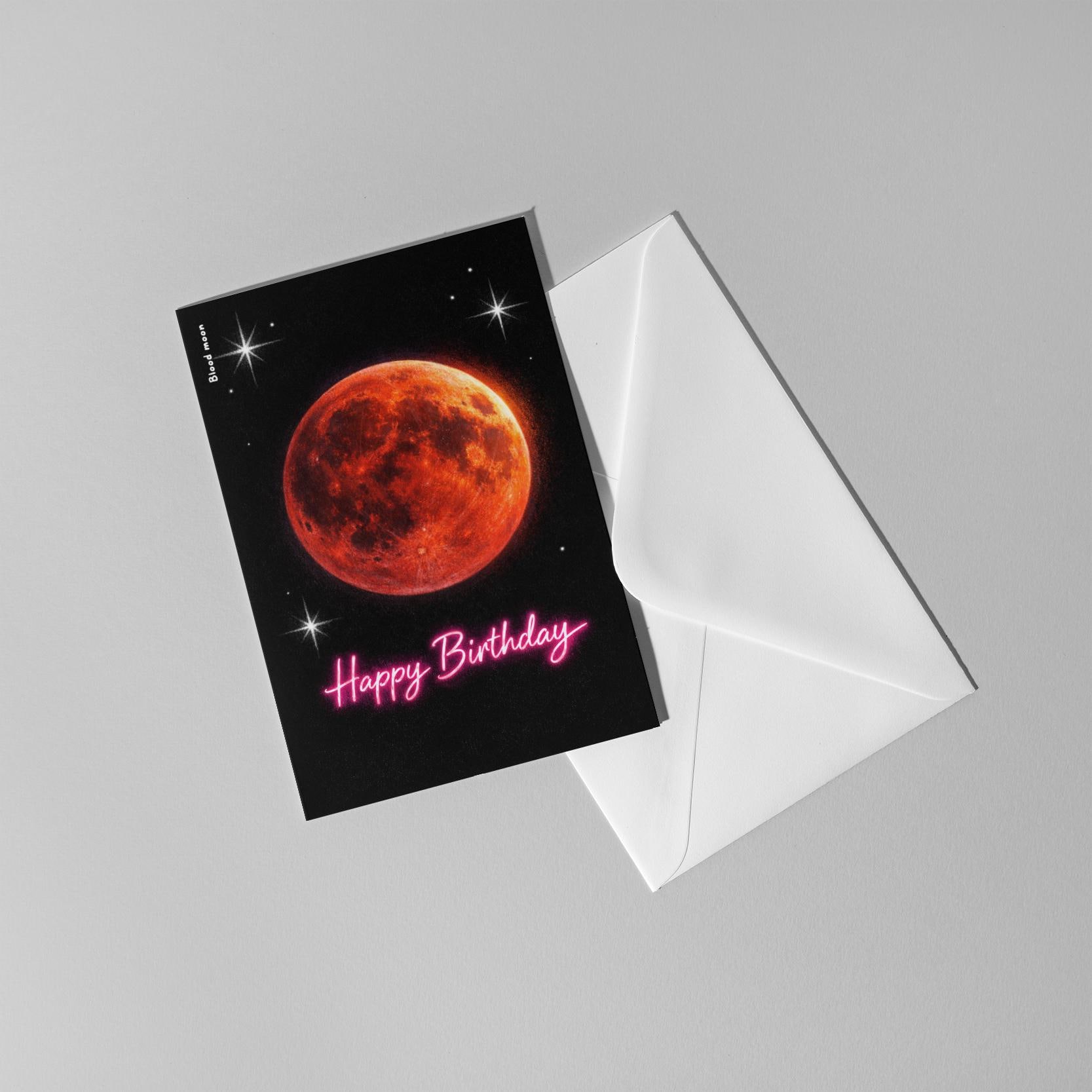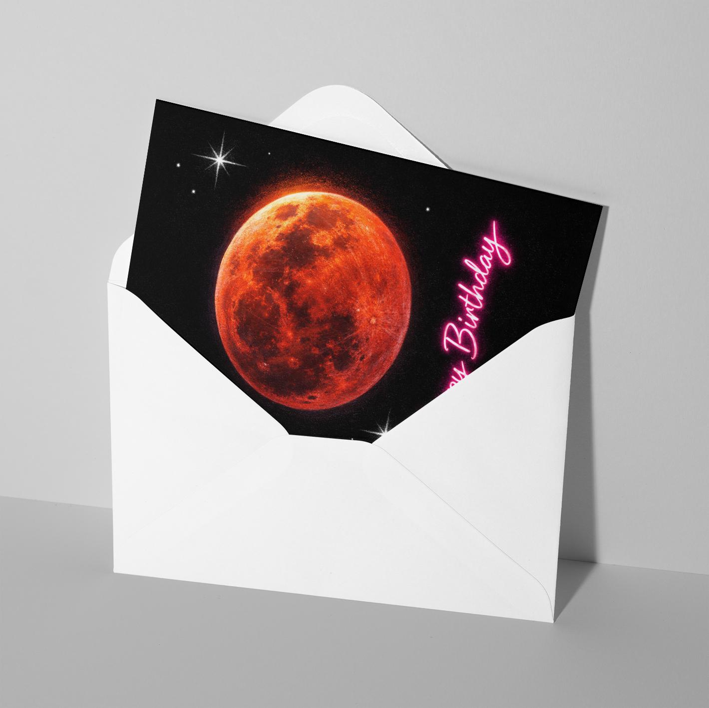 BLANK INTERIOR FOR A PERSONAL TOUCH: Our Galactic Journey Series - Lunar Eclipse Blood Moon Happy Birthday card - and other whimsical designs feature a blank interior, giving you ample space to write a personal message from the heart. Perfect for any occasion, each card comes with a matching white envelope, making it easy to send your unique sentiments to loved ones.