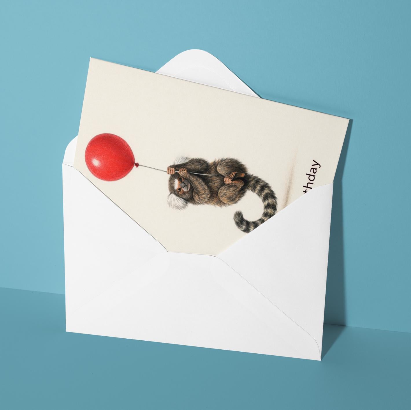 BLANK INTERIOR FOR A PERSONAL TOUCH: Our Animal Hugs Series Marmoset: Flying high for you – Happy Birthday! card - and other whimsical designs feature a blank interior, giving you ample space to write a personal message from the heart. Perfect for any occasion, each card comes with a matching white envelope, making it easy to send your unique sentiments to loved ones.