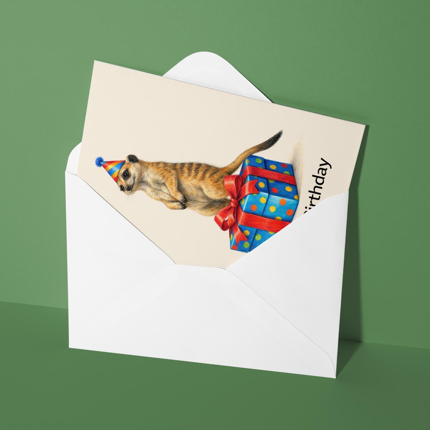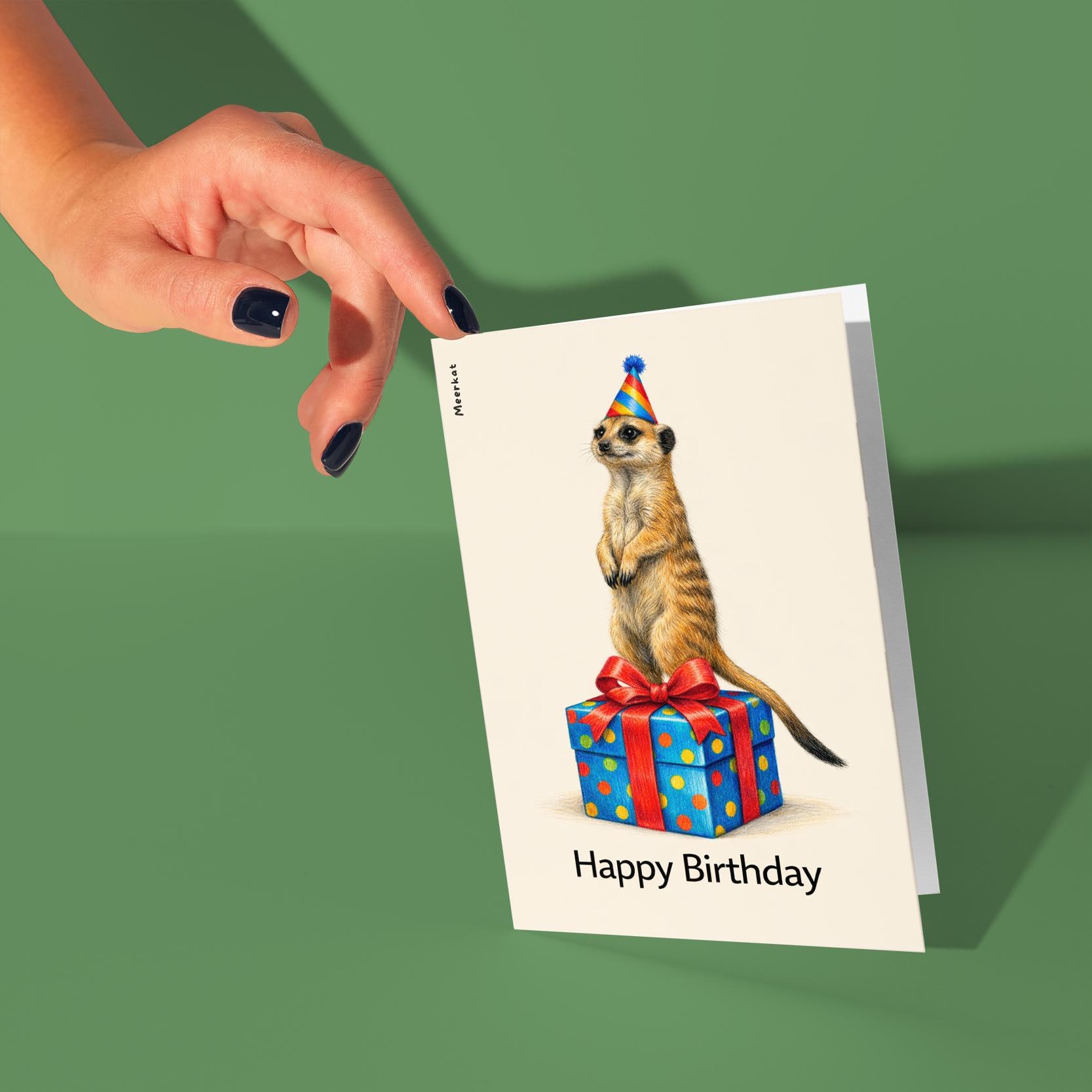 BLANK INTERIOR FOR A PERSONAL TOUCH: Our Animal Hugs Series Meerkat: Sweet surprise! – Happy Birthday! card - and other whimsical designs feature a blank interior, giving you ample space to write a personal message from the heart. Perfect for any occasion, each card comes with a matching white envelope, making it easy to send your unique sentiments to loved ones.
