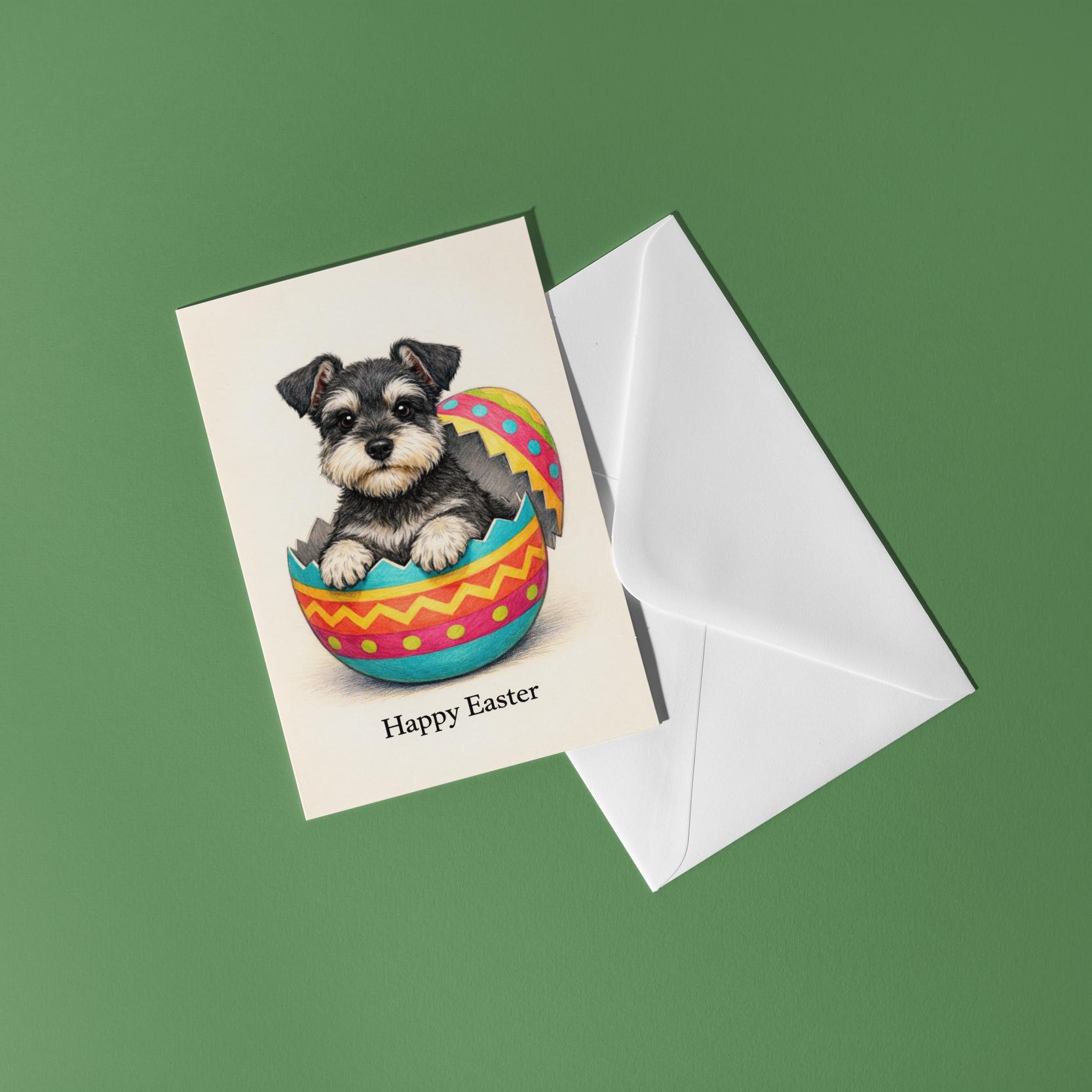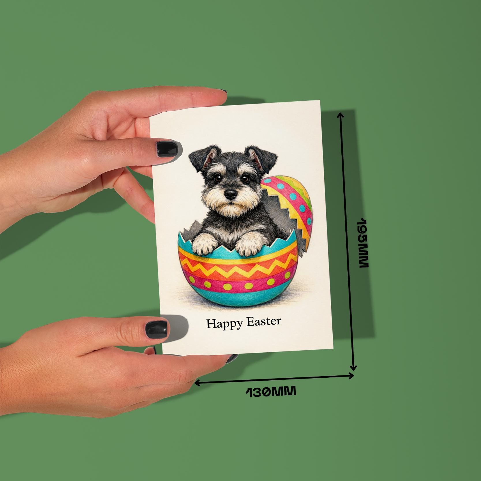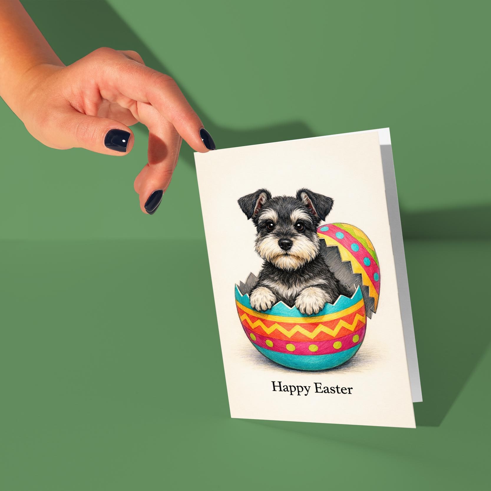 BLANK INTERIOR FOR A PERSONAL TOUCH: Part of the - Dog Breeds Collection - Miniature Schnauzer - Cracking open a day full of joy! Happy Easter card and other whimsical designs feature a blank interior, giving you ample space to write a personal message from the heart. Perfect for any occasion, each card comes with a matching white envelope, making it easy to send your unique sentiments to loved ones.