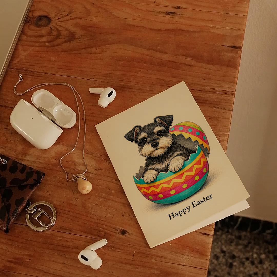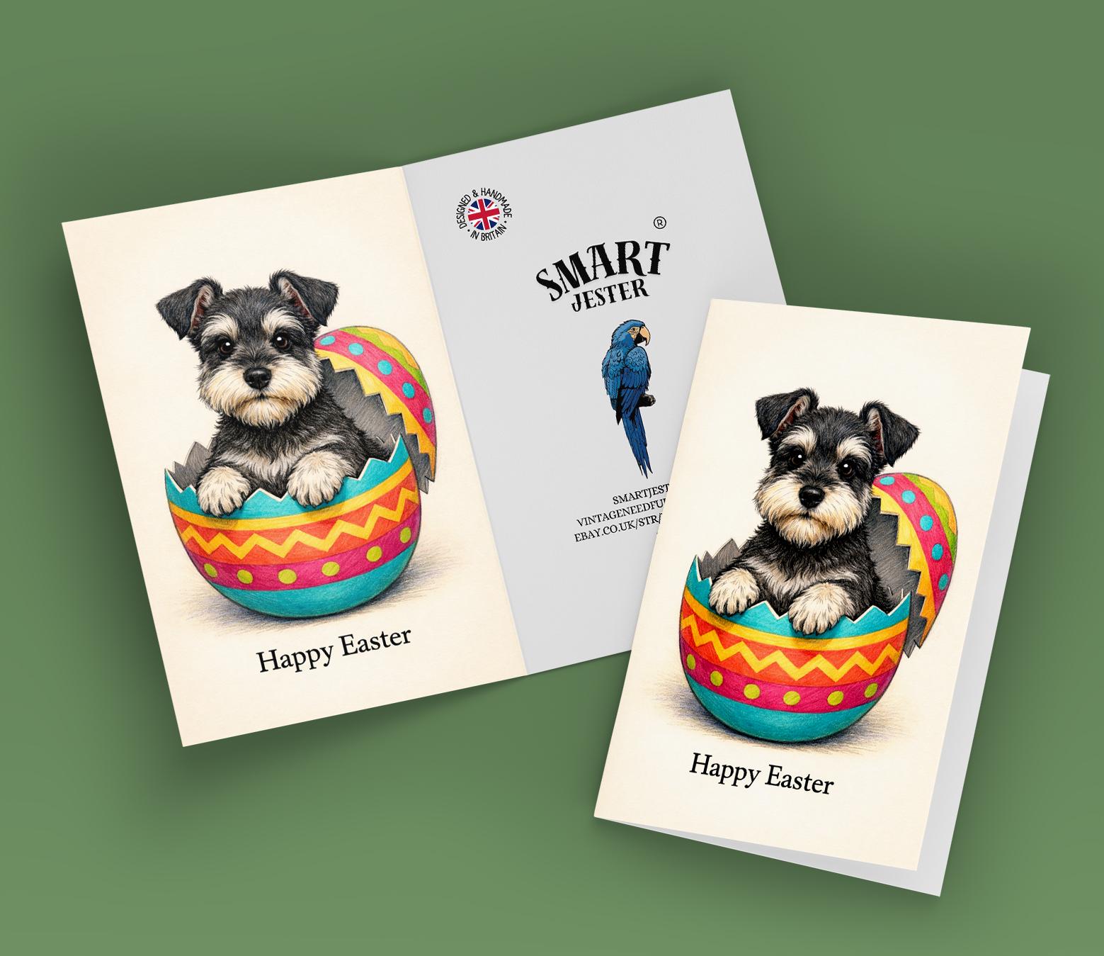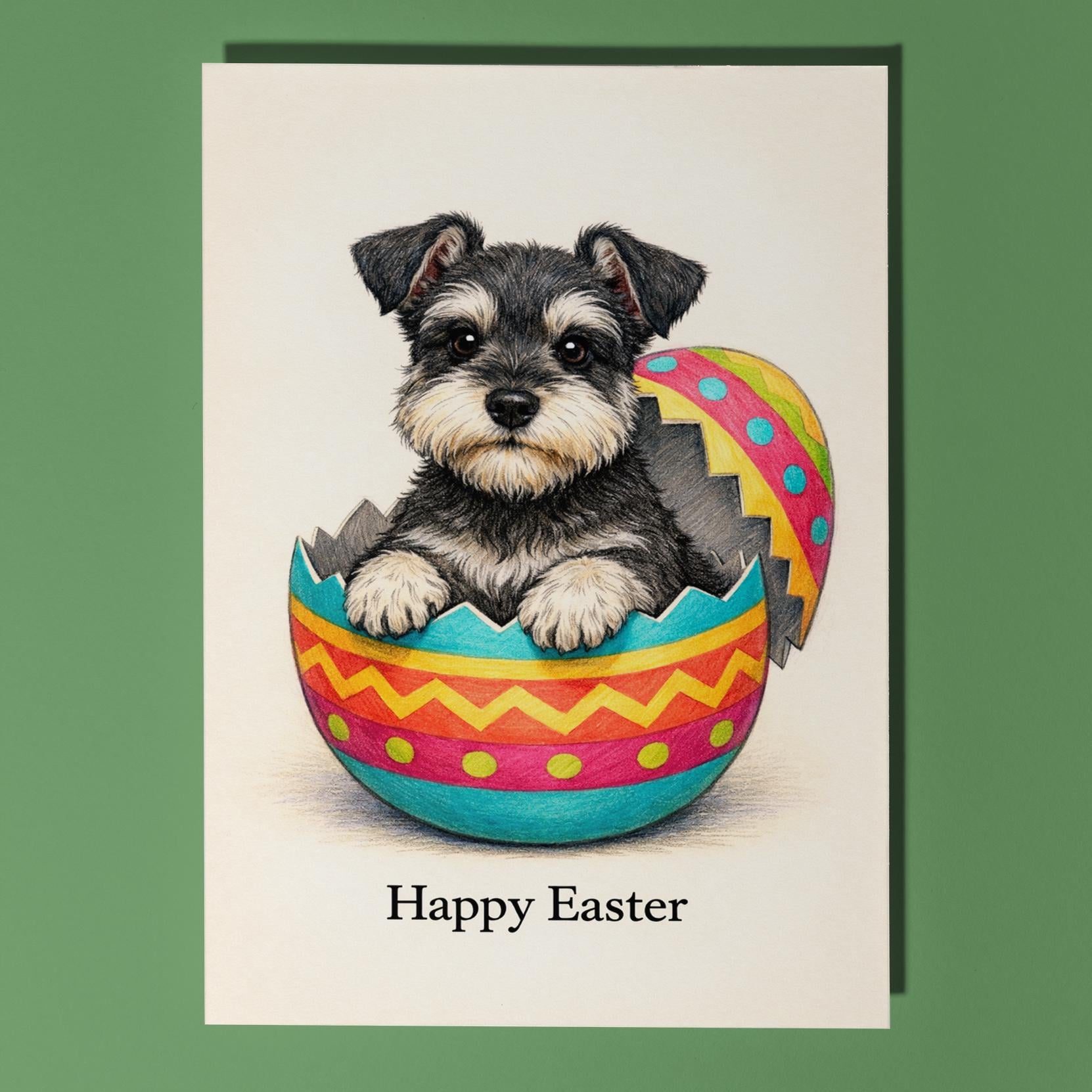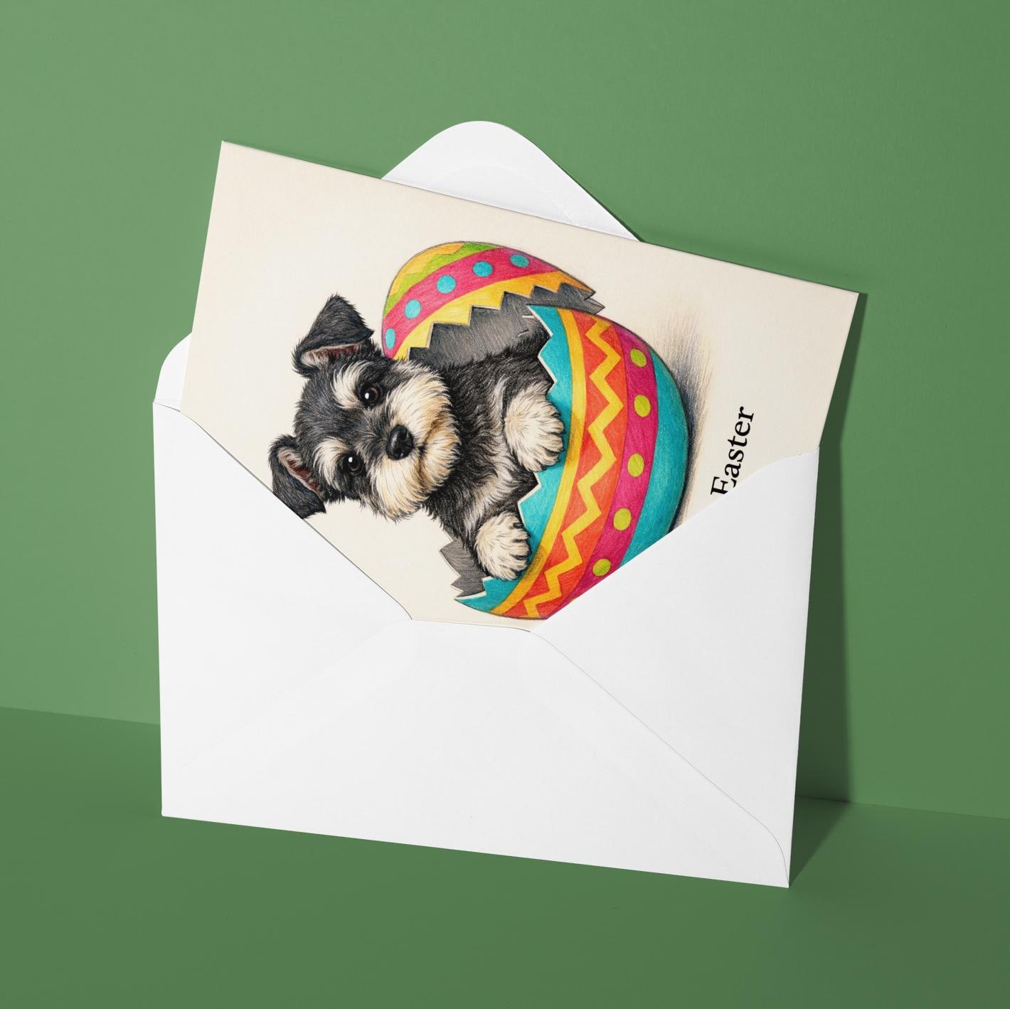 BLANK INTERIOR FOR A PERSONAL TOUCH: Part of the - Dog Breeds Collection - Miniature Schnauzer - Cracking open a day full of joy! Happy Easter card and other whimsical designs feature a blank interior, giving you ample space to write a personal message from the heart. Perfect for any occasion, each card comes with a matching white envelope, making it easy to send your unique sentiments to loved ones.