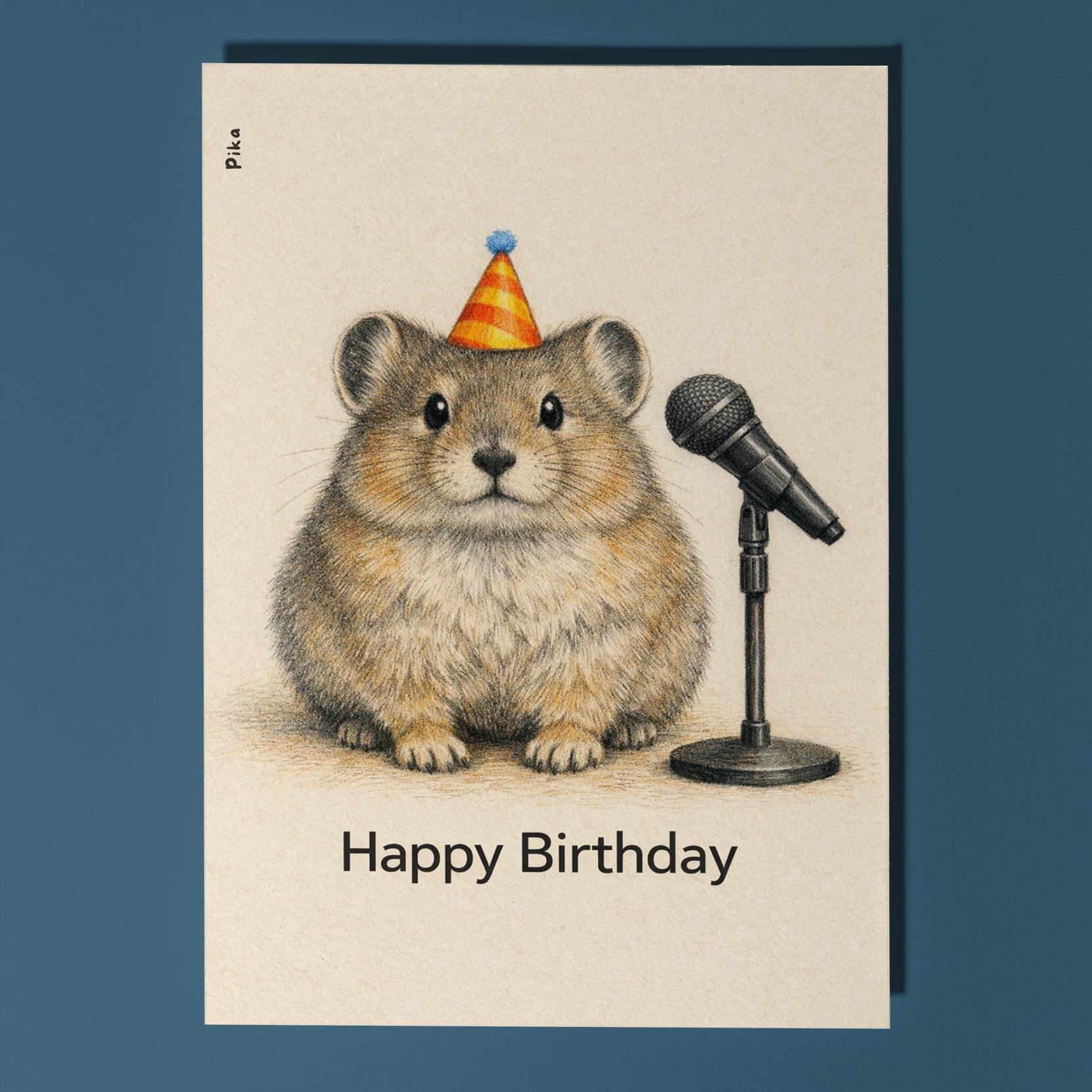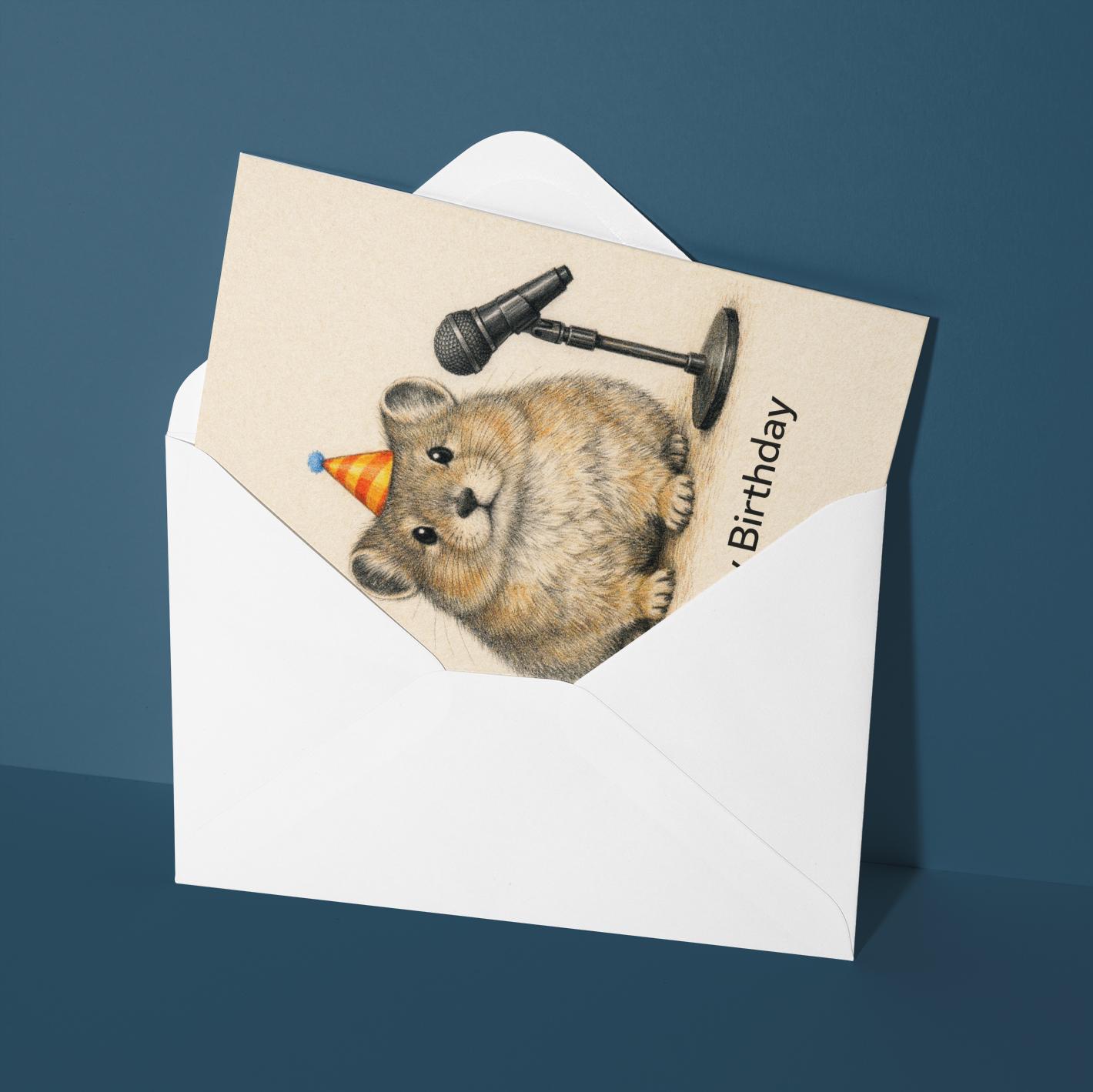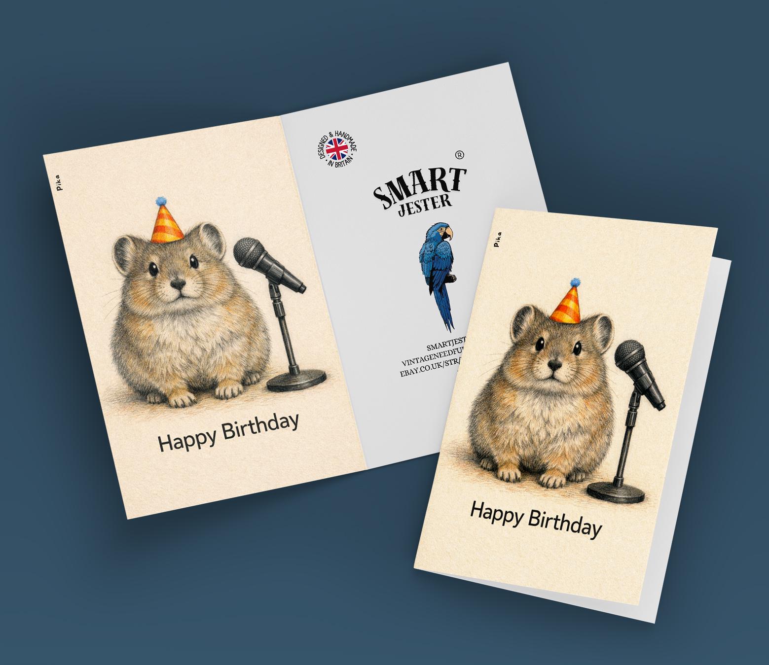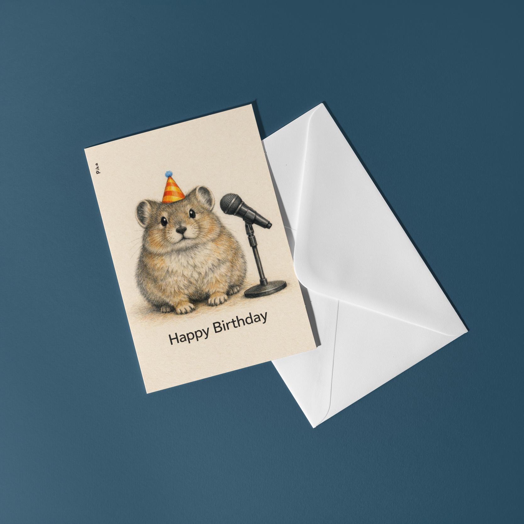 Pikas are famous for their "eee" calls that sound like a squeaky toy. Happy Birthday! card - and other whimsical designs feature a blank interior, giving you ample space to write a personal message from the heart. Perfect for any occasion, each card comes with a matching white envelope, making it easy to send your unique sentiments to loved ones.