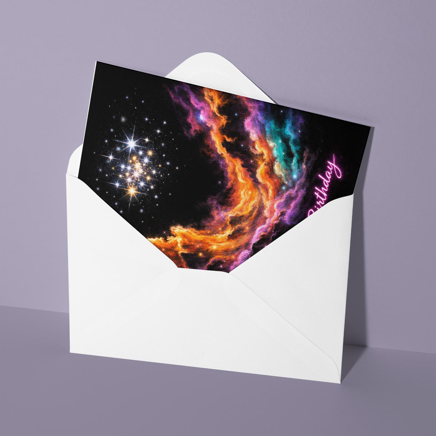 BLANK INTERIOR FOR A PERSONAL TOUCH: Our Galactic Journey Series - Pismis 24 Star Cluster Happy Birthday card - and other whimsical designs feature a blank interior, giving you ample space to write a personal message from the heart. Perfect for any occasion, each card comes with a matching white envelope, making it easy to send your unique sentiments to loved ones.