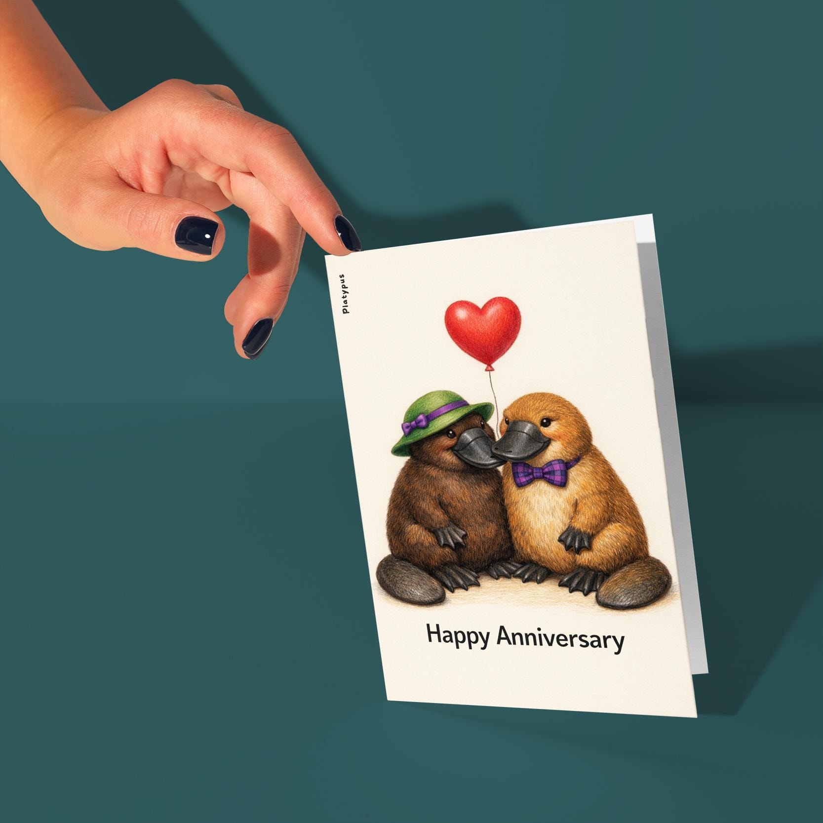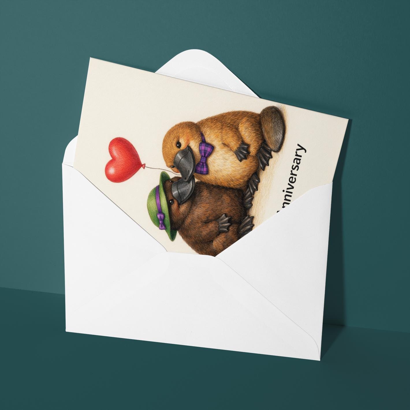 BLANK INTERIOR FOR A PERSONAL TOUCH: Our Animal Hugs Series - Platypuses: Heart to heart - Anniversary Card and other whimsical designs feature a blank interior, giving you ample space to write a personal message from the heart. Perfect for any occasion, each card comes with a matching white envelope, making it easy to send your unique sentiments to loved ones.