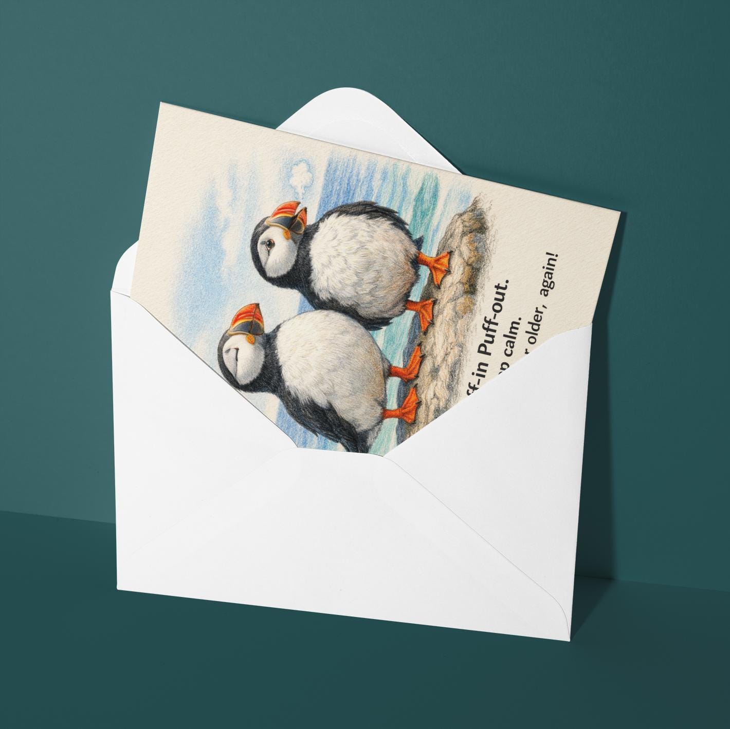 BLANK INTERIOR FOR A PERSONAL TOUCH: Our Puffin puff-in puff-out Keep calm You are one year older again Happy Birthday! card - and other whimsical designs feature a blank interior, giving you ample space to write a personal message from the heart. Perfect for any occasion, each card comes with a matching white envelope, making it easy to send your unique sentiments to loved ones.