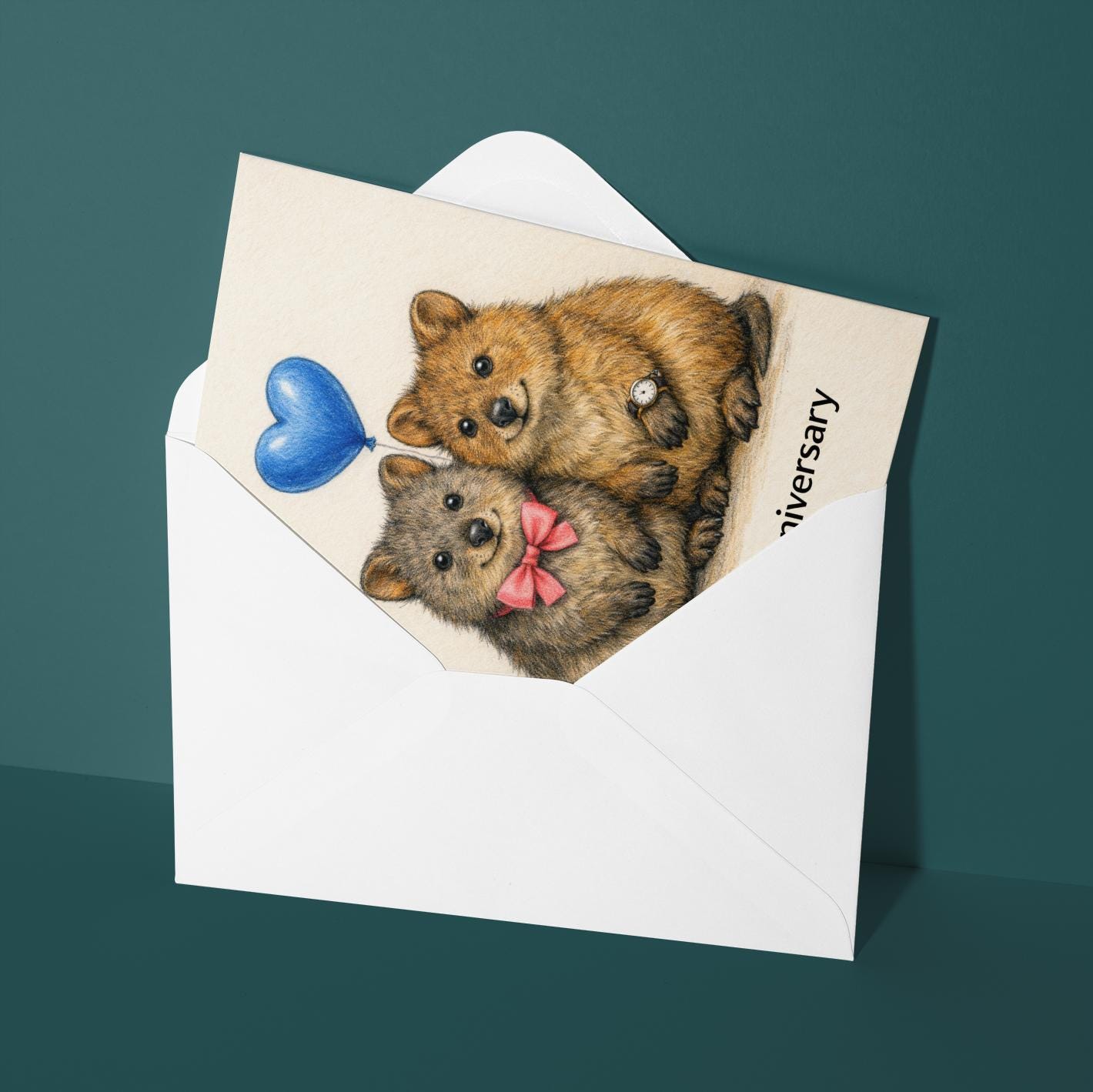 BLANK INTERIOR FOR A PERSONAL TOUCH: Our Animal Hugs Series - Quokkas: Smiling forever - Anniversary Card and other whimsical designs feature a blank interior, giving you ample space to write a personal message from the heart. Perfect for any occasion, each card comes with a matching white envelope, making it easy to send your unique sentiments to loved ones.