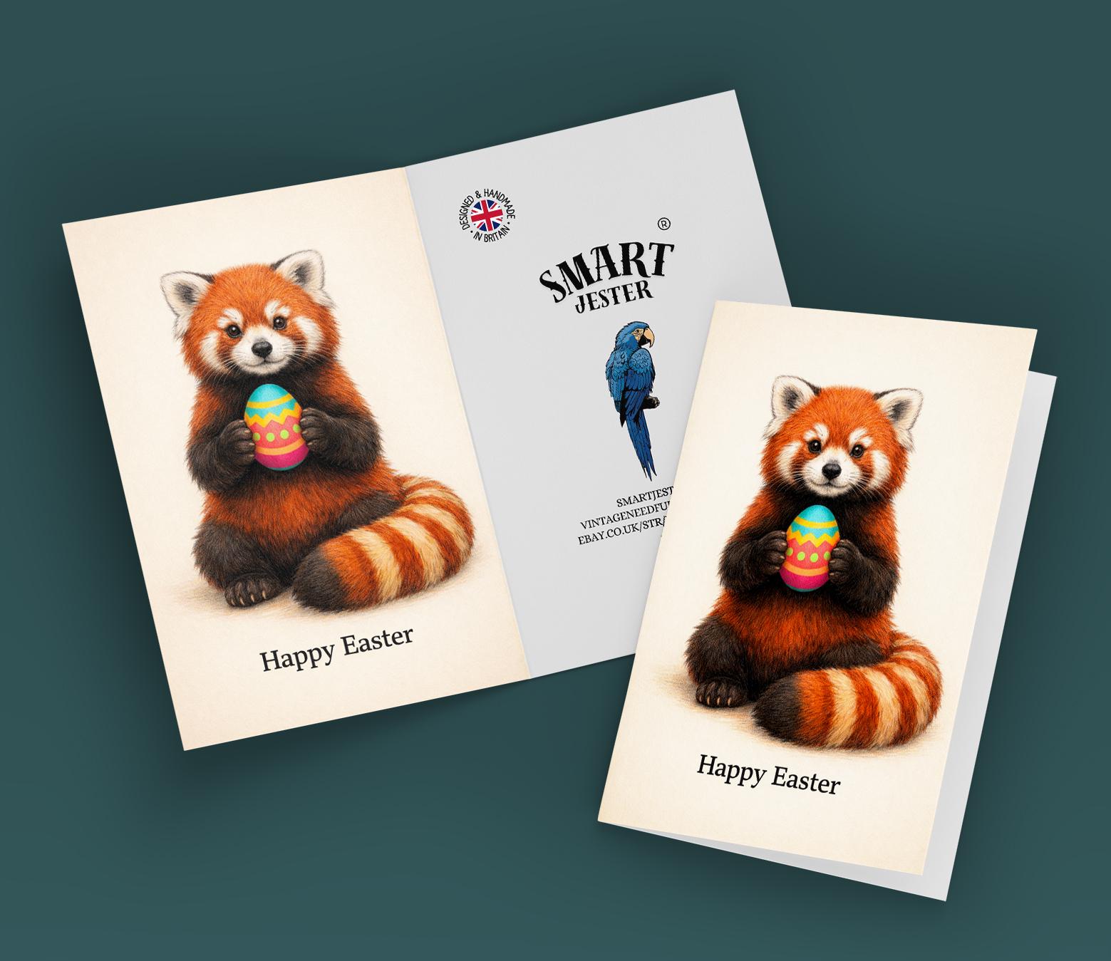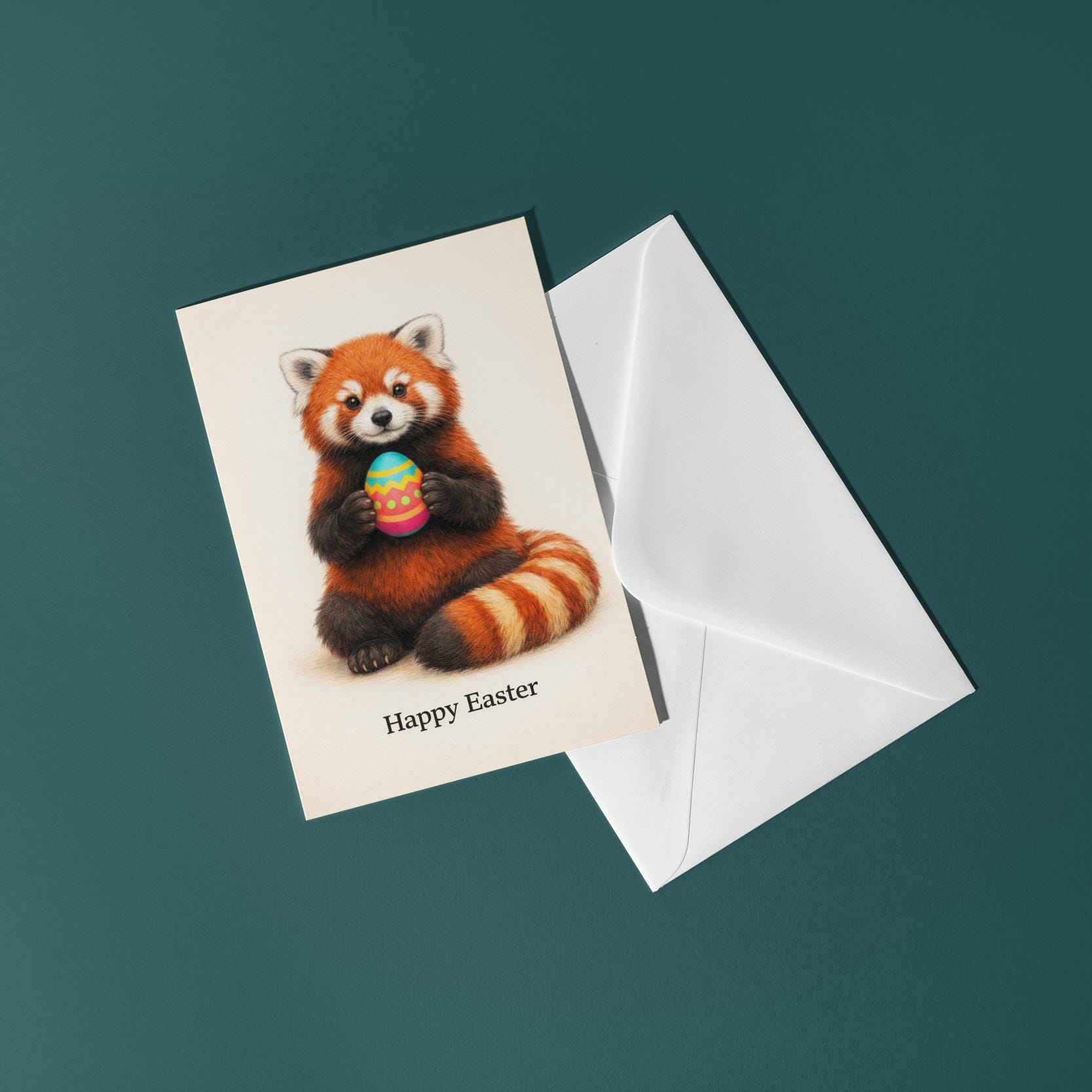 BLANK INTERIOR FOR A PERSONAL TOUCH: Part of the - Animal hugs series - Red Panda: Soft hugs Happy Easter card and other whimsical designs feature a blank interior, giving you ample space to write a personal message from the heart. Perfect for any occasion, each card comes with a matching white envelope, making it easy to send your unique sentiments to loved ones.