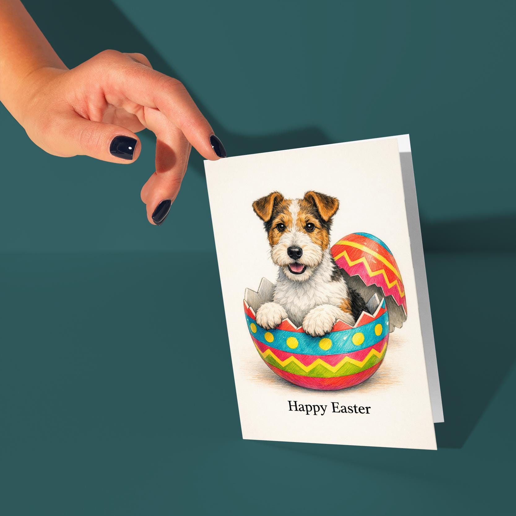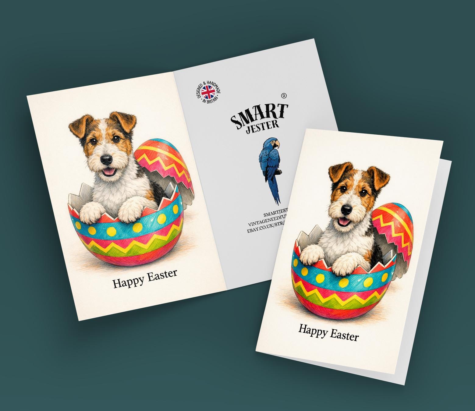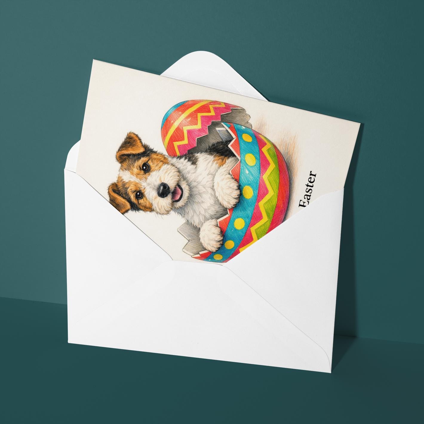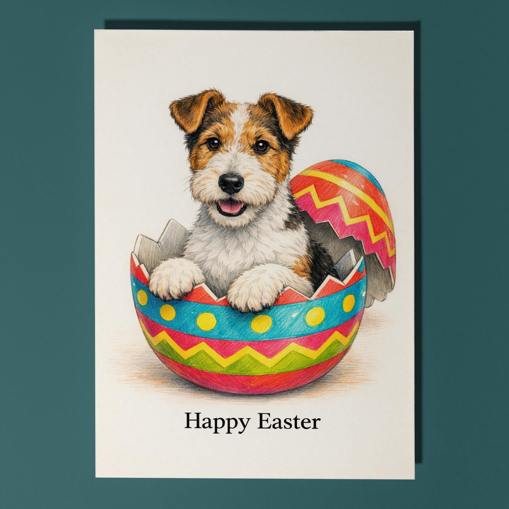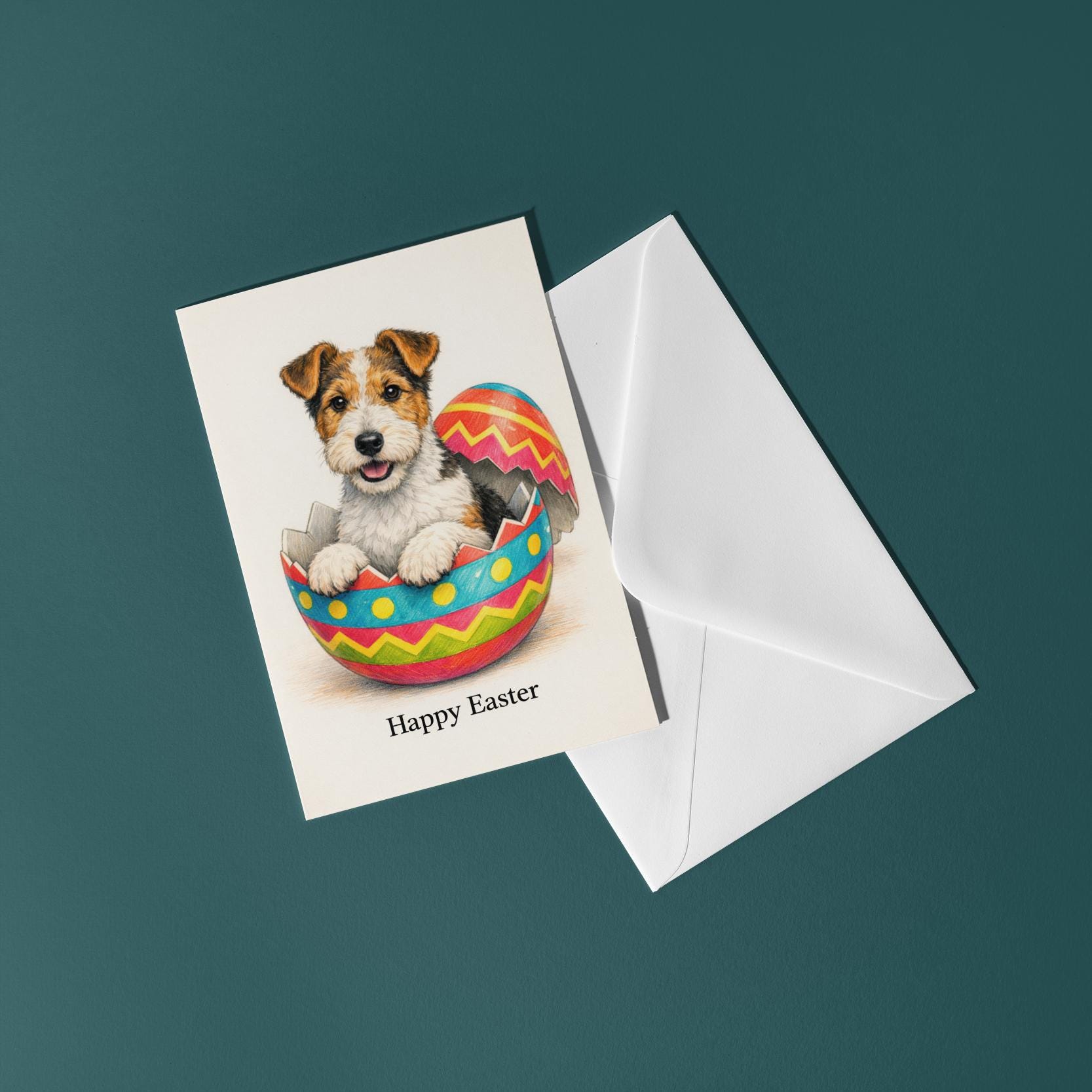 BLANK INTERIOR FOR A PERSONAL TOUCH: Part of the - Dog Breeds series - Wire fox terrier - Cracking open a day full of joy! Happy Easter card and other whimsical designs feature a blank interior, giving you ample space to write a personal message from the heart. Perfect for any occasion, each card comes with a matching white envelope, making it easy to send your unique sentiments to loved ones.