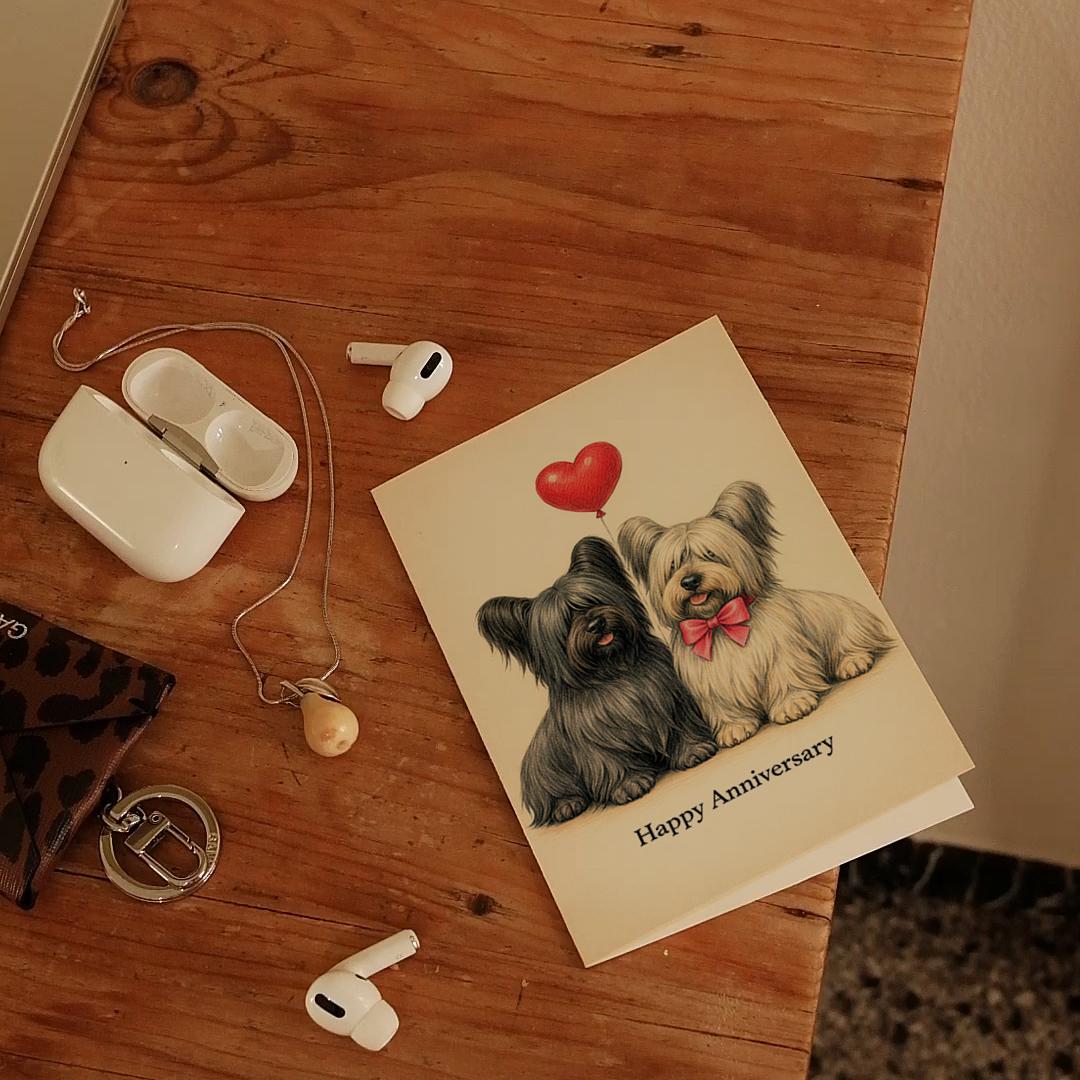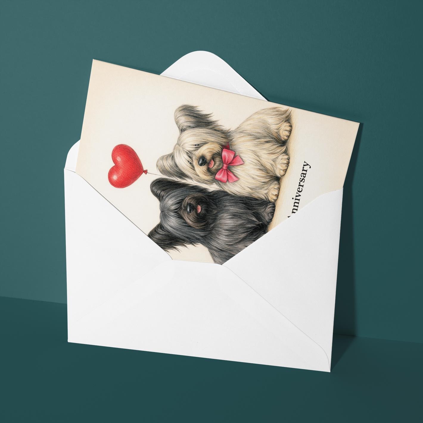 BLANK INTERIOR FOR A PERSONAL TOUCH: Our Dogs breeds series - Skye Terriers Duo: Love is in the hair - Happy Anniversary Card and other whimsical designs feature a blank interior, giving you ample space to write a personal message from the heart. Perfect for any occasion, each card comes with a matching white envelope, making it easy to send your unique sentiments to loved ones.