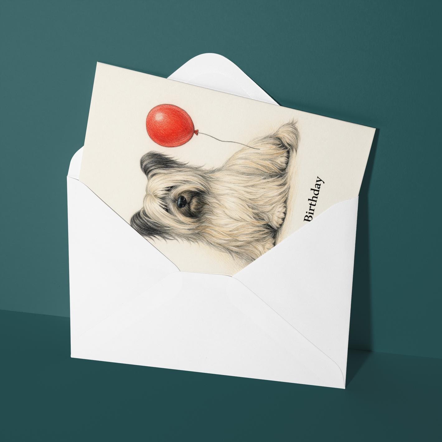 BLANK INTERIOR FOR A PERSONAL TOUCH: Our Dog Breeds series - Skye Terrier dog - Happy Birthday! card and other whimsical designs feature a blank interior, giving you ample space to write a personal message from the heart. Perfect for any occasion, each card comes with a matching white envelope, making it easy to send your unique sentiments to loved ones.