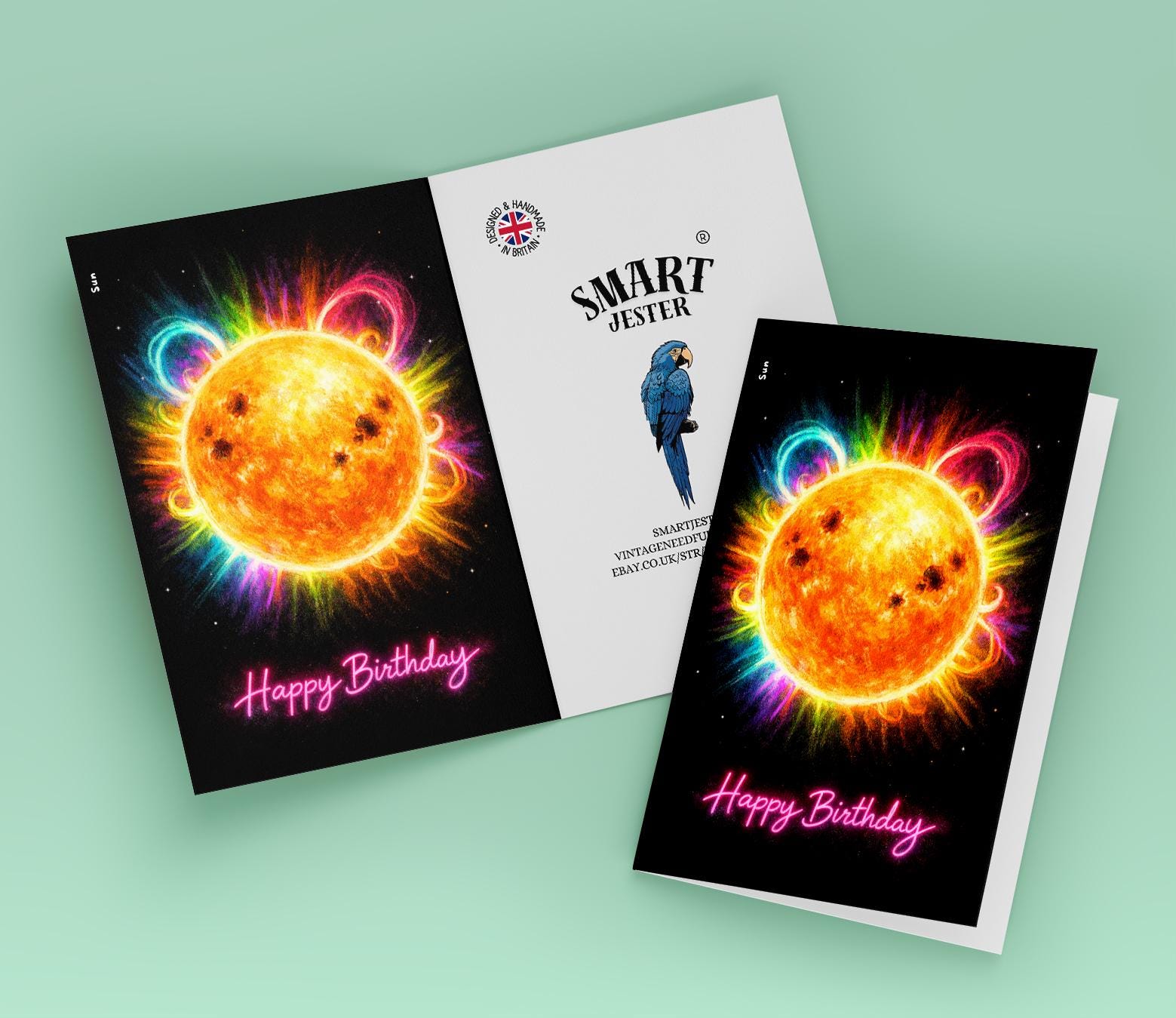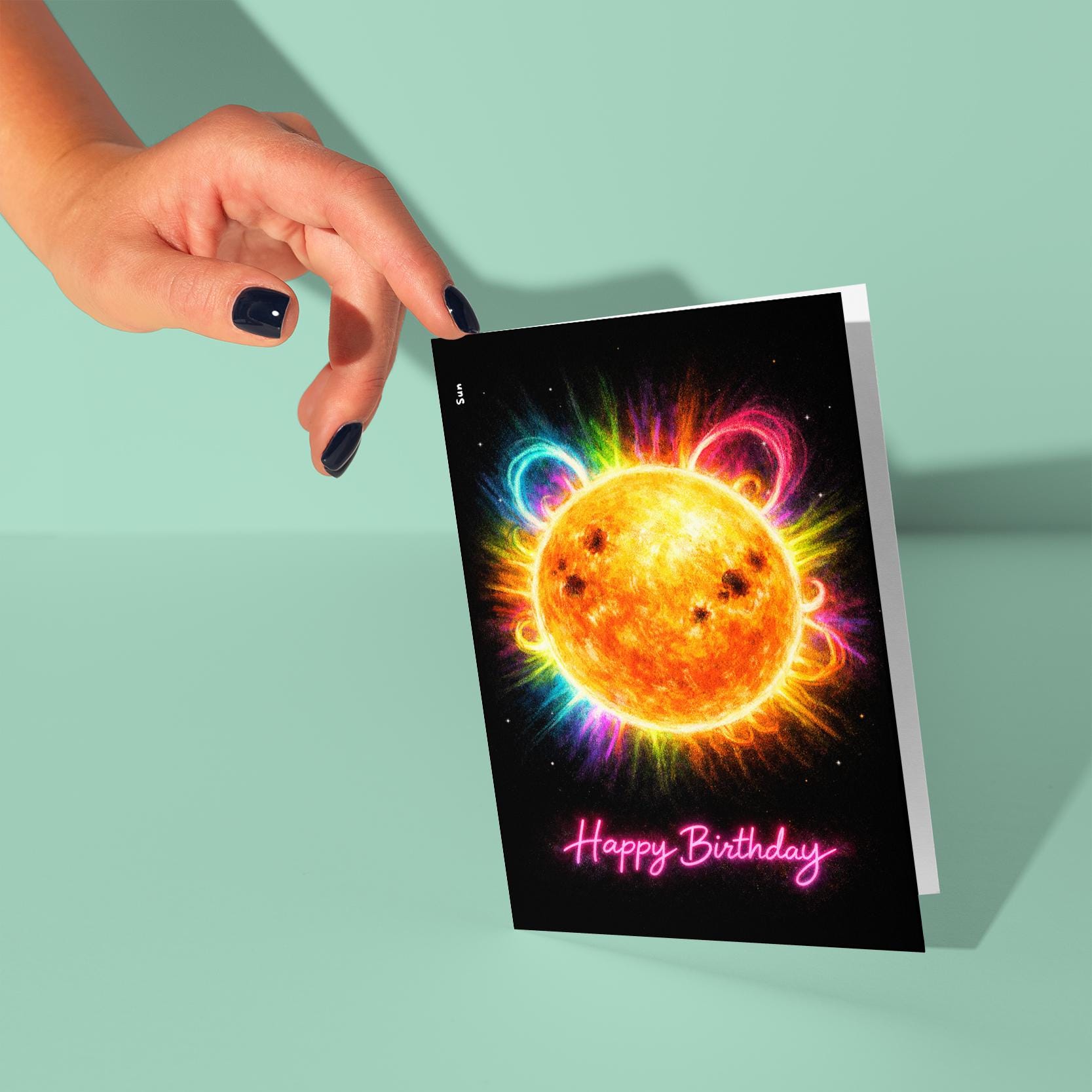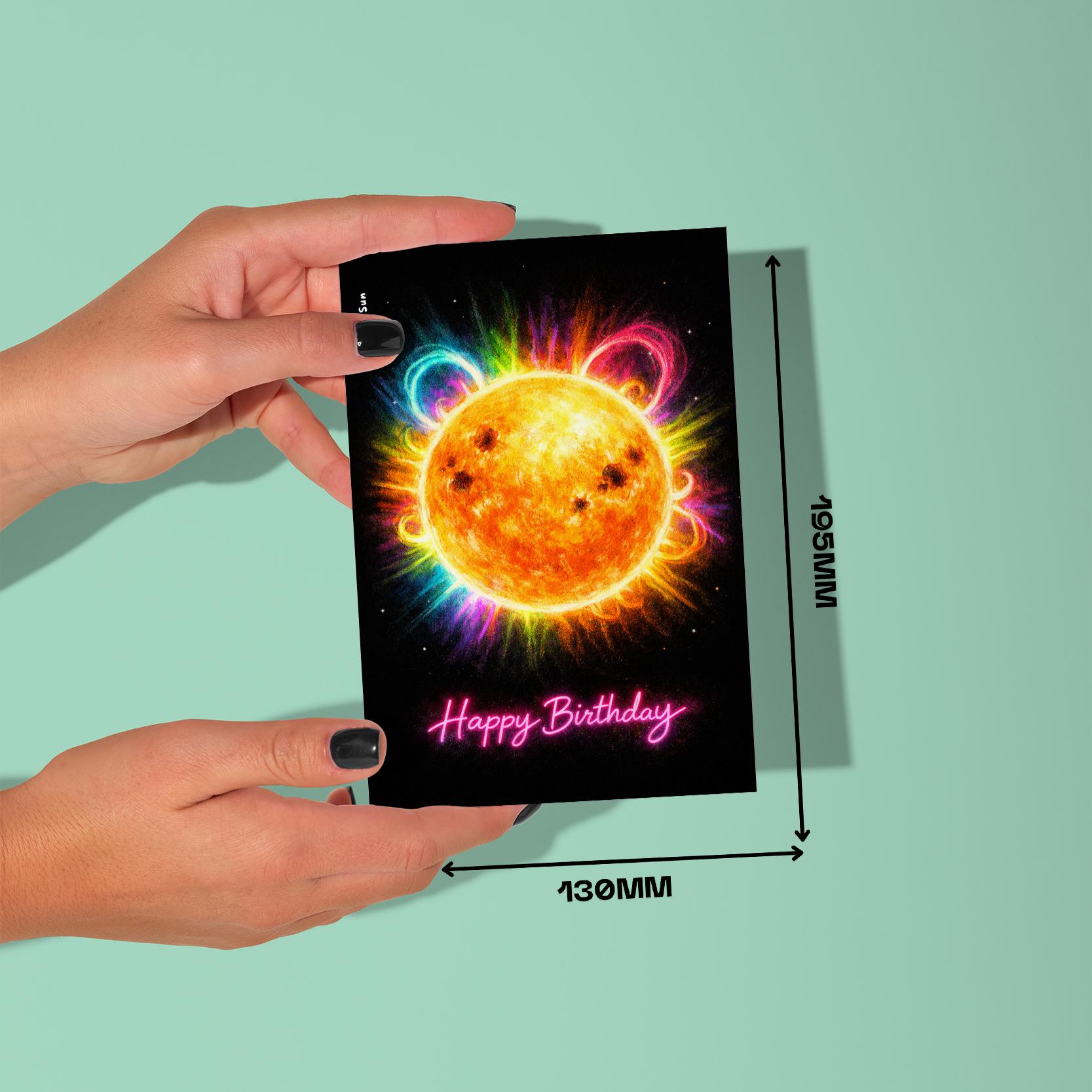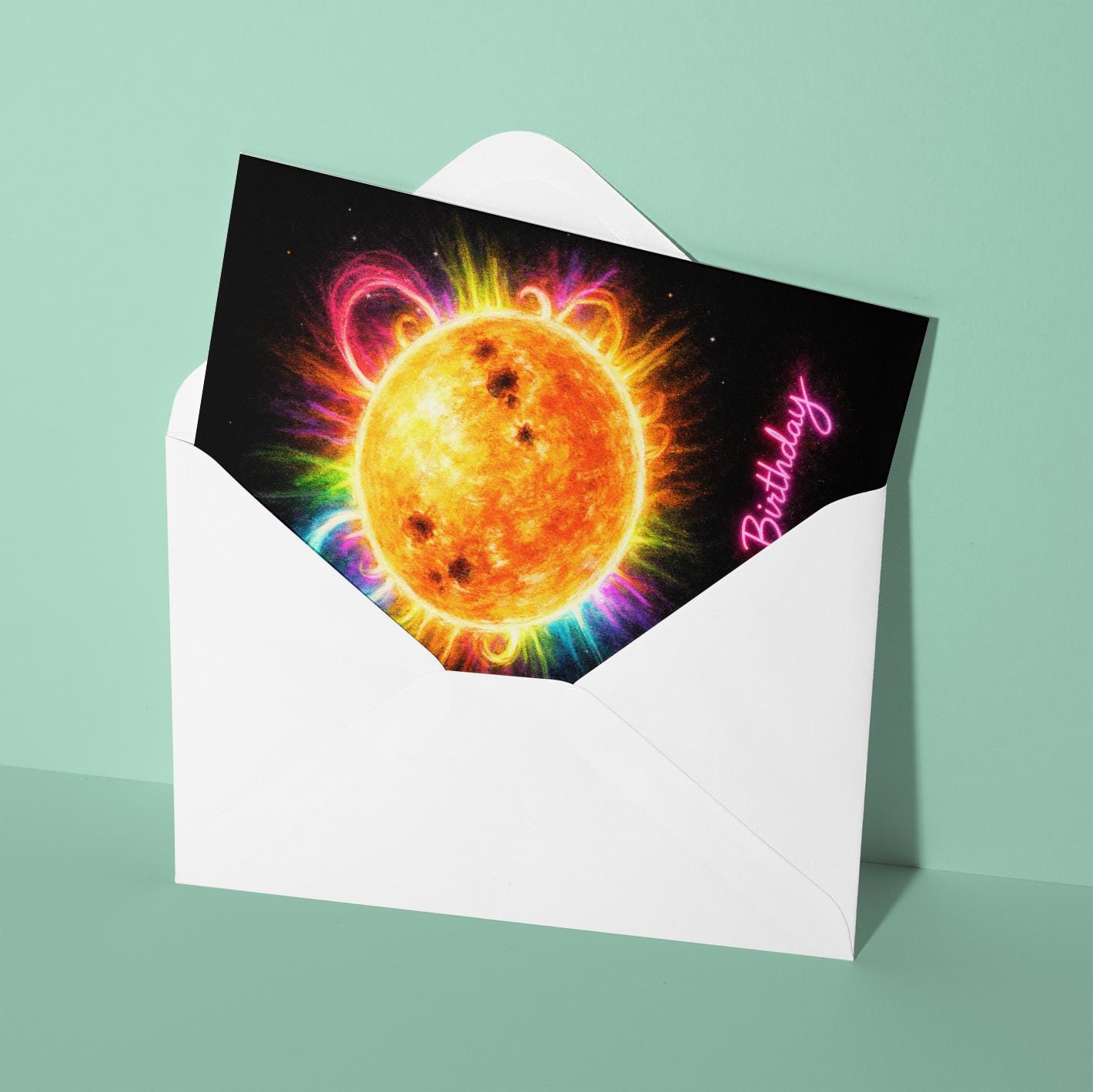 BLANK INTERIOR FOR A PERSONAL TOUCH: Our Galactic Journey Series - Sun Happy Birthday card - and other whimsical designs feature a blank interior, giving you ample space to write a personal message from the heart. Perfect for any occasion, each card comes with a matching white envelope, making it easy to send your unique sentiments to loved ones.