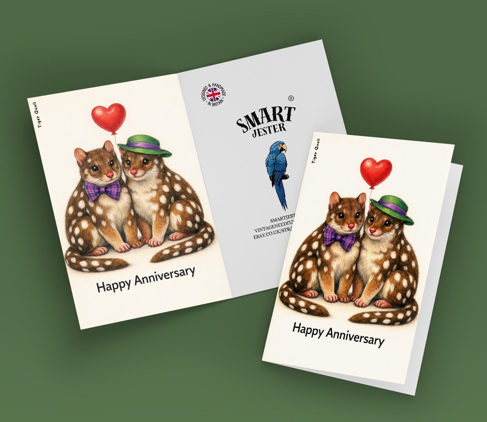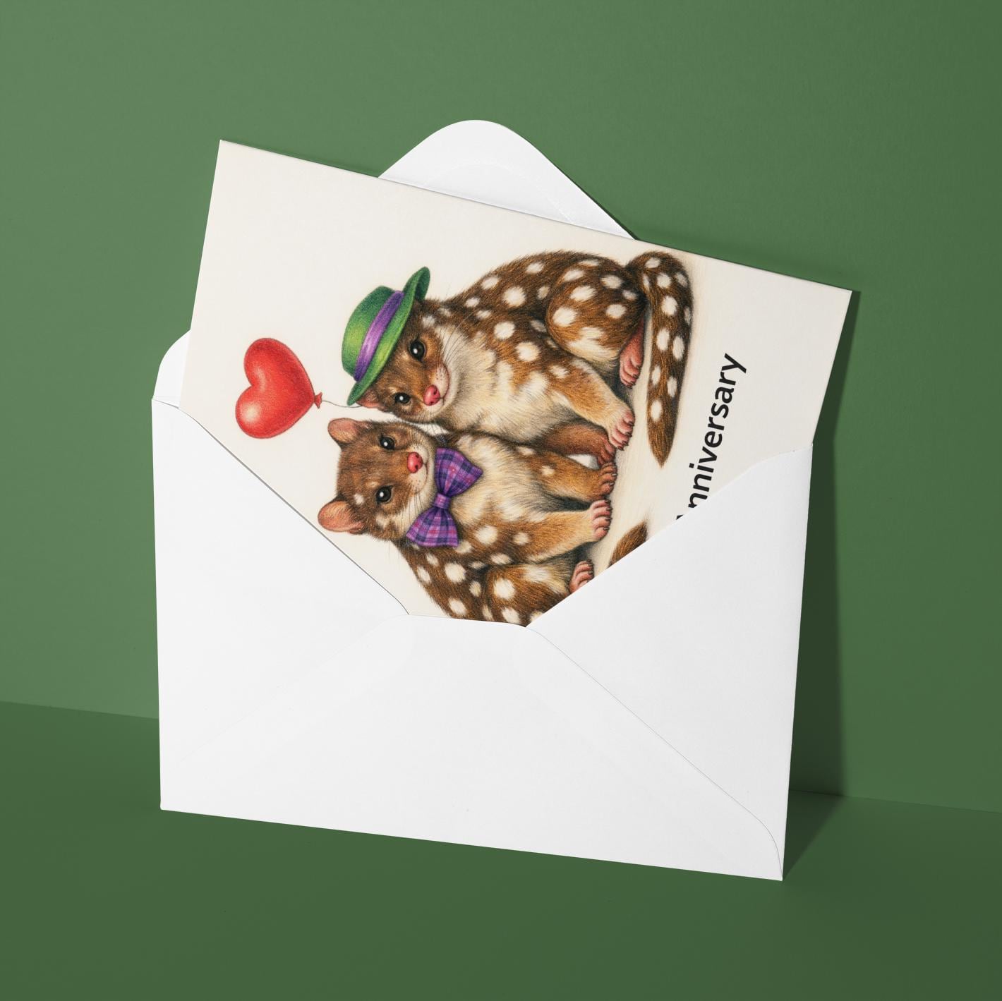 BLANK INTERIOR FOR A PERSONAL TOUCH: Our Animal Hugs Series - Tiger Quolls: Spot on love - Happy Anniversary Card and other whimsical designs feature a blank interior, giving you ample space to write a personal message from the heart. Perfect for any occasion, each card comes with a matching white envelope, making it easy to send your unique sentiments to loved ones.