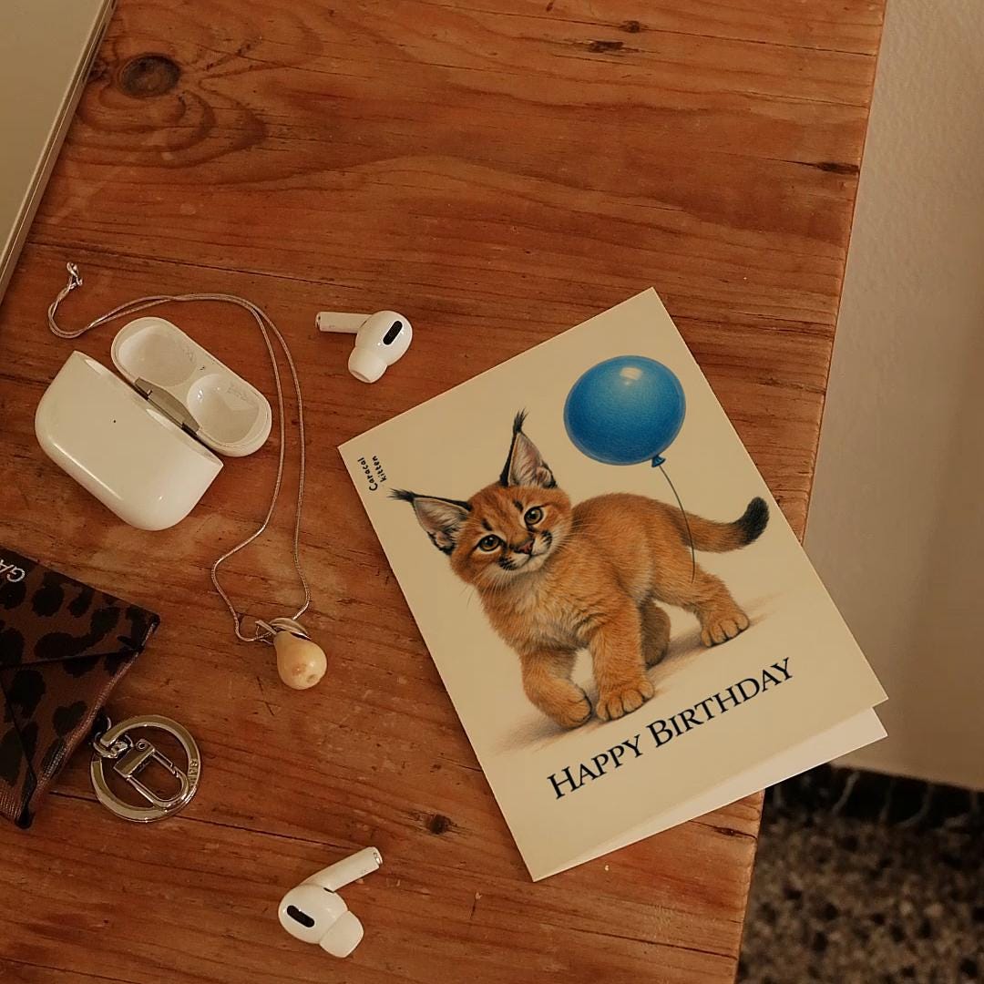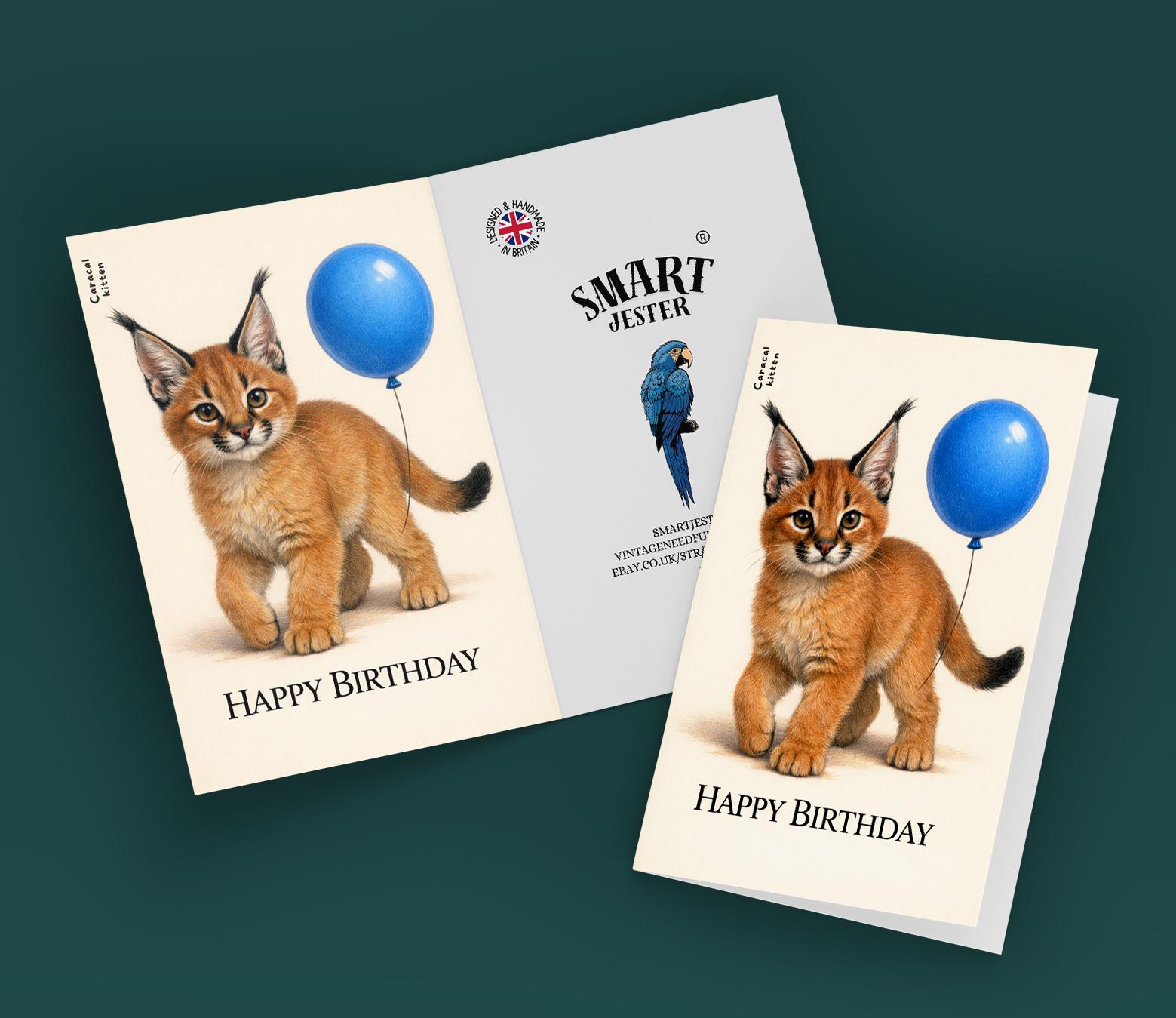 BLANK INTERIOR FOR A PERSONAL TOUCH: Our Wild Cats Party Series – Caracal kitten: Growing into greatness. Happy Birthday! card - and other whimsical designs feature a blank interior, giving you ample space to write a personal message from the heart. Perfect for any occasion, each card comes with a matching white envelope, making it easy to send your unique sentiments to loved ones.