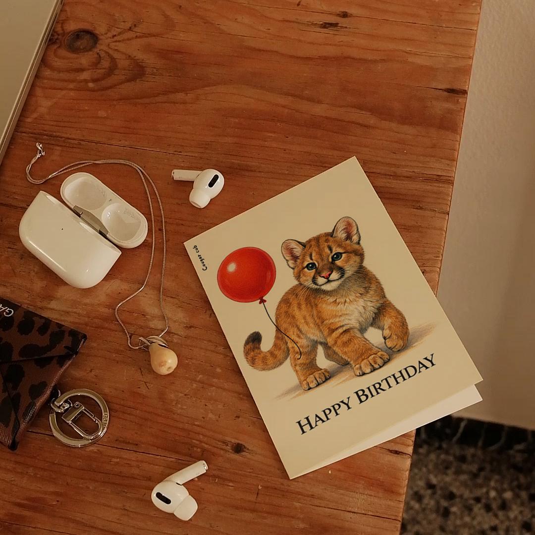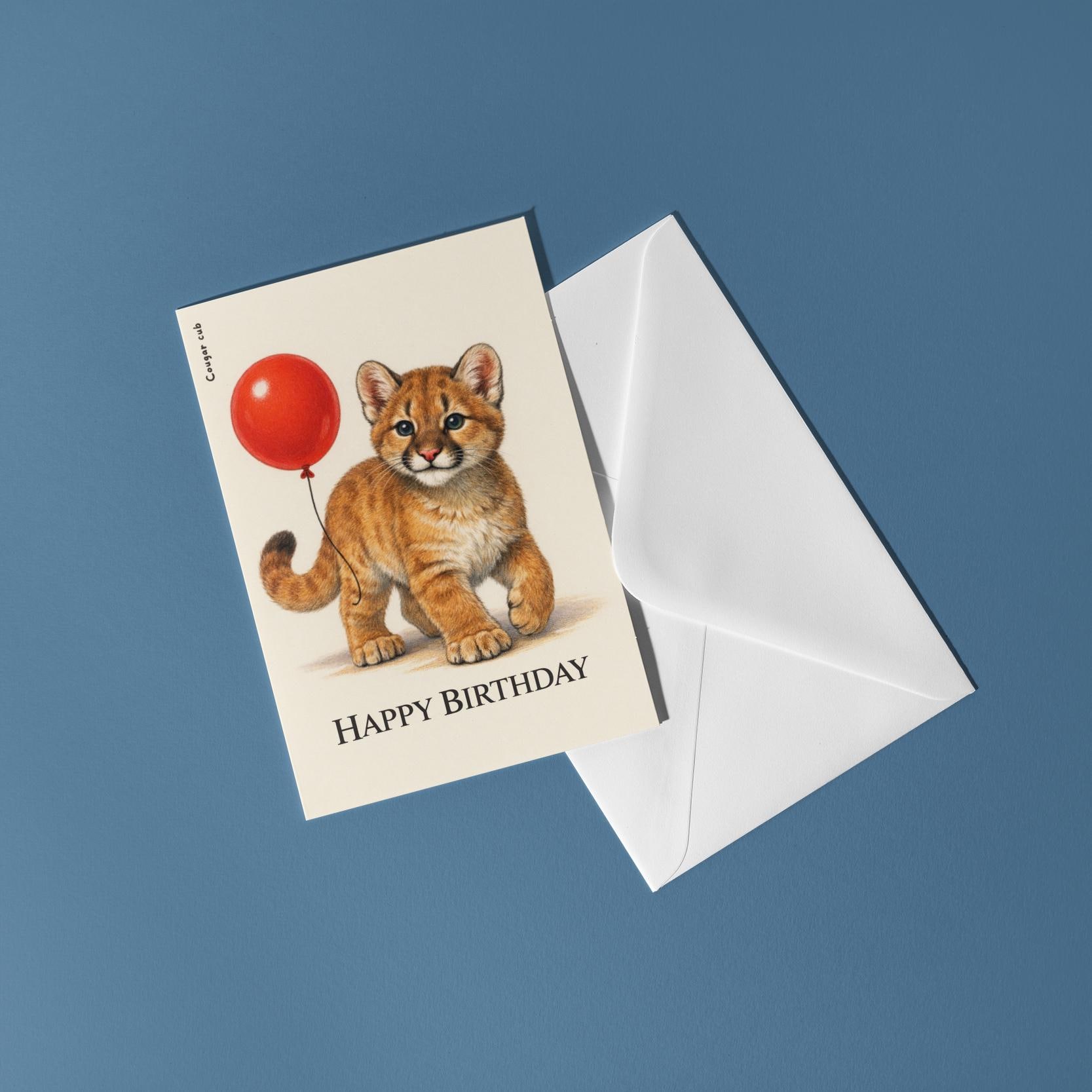 BLANK INTERIOR FOR A PERSONAL TOUCH: Our Wild Cats Party Series – Cougar cub: Wildly adorable Happy Birthday! card - and other whimsical designs feature a blank interior, giving you ample space to write a personal message from the heart. Perfect for any occasion, each card comes with a matching white envelope, making it easy to send your unique sentiments to loved ones.