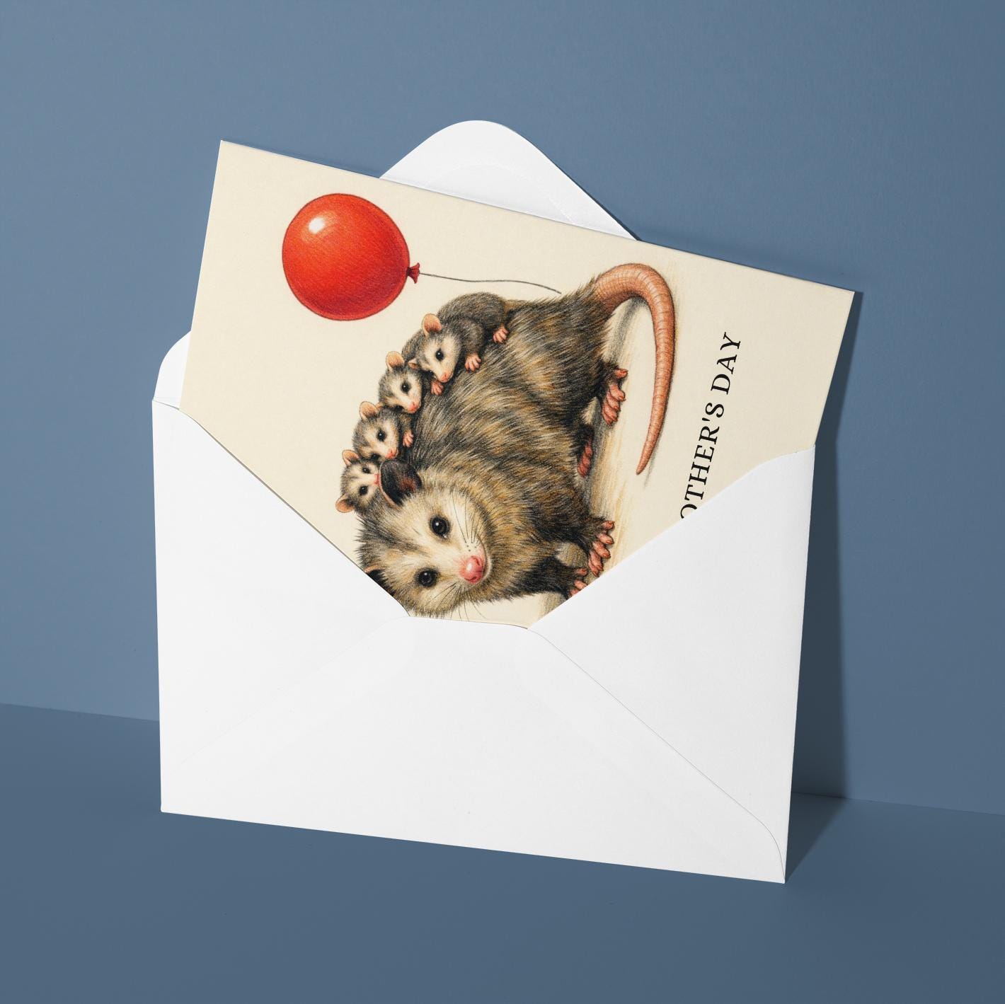 BLANK INTERIOR FOR A PERSONAL TOUCH: Our Animal Hugs Series – Opossum Possum Pocket Full of Love Happy Mother's Day card - and other whimsical designs feature a blank interior, giving you ample space to write a personal message from the heart. Perfect for any occasion, each card comes with a matching white envelope, making it easy to send your unique sentiments to loved ones.