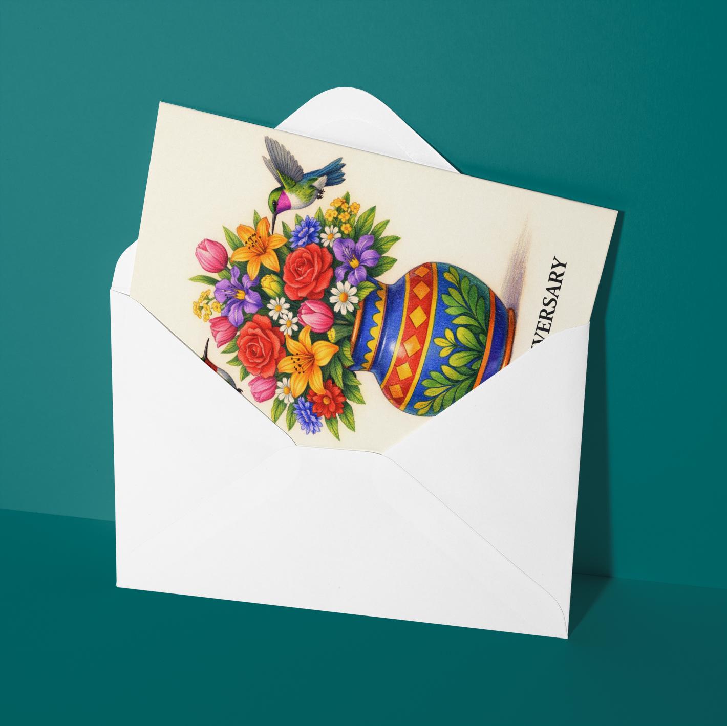 BLANK INTERIOR FOR A PERSONAL TOUCH: Our Animal Hugs Series - Hummingbird: Sweetest Love – Happy Anniversary card - and other whimsical designs feature a blank interior, giving you ample space to write a personal message from the heart. Perfect for any occasion, each card comes with a matching white envelope, making it easy to send your unique sentiments to loved ones.