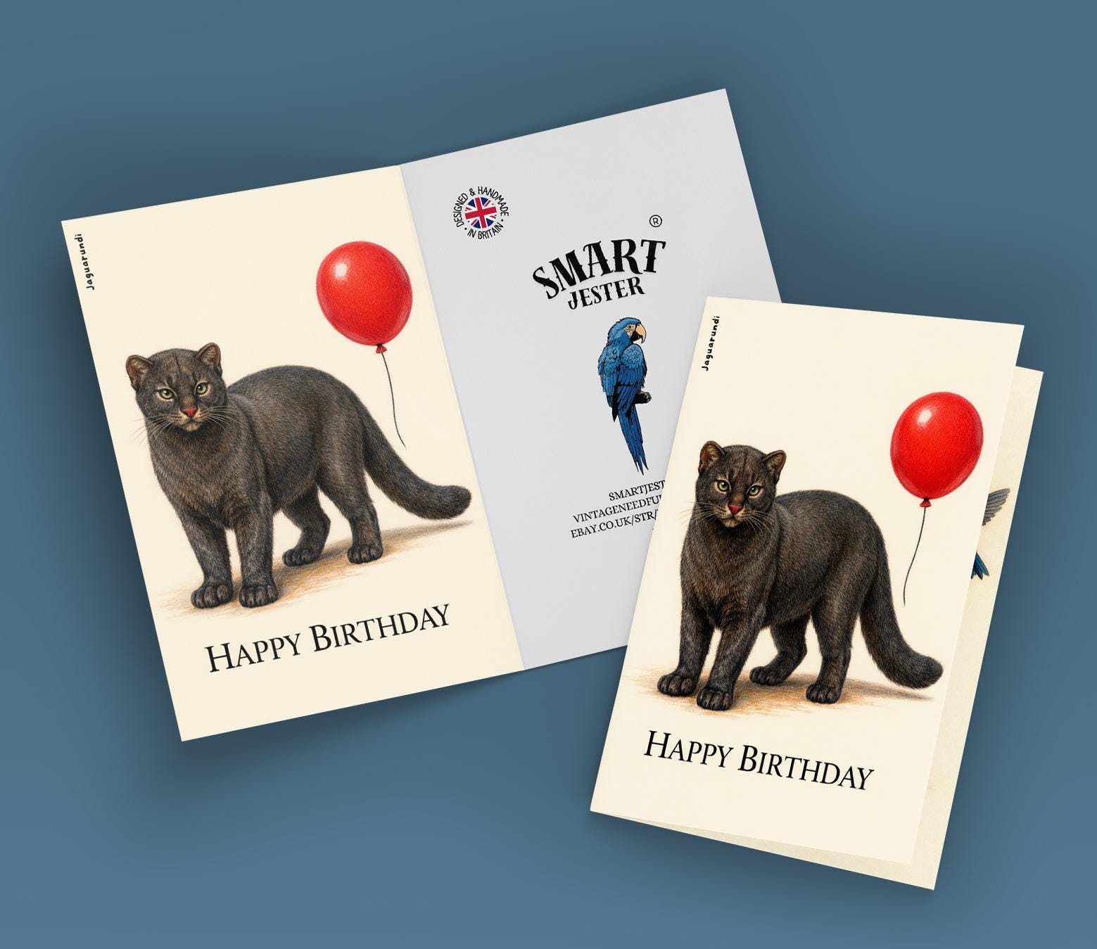 BLANK INTERIOR FOR A PERSONAL TOUCH: Our Wild Cats Party Series – Jaguarundi: One of a Kind Happy Birthday! card - and other whimsical designs feature a blank interior, giving you ample space to write a personal message from the heart. Perfect for any occasion, each card comes with a matching white envelope, making it easy to send your unique sentiments to loved ones.