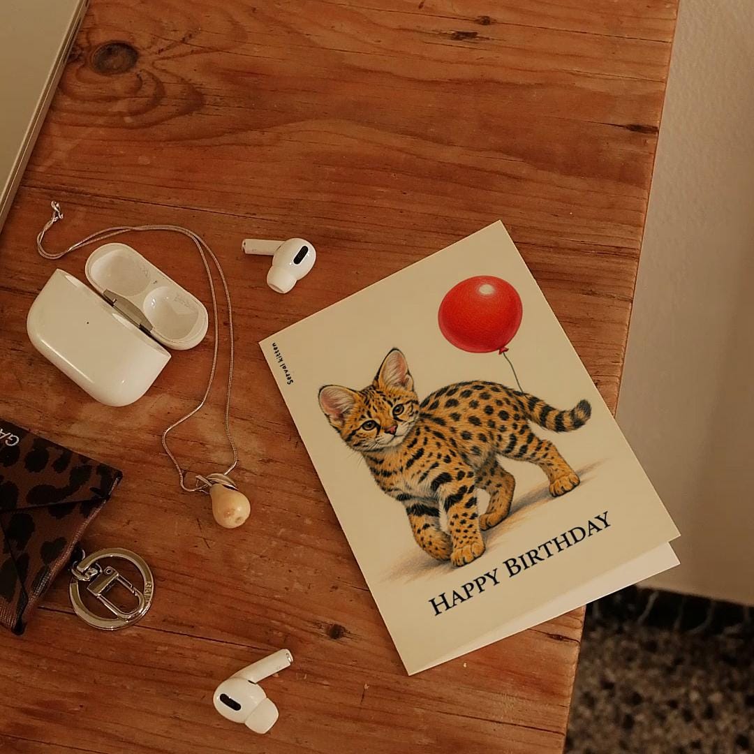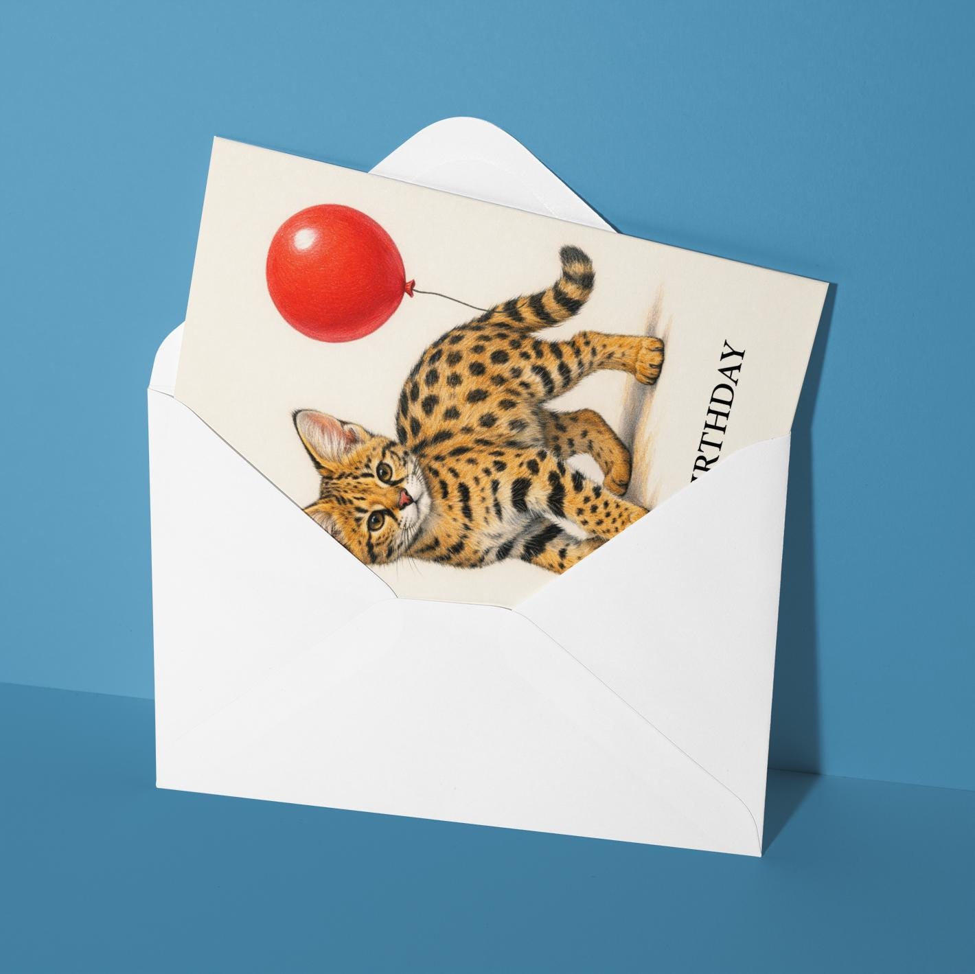 BLANK INTERIOR FOR A PERSONAL TOUCH: Our Wild Cats Party Series – Serval kitten: Spotted Joy Happy Birthday! card - and other whimsical designs feature a blank interior, giving you ample space to write a personal message from the heart. Perfect for any occasion, each card comes with a matching white envelope, making it easy to send your unique sentiments to loved ones.