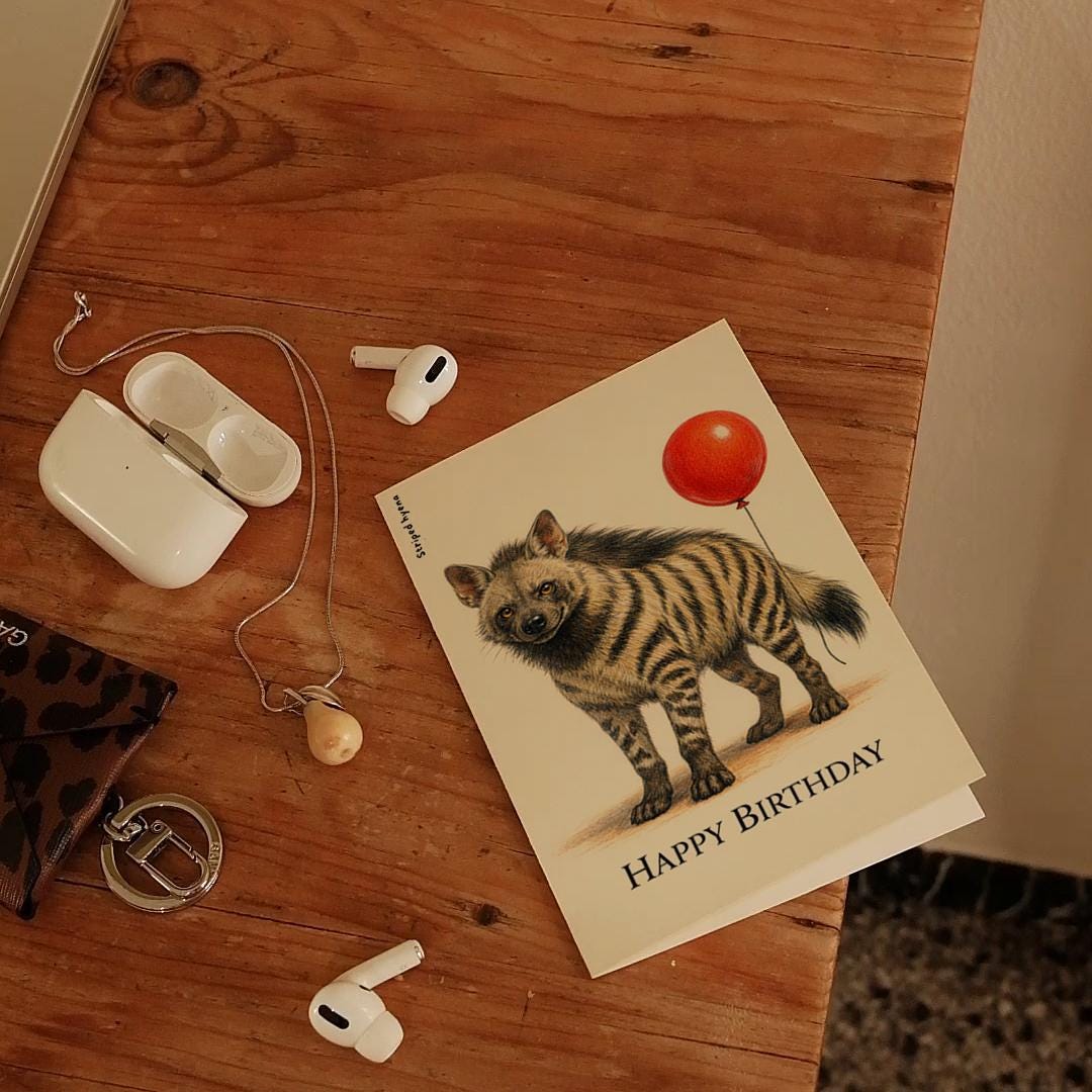 BLANK INTERIOR FOR A PERSONAL TOUCH: Our Animal Hugs Series – Striped Hyena: Wild Grin Happy Birthday! card - and other whimsical designs feature a blank interior, giving you ample space to write a personal message from the heart. Perfect for any occasion, each card comes with a matching white envelope, making it easy to send your unique sentiments to loved ones.