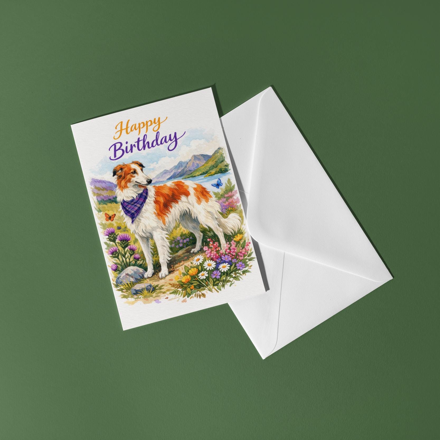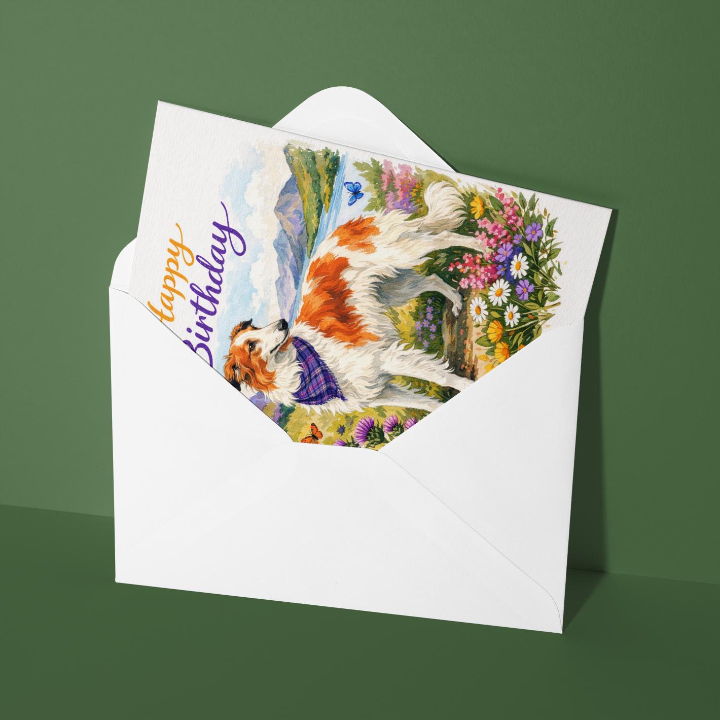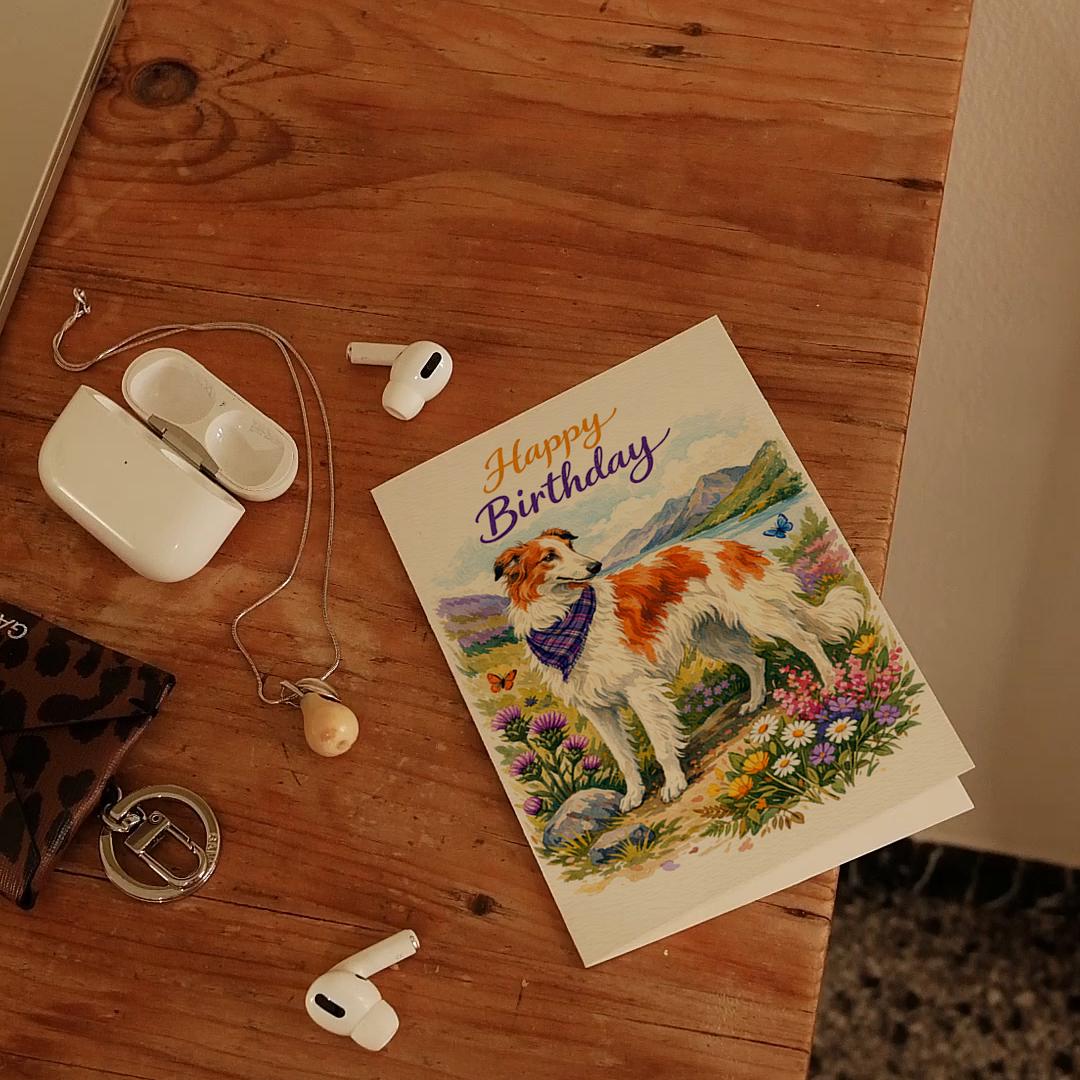 BLANK INTERIOR FOR A PERSONAL TOUCH: Our Dog Breeds Collection - Borzoi: Highland Grace - Happy Birthday! card and other whimsical designs feature a blank interior, giving you ample space to write a personal message from the heart. Perfect for any occasion, each card comes with a matching white envelope, making it easy to send your unique sentiments to loved ones.