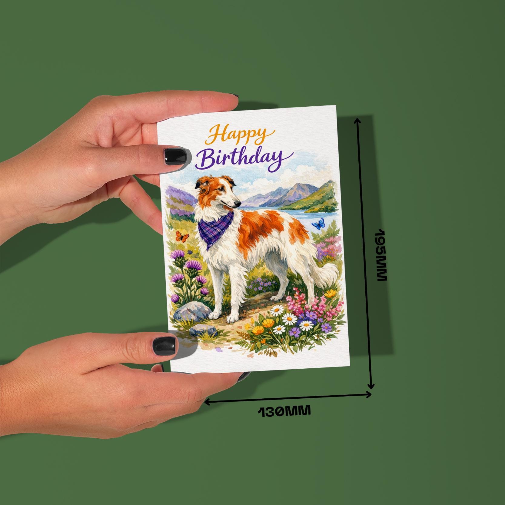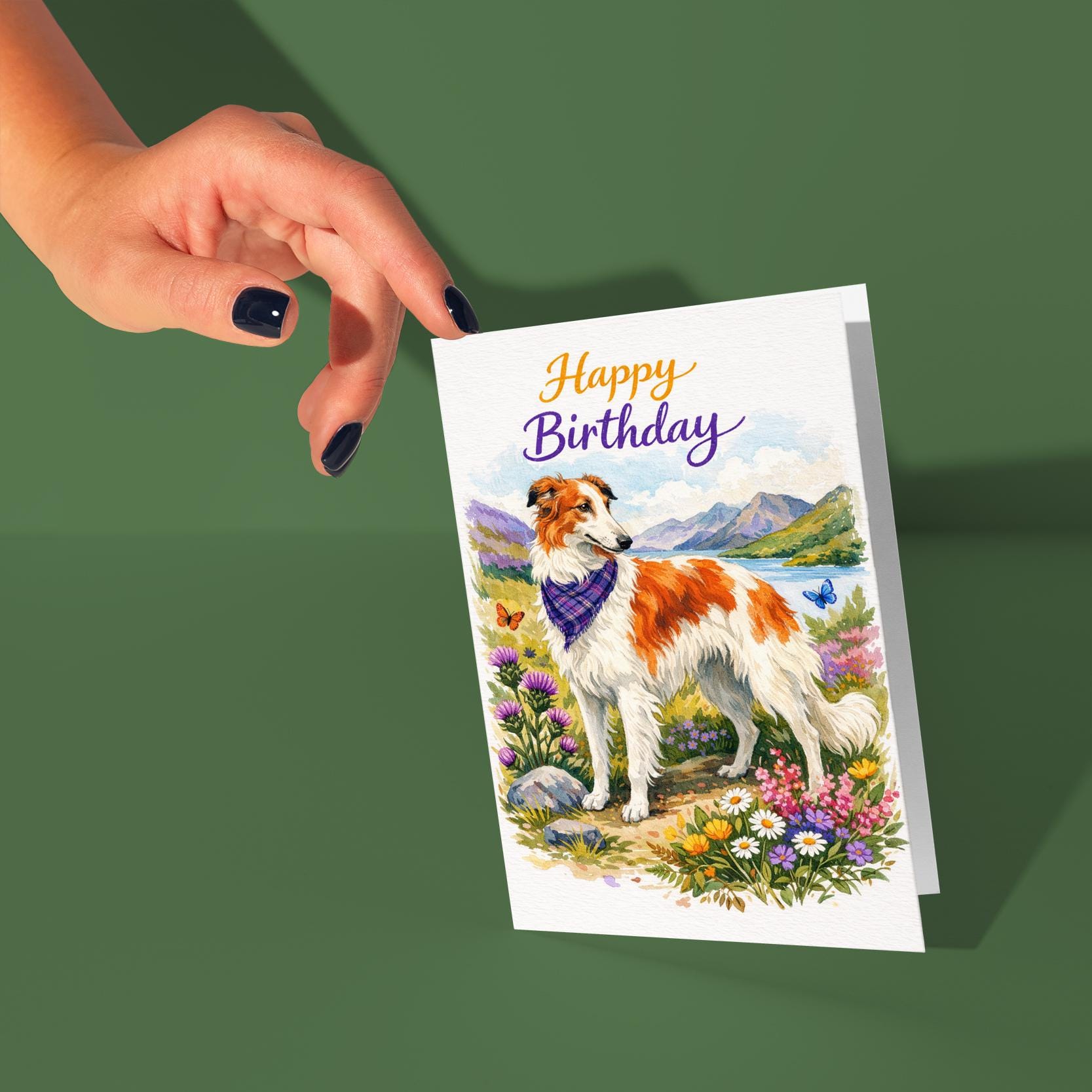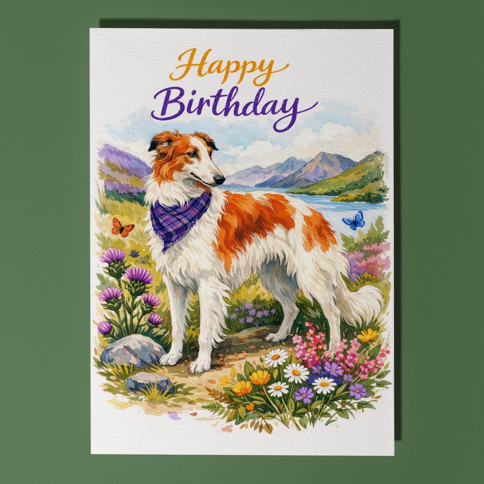 BLANK INTERIOR FOR A PERSONAL TOUCH: Our Dog Breeds Collection - Borzoi: Highland Grace - Happy Birthday! card and other whimsical designs feature a blank interior, giving you ample space to write a personal message from the heart. Perfect for any occasion, each card comes with a matching white envelope, making it easy to send your unique sentiments to loved ones.