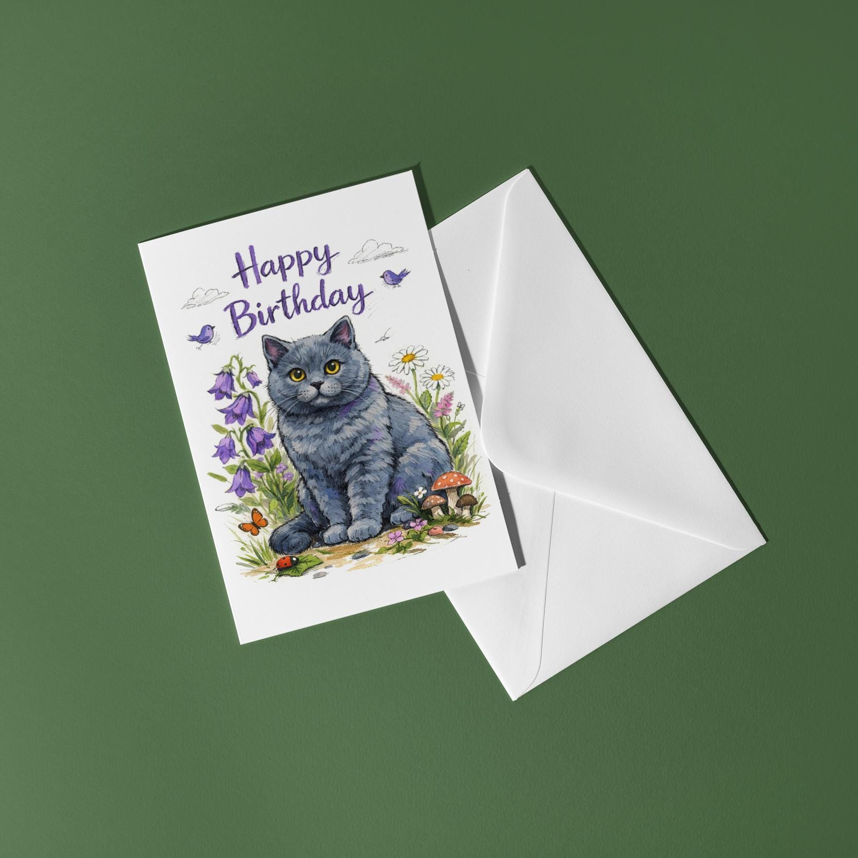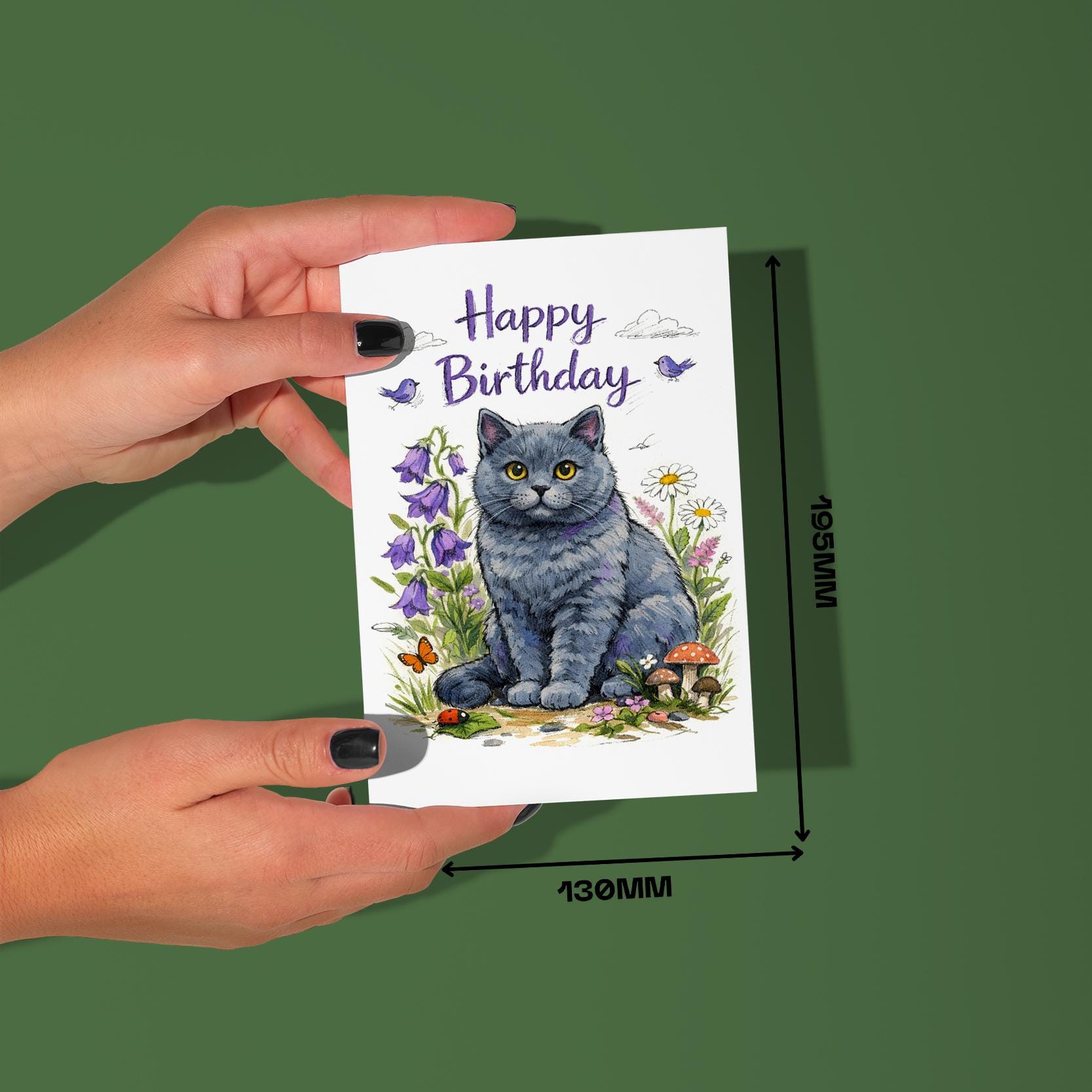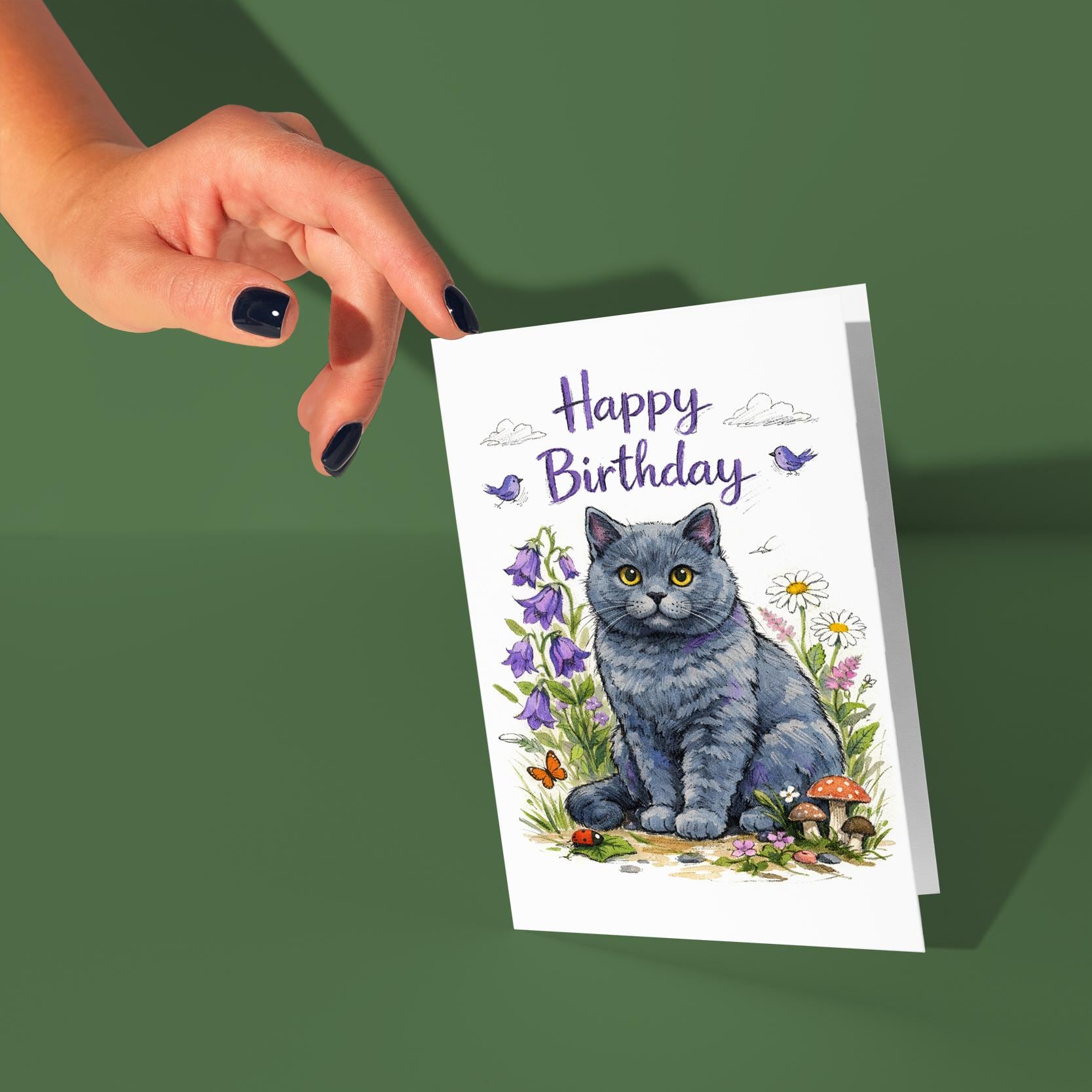 BLANK INTERIOR FOR A PERSONAL TOUCH: Our Cat Breeds Series – British Shorthair: Bluebells & Birthday Wishes Happy Birthday! card - and other whimsical designs feature a blank interior, giving you ample space to write a personal message from the heart. Perfect for any occasion, each card comes with a matching white envelope, making it easy to send your unique sentiments to loved ones.