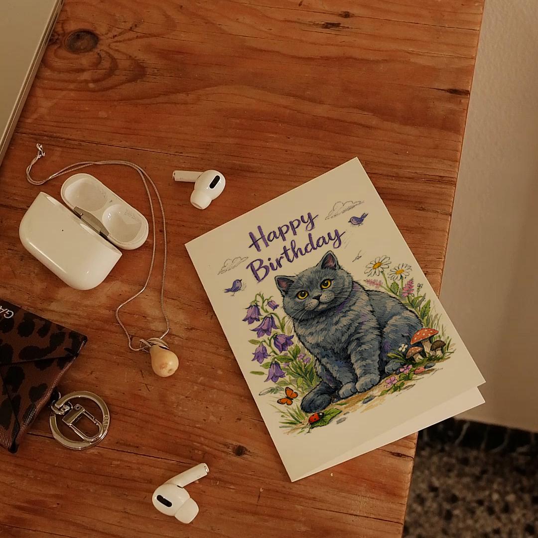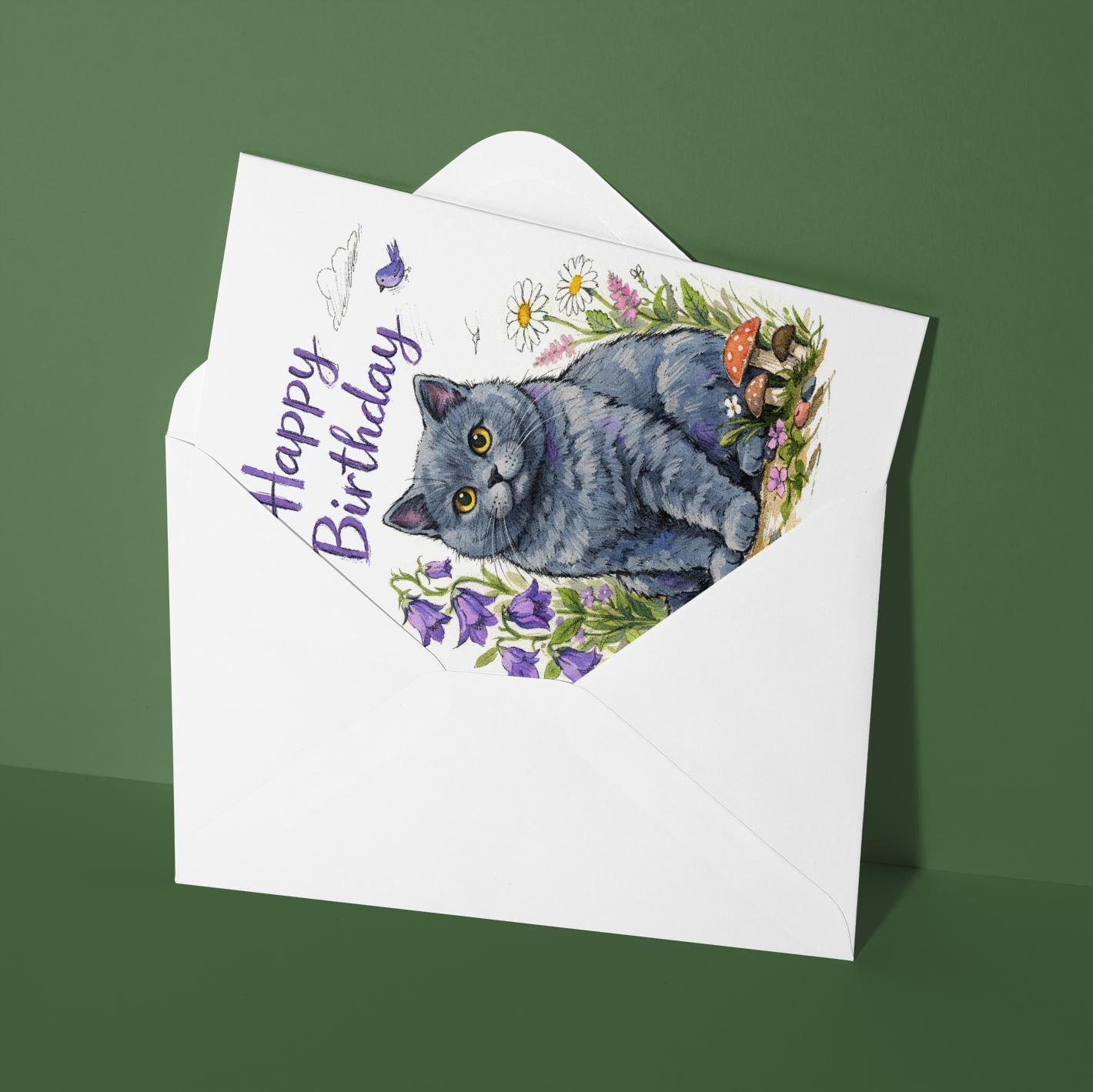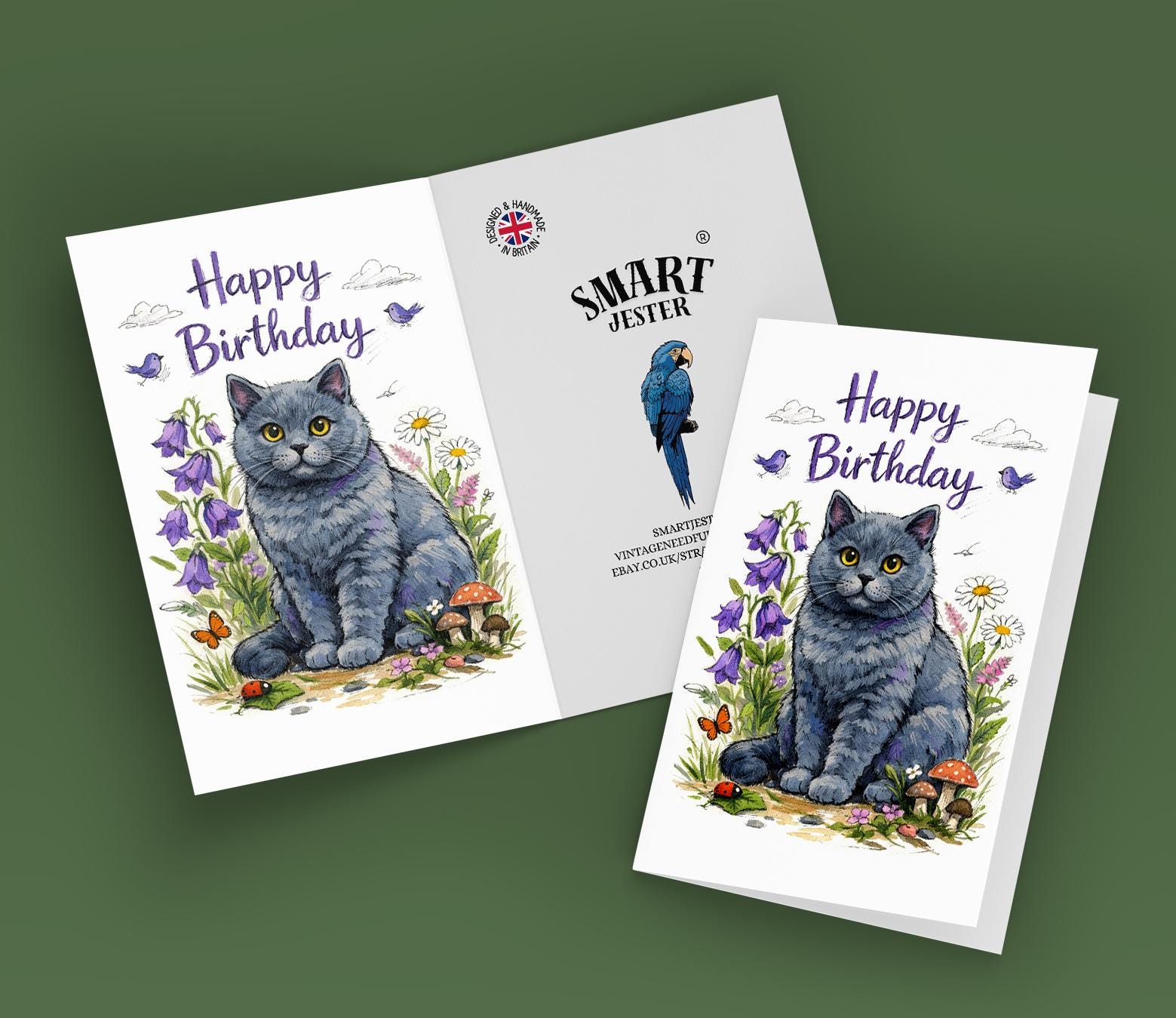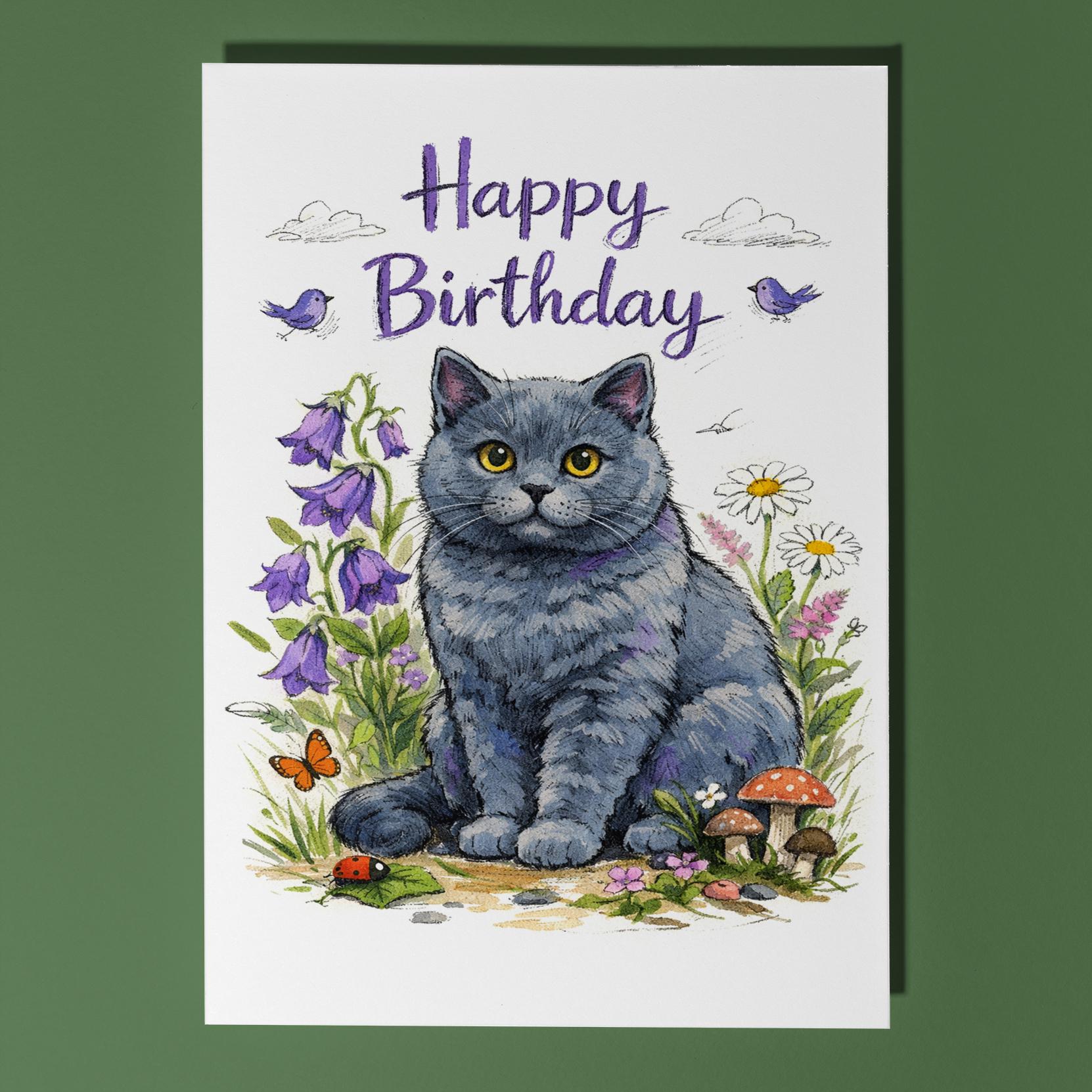 BLANK INTERIOR FOR A PERSONAL TOUCH: Our Cat Breeds Series – British Shorthair: Bluebells & Birthday Wishes Happy Birthday! card - and other whimsical designs feature a blank interior, giving you ample space to write a personal message from the heart. Perfect for any occasion, each card comes with a matching white envelope, making it easy to send your unique sentiments to loved ones.