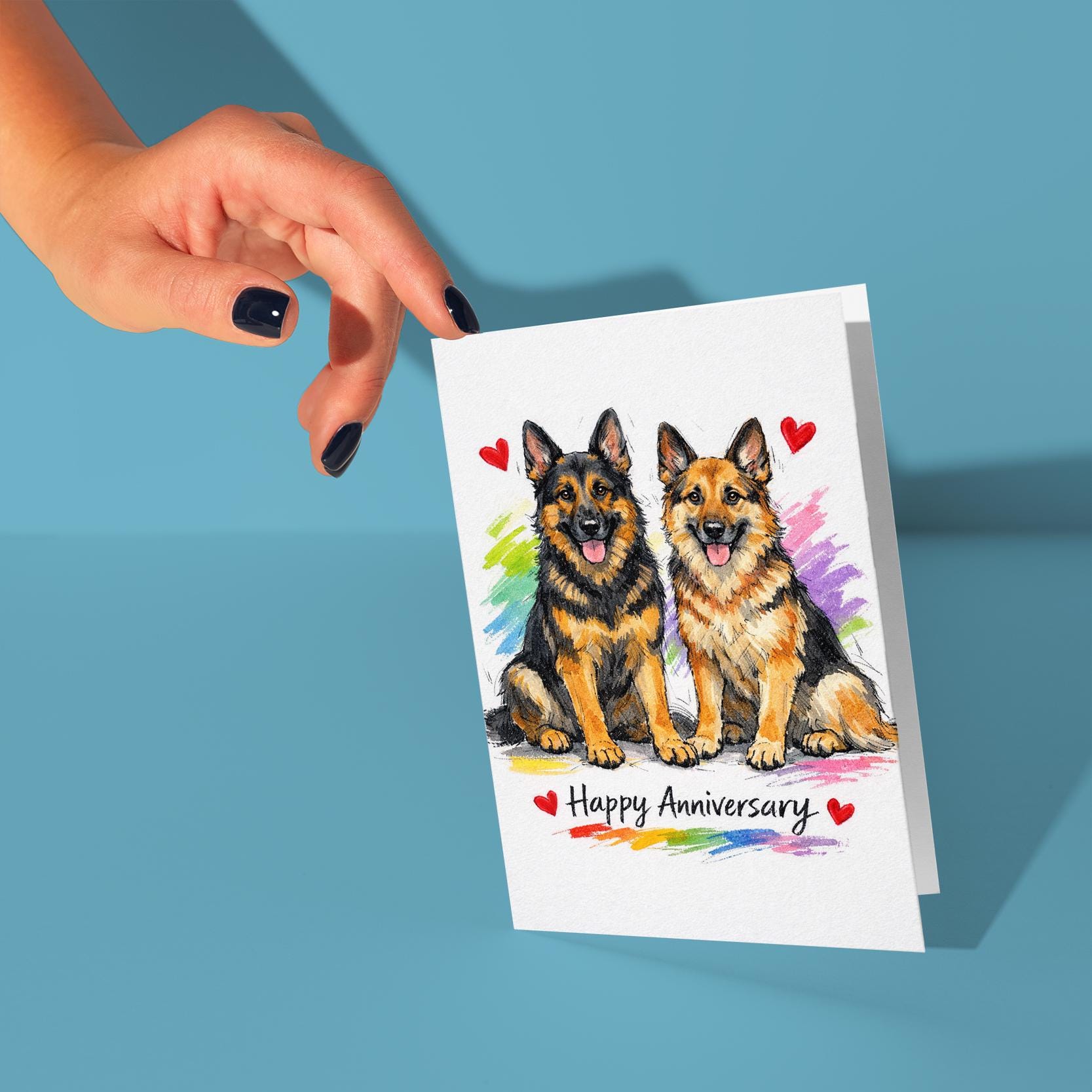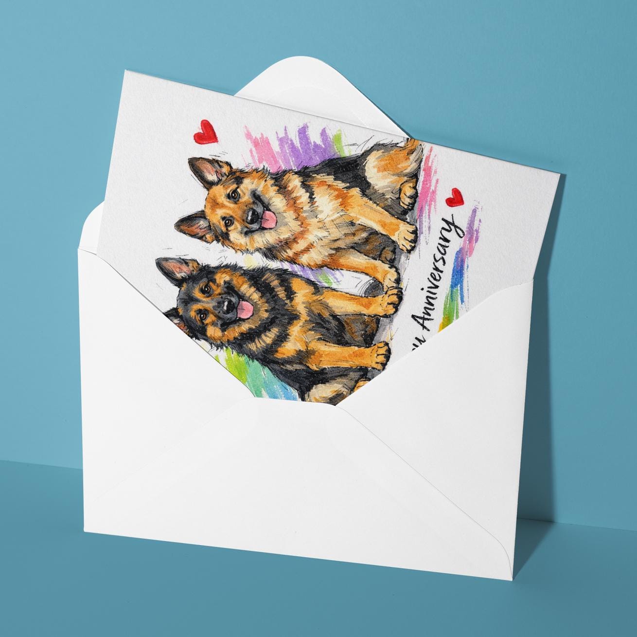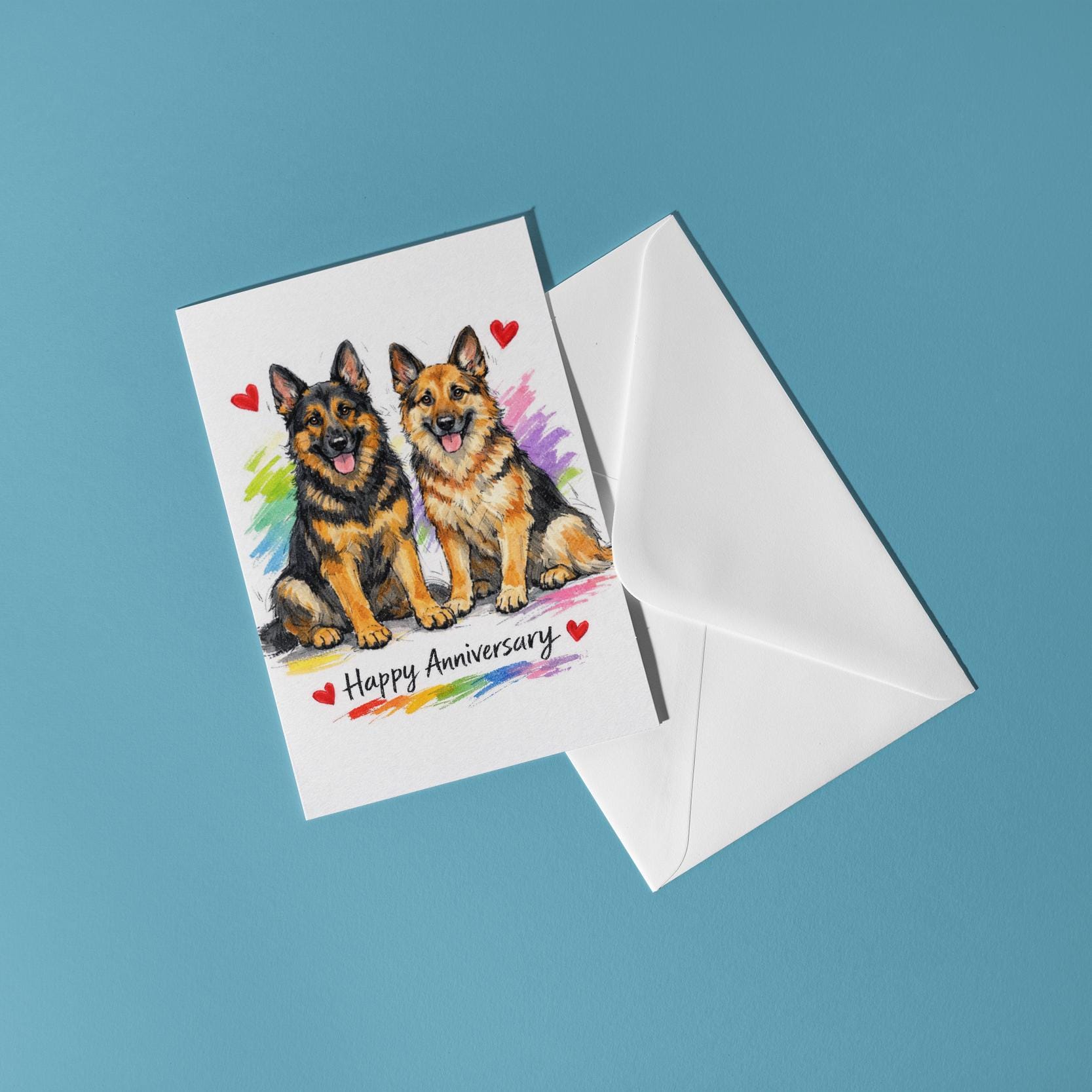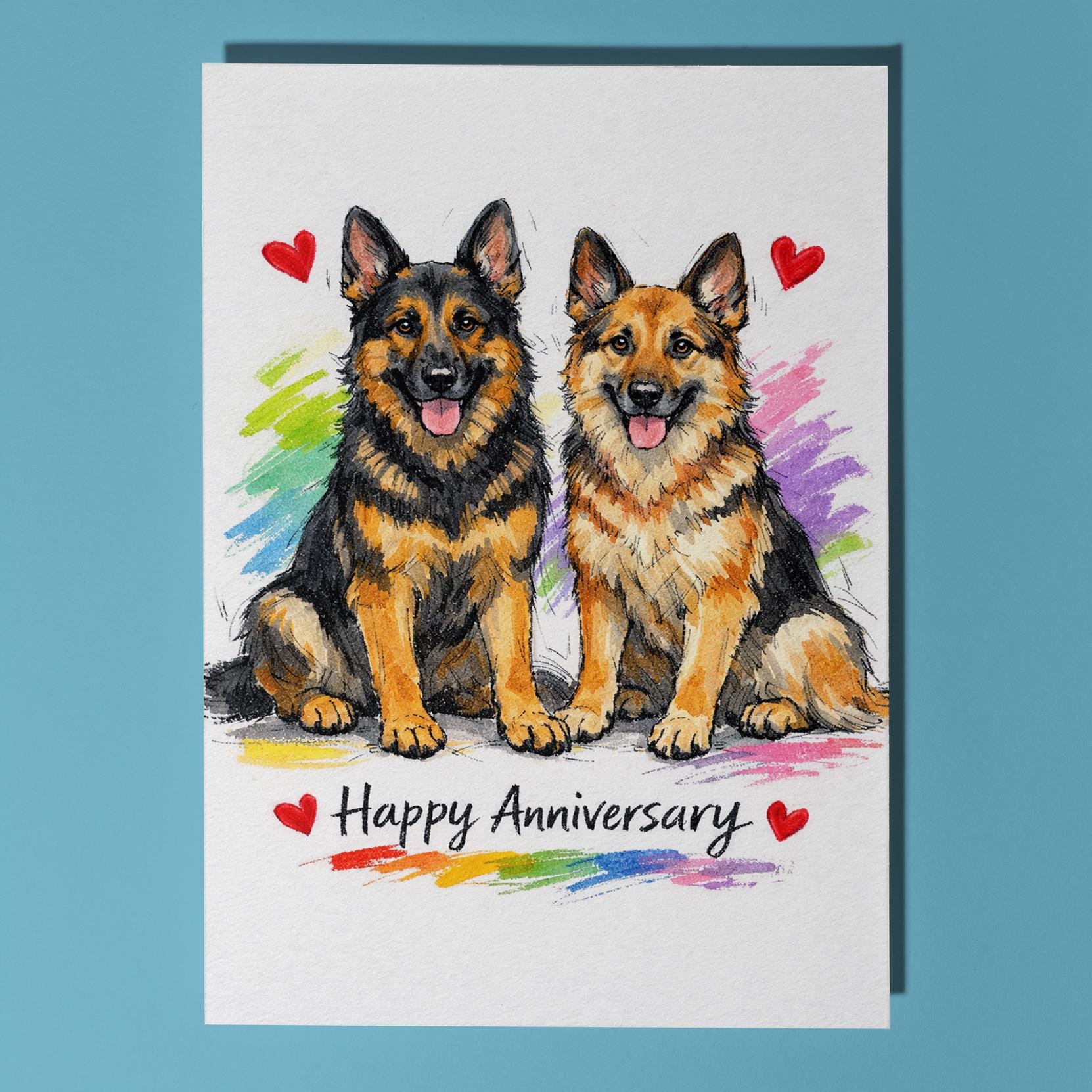 BLANK INTERIOR FOR A PERSONAL TOUCH: Our Dog Breeds Collection - German Shepherds: A Loyal Love Story - Happy Anniversary Card and other whimsical designs feature a blank interior, giving you ample space to write a personal message from the heart. Perfect for any occasion, each card comes with a matching white envelope, making it easy to send your unique sentiments to loved ones.