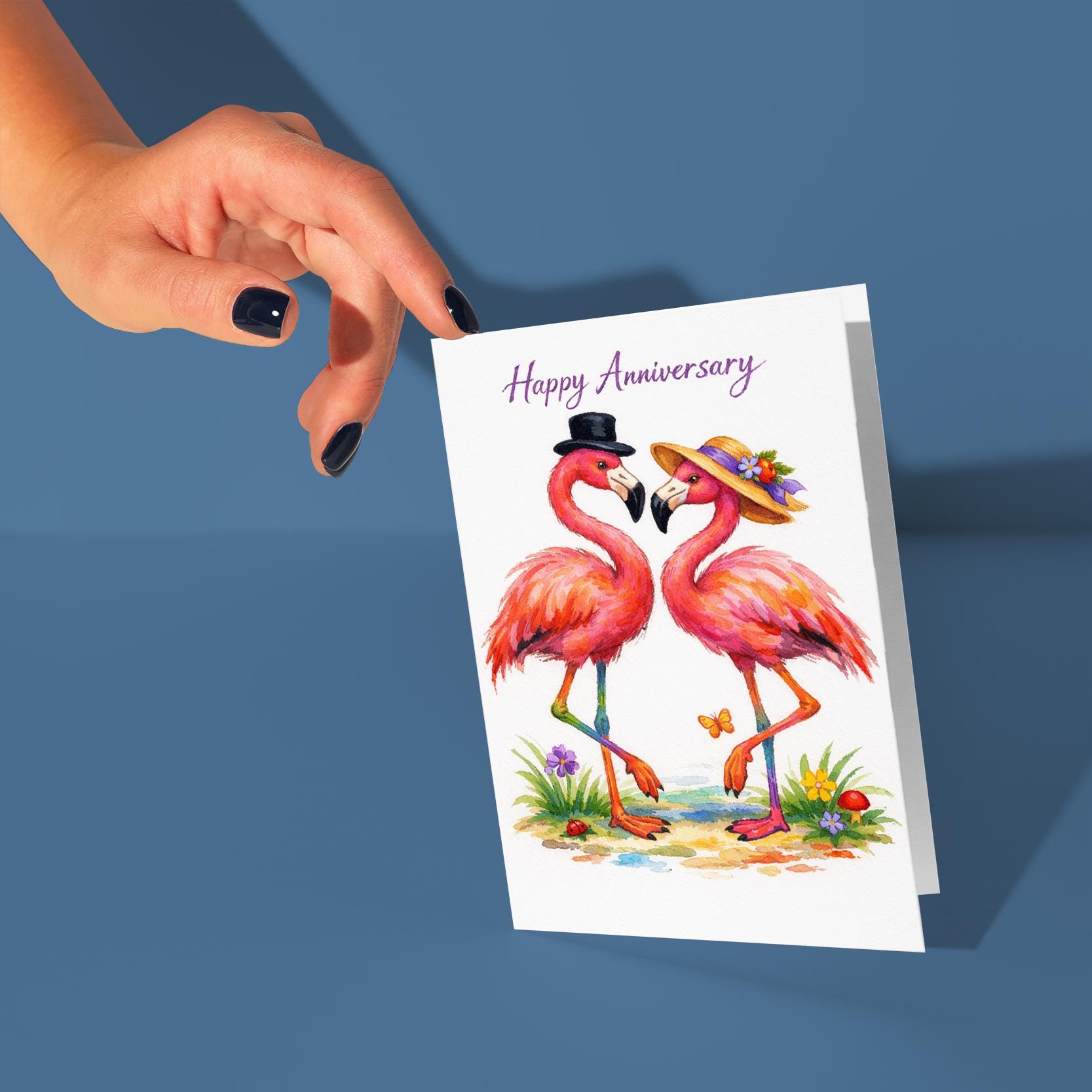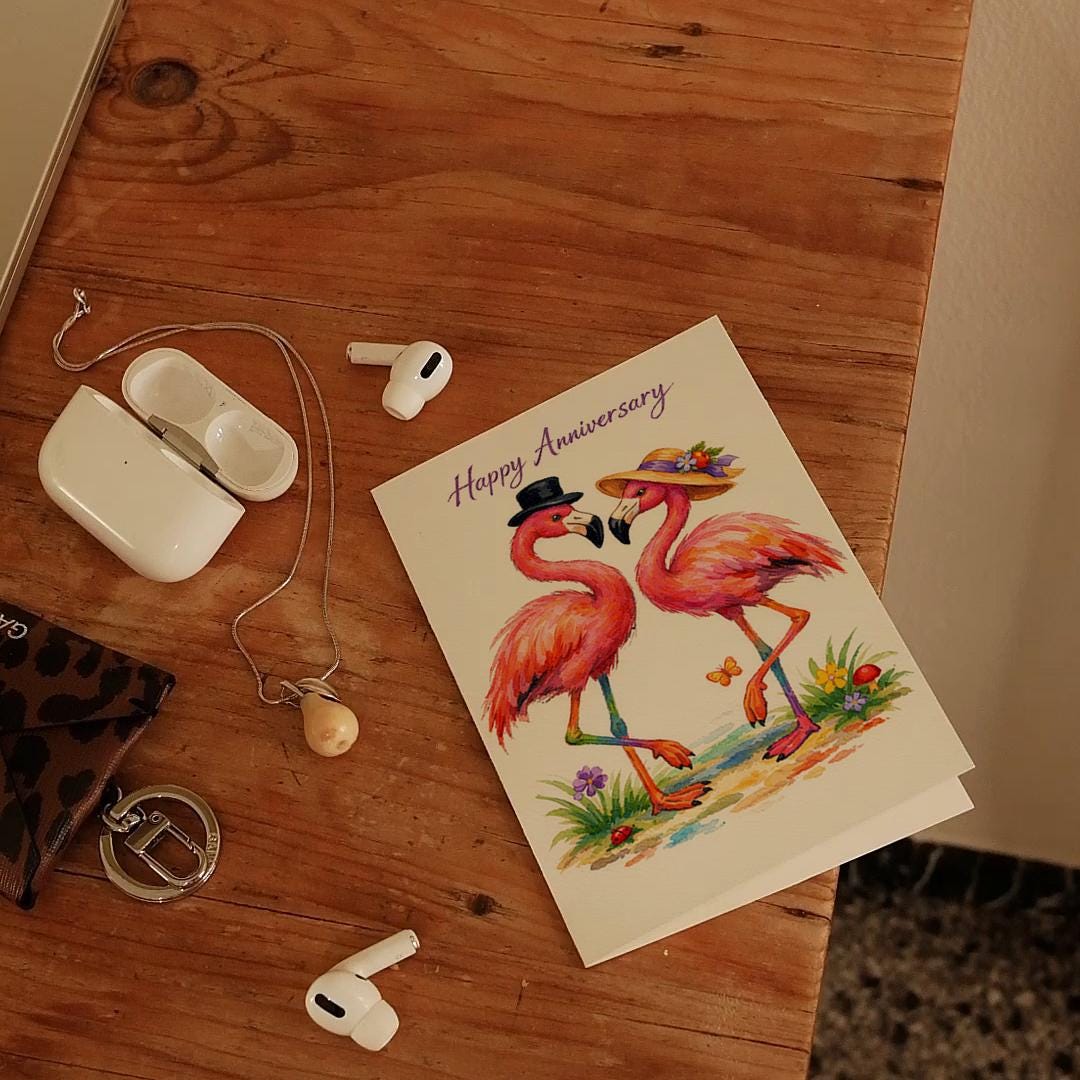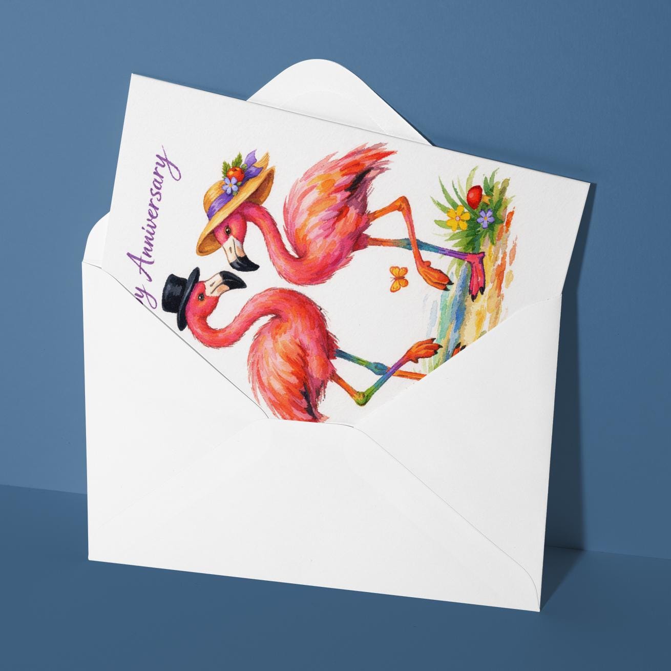 BLANK INTERIOR FOR A PERSONAL TOUCH: Our Animal Hugs Series - Flamingo Love at First Flight - Happy Anniversary card and other whimsical designs feature a blank interior, giving you ample space to write a personal message from the heart. Perfect for any occasion, each card comes with a matching white envelope, making it easy to send your unique sentiments to loved ones.