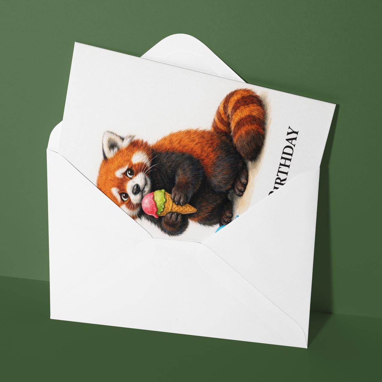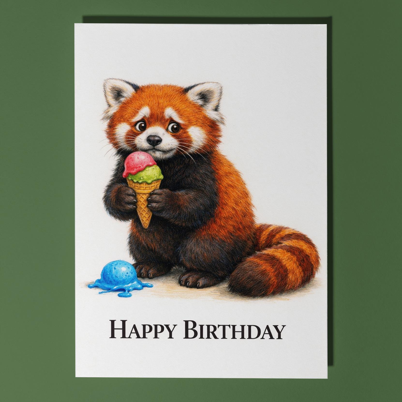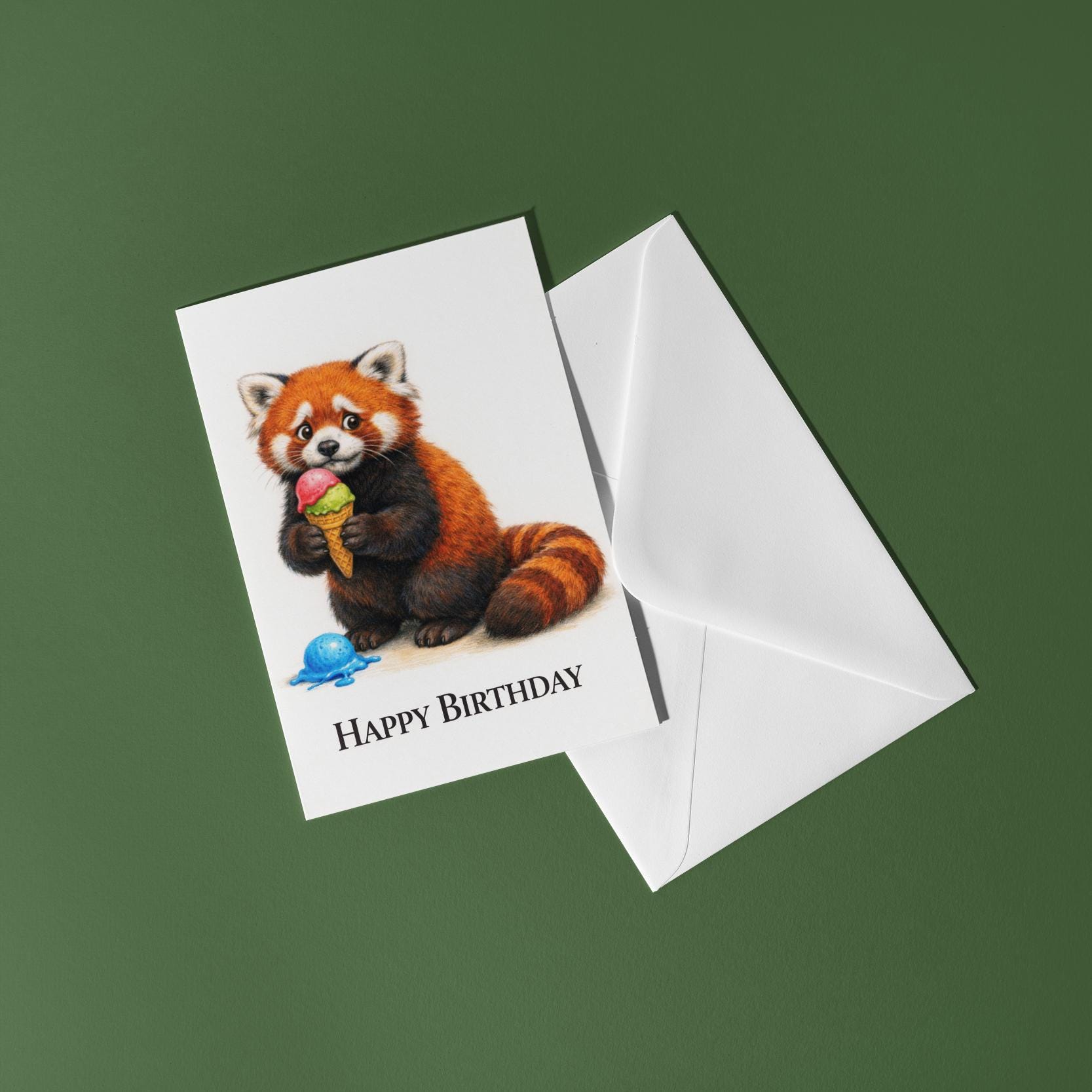 BLANK INTERIOR FOR A PERSONAL TOUCH: Our Animal Hugs Series – Red Panda: Oopsie Ice Cream Happy Birthday! card - and other whimsical designs feature a blank interior, giving you ample space to write a personal message from the heart. Perfect for any occasion, each card comes with a matching white envelope, making it easy to send your unique sentiments to loved ones.