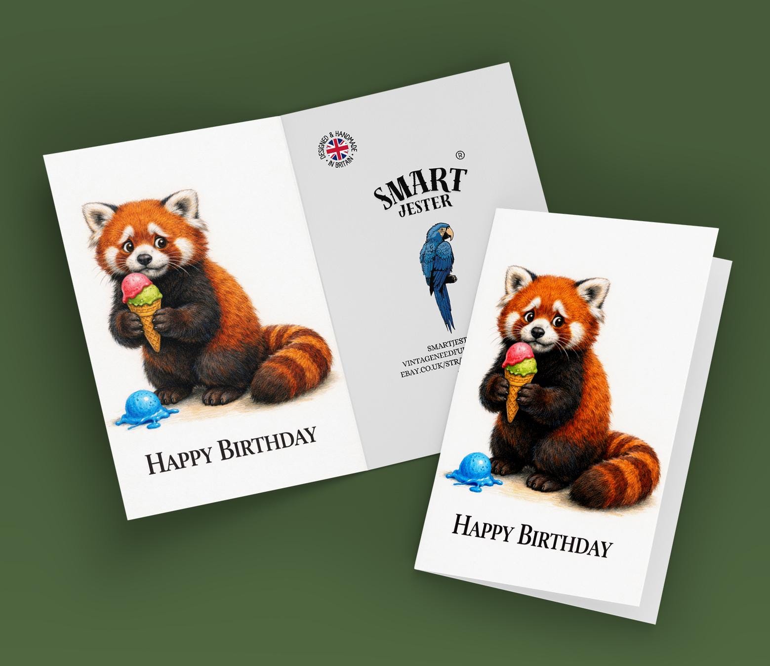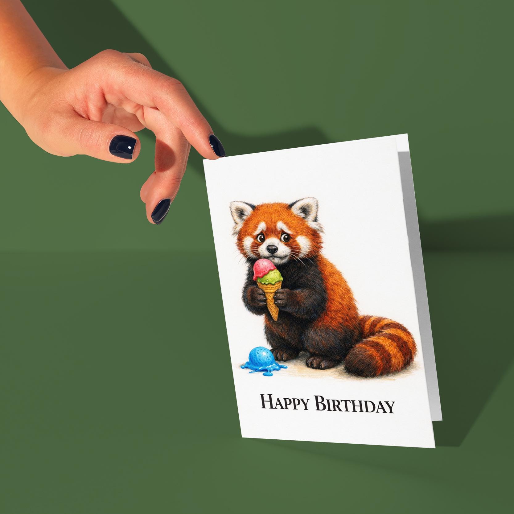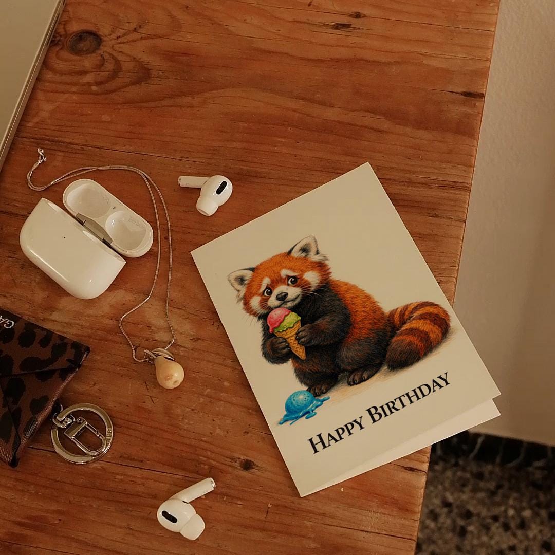 BLANK INTERIOR FOR A PERSONAL TOUCH: Our Animal Hugs Series – Red Panda: Oopsie Ice Cream Happy Birthday! card - and other whimsical designs feature a blank interior, giving you ample space to write a personal message from the heart. Perfect for any occasion, each card comes with a matching white envelope, making it easy to send your unique sentiments to loved ones.