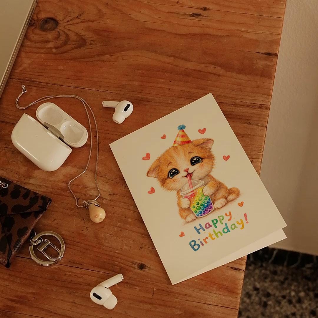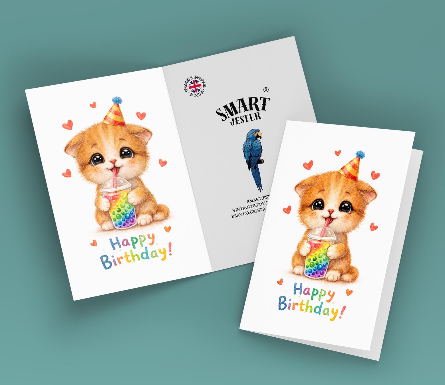 BLANK INTERIOR FOR A PERSONAL TOUCH: Our Cat Breeds Series - Kitten Sweet Boba Sip Bubble Tea - Happy Birthday! card and other whimsical designs feature a blank interior, giving you ample space to write a personal message from the heart. Perfect for any occasion, each card comes with a matching white envelope, making it easy to send your unique sentiments to loved ones.