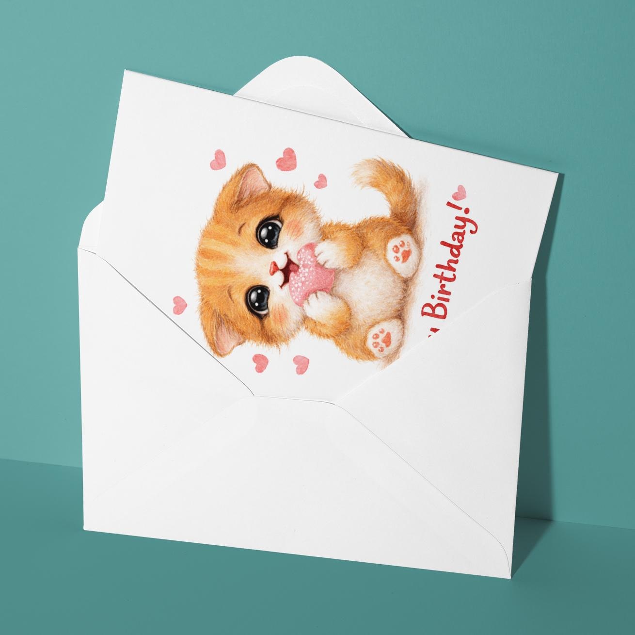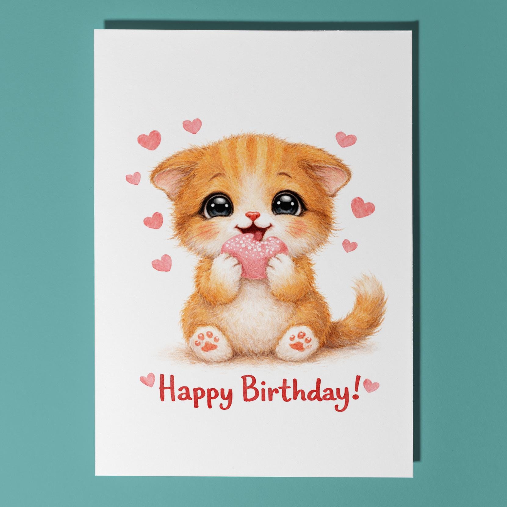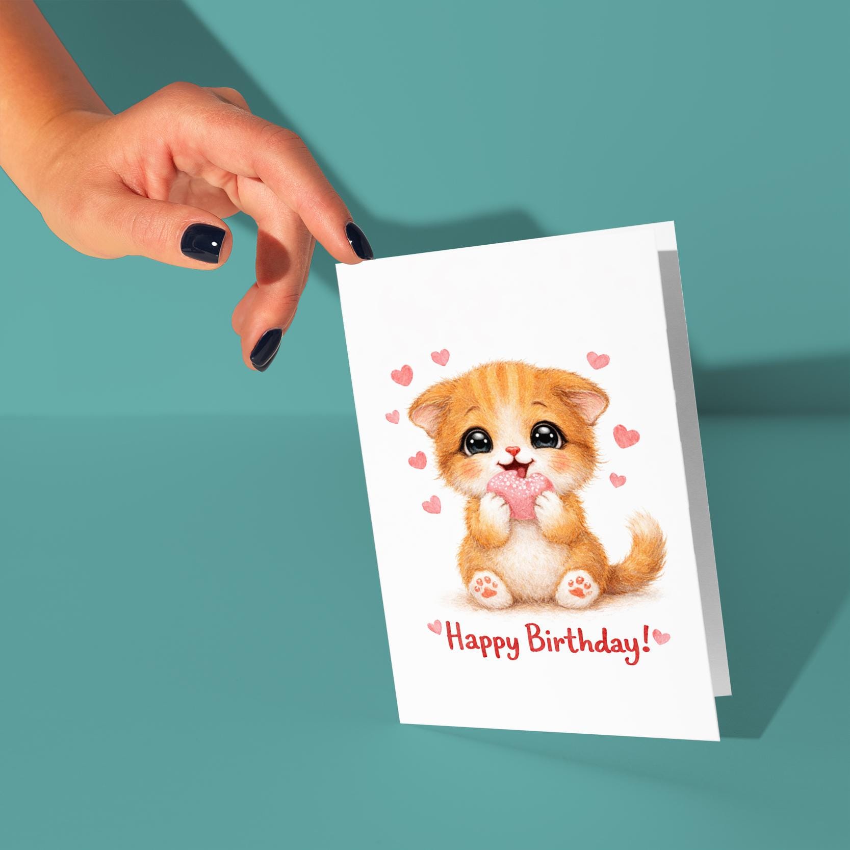 BLANK INTERIOR FOR A PERSONAL TOUCH: Our Kawaii Art Series - Kitten: Cute Pink Mochi Little Bites Cute Cat - Happy Birthday! card and other whimsical designs feature a blank interior, giving you ample space to write a personal message from the heart. Perfect for any occasion, each card comes with a matching white envelope, making it easy to send your unique sentiments to loved ones.