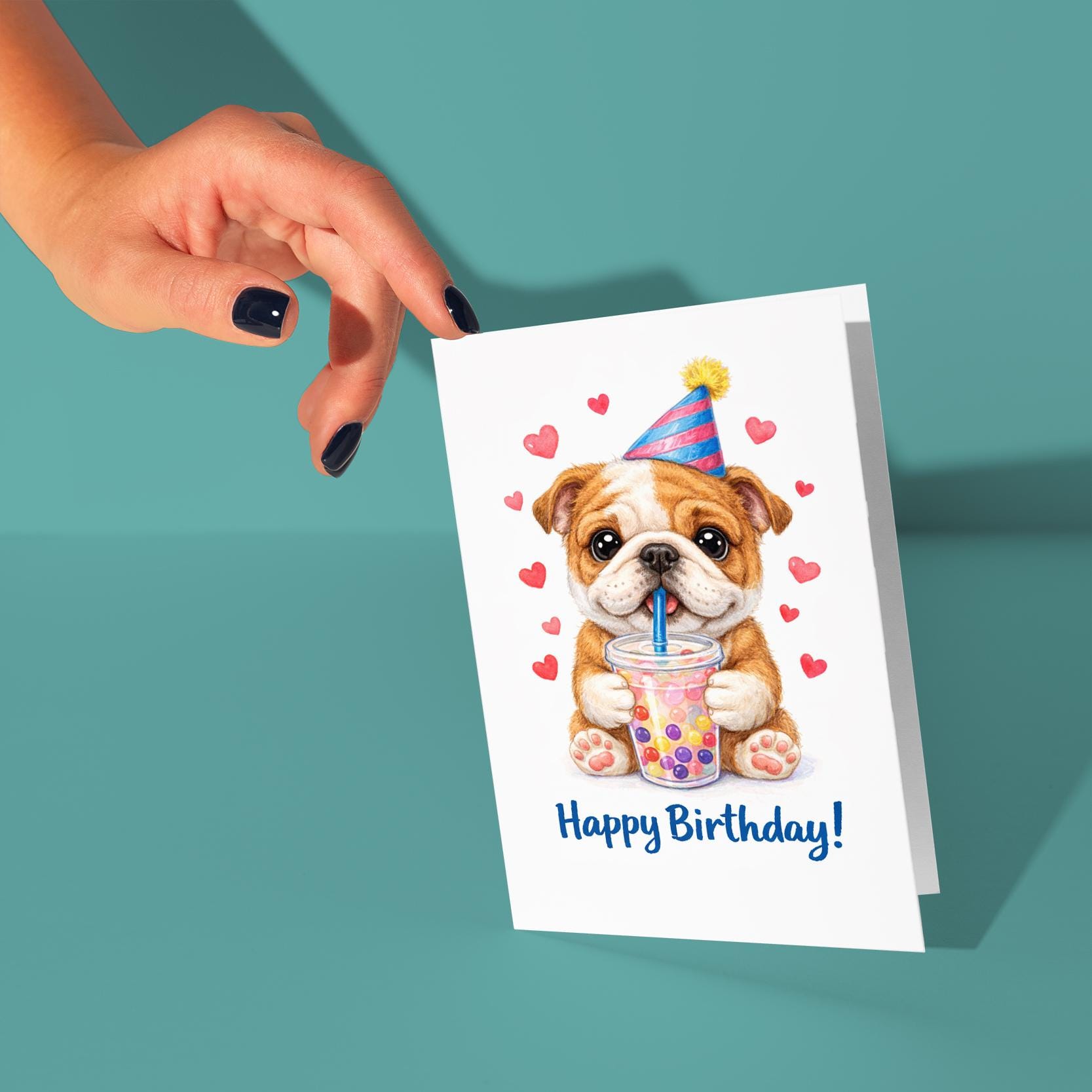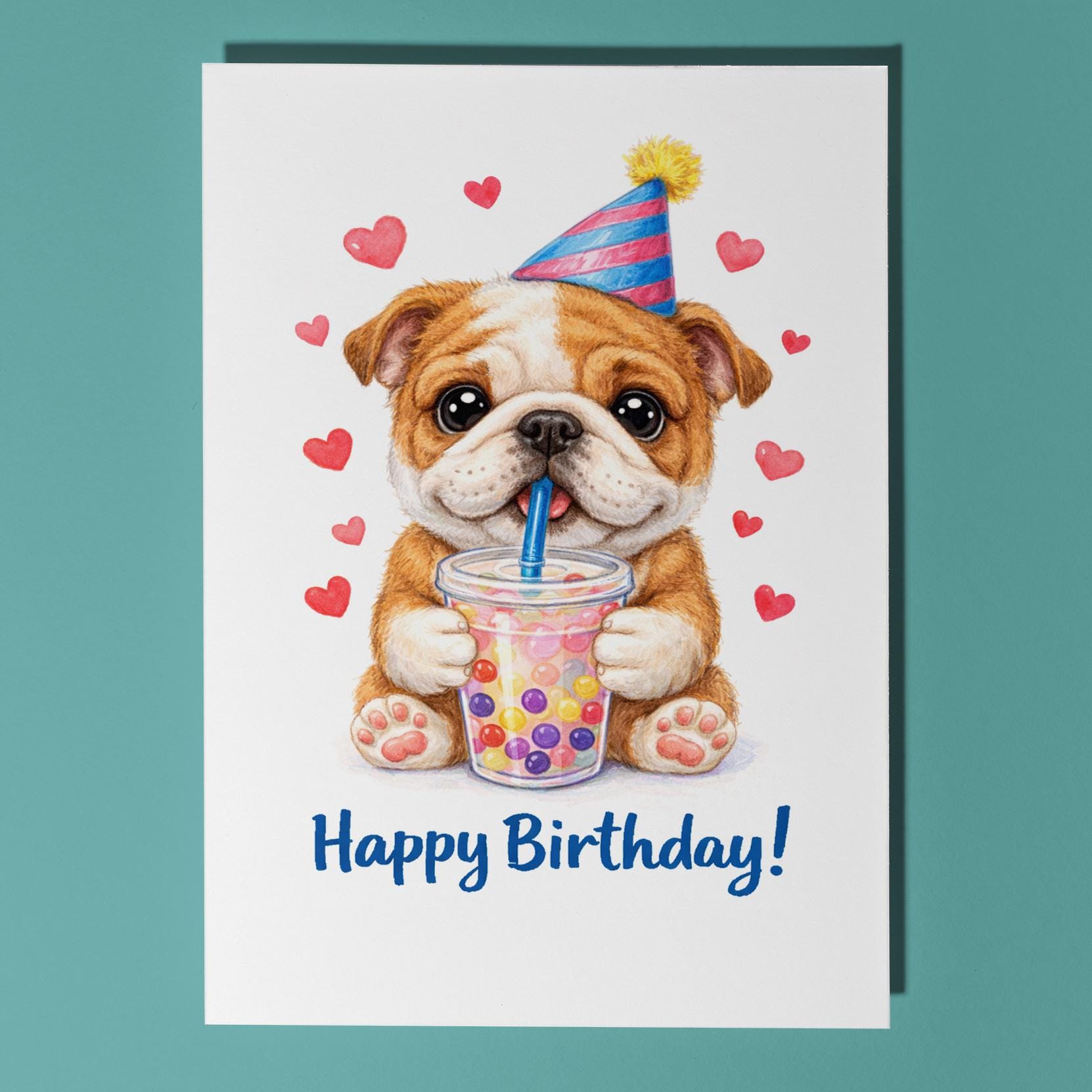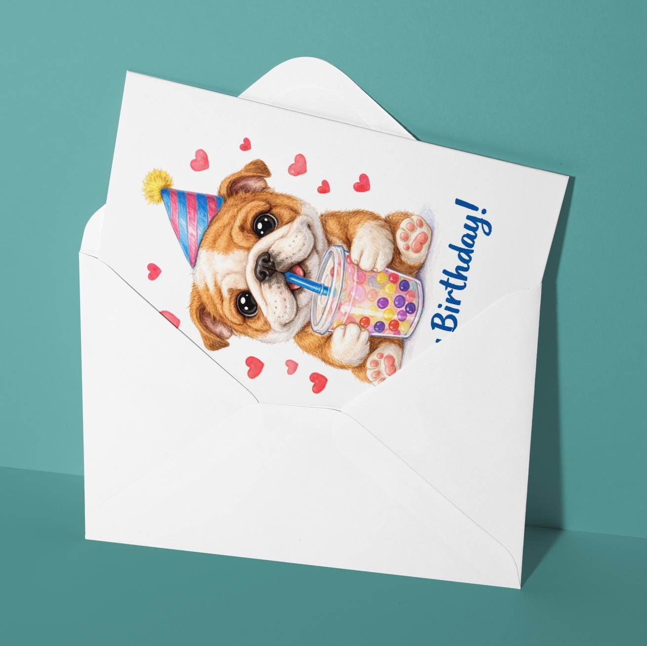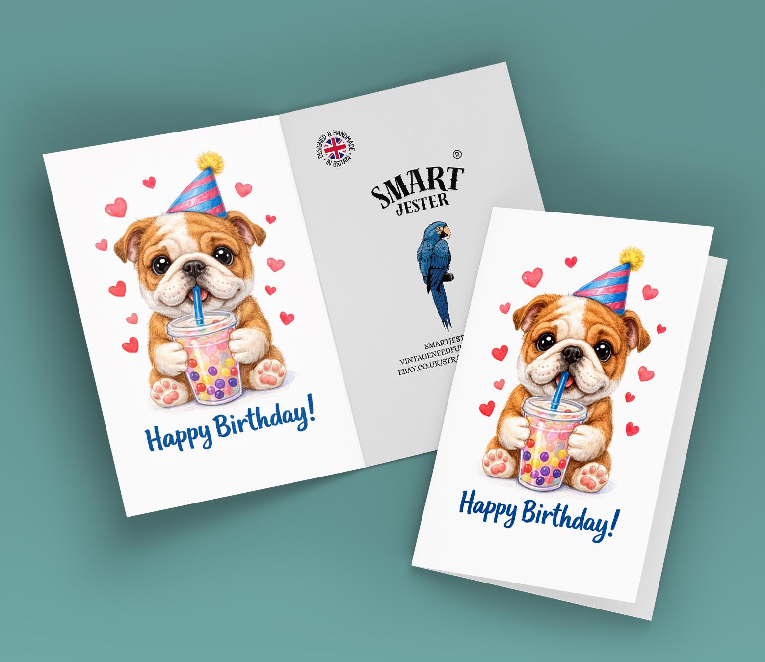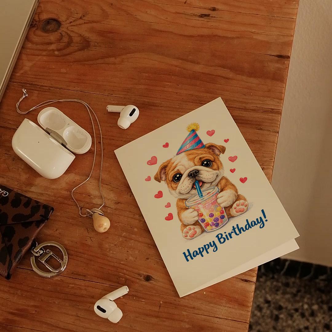 BLANK INTERIOR FOR A PERSONAL TOUCH: Our Kawaii Art Series - Bulldog puppy: Sweet Boba Sip Bubble Tea - Happy Birthday! card and other whimsical designs feature a blank interior, giving you ample space to write a personal message from the heart. Perfect for any occasion, each card comes with a matching white envelope, making it easy to send your unique sentiments to loved ones.