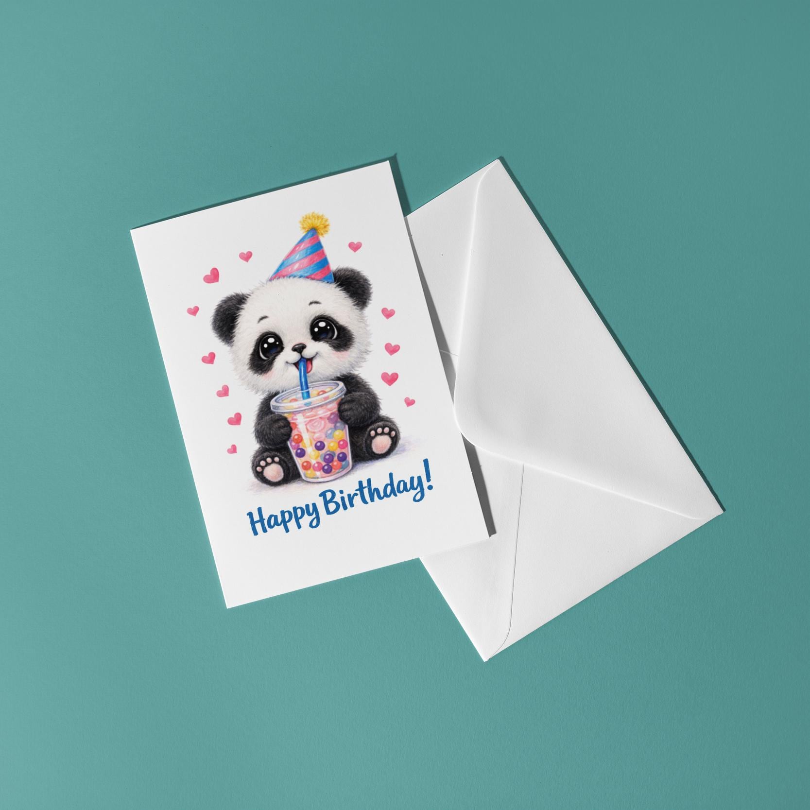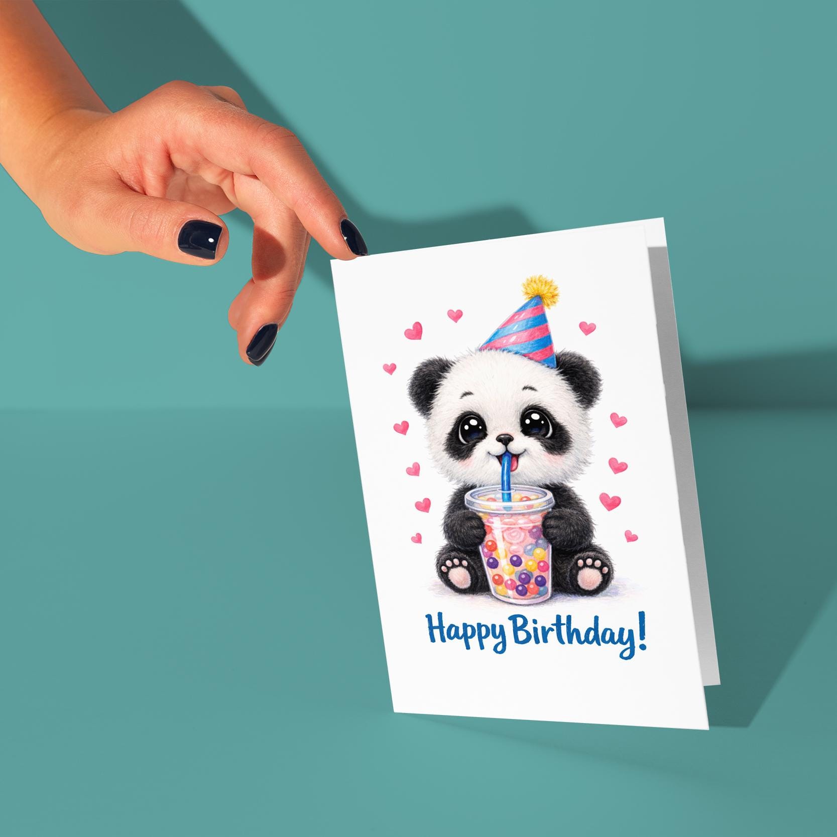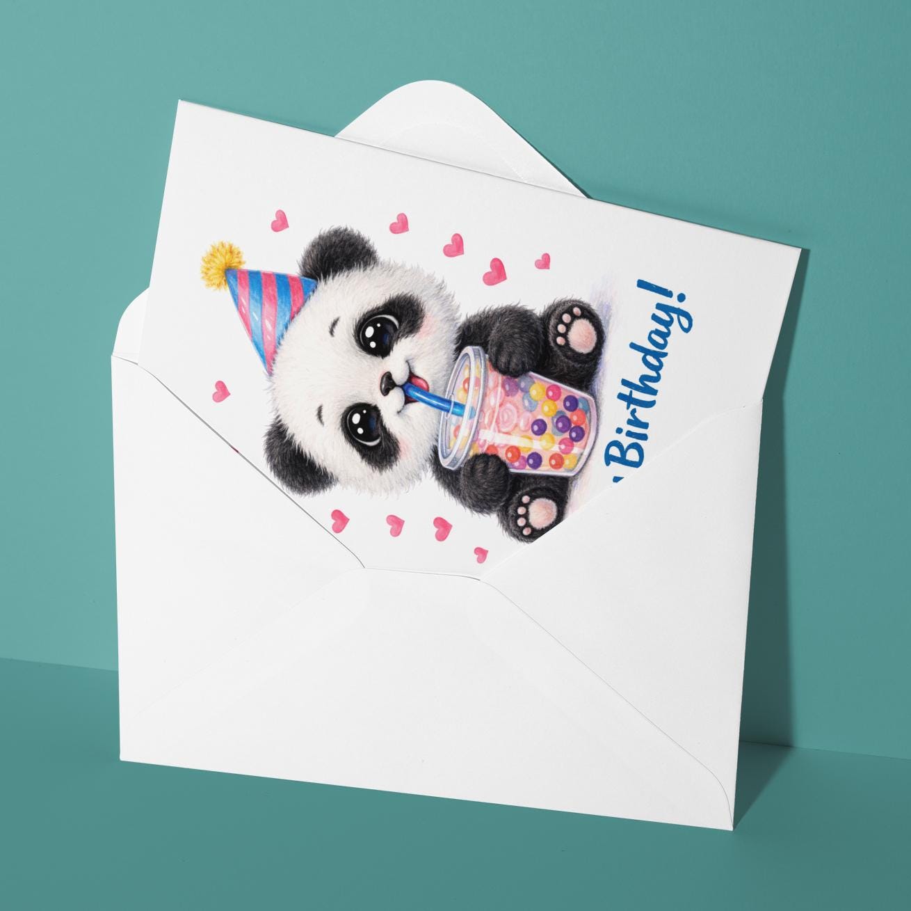 BLANK INTERIOR FOR A PERSONAL TOUCH: Our Kawaii Art Series - Panda cub: Sweet Boba Sip Bubble Tea - Happy Birthday! card and other whimsical designs feature a blank interior, giving you ample space to write a personal message from the heart. Perfect for any occasion, each card comes with a matching white envelope, making it easy to send your unique sentiments to loved ones.