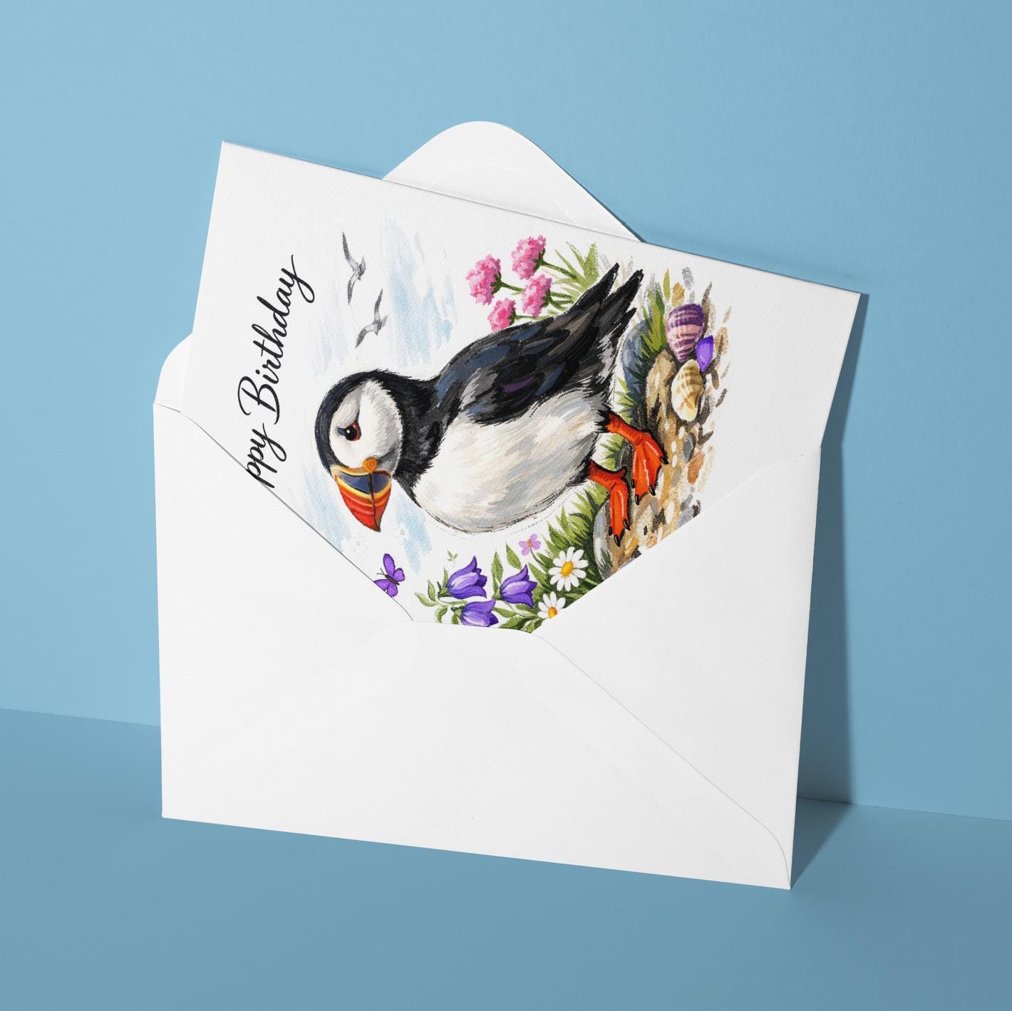 BLANK INTERIOR FOR A PERSONAL TOUCH: Our Puffins Collection - Atlantic Puffin: Coastal View - Happy Birthday! card and other whimsical designs feature a blank interior, giving you ample space to write a personal message from the heart. Perfect for any occasion, each card comes with a matching white envelope, making it easy to send your unique sentiments to loved ones.